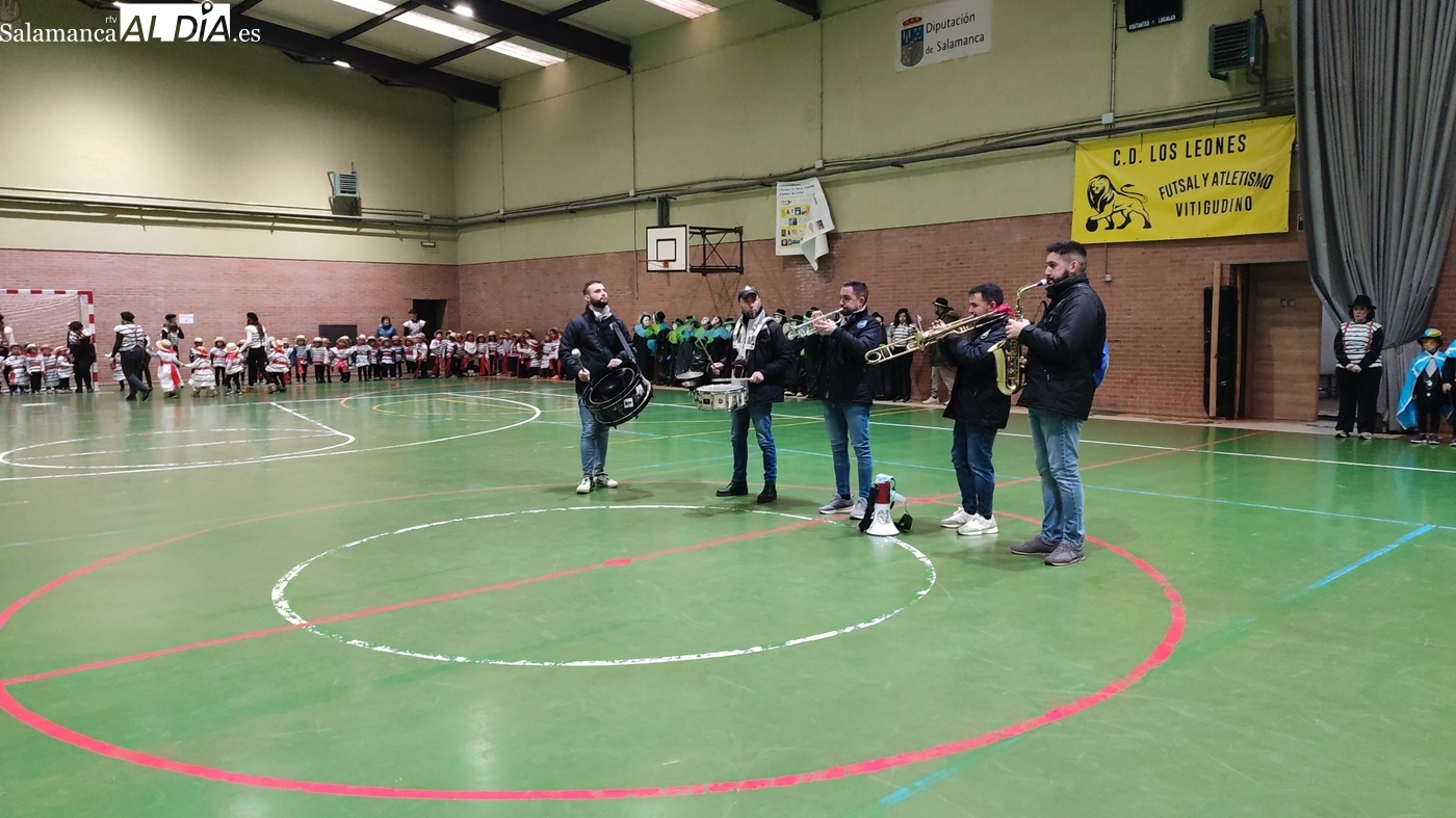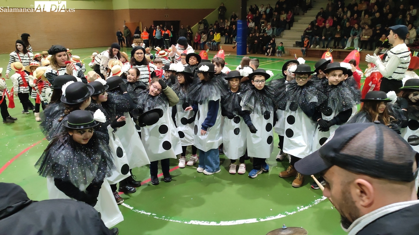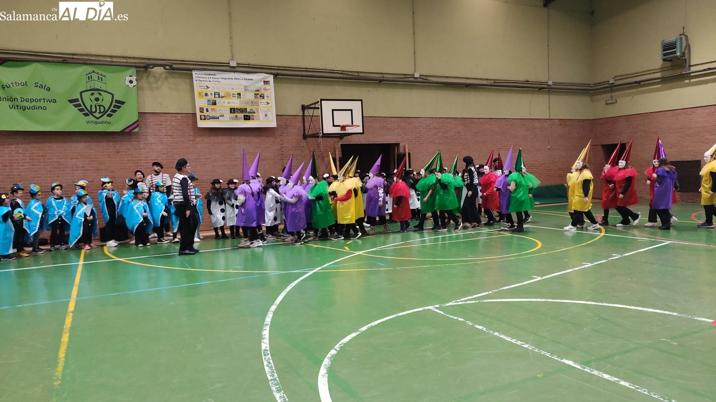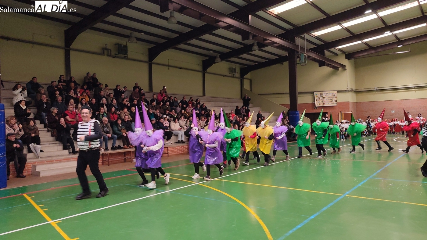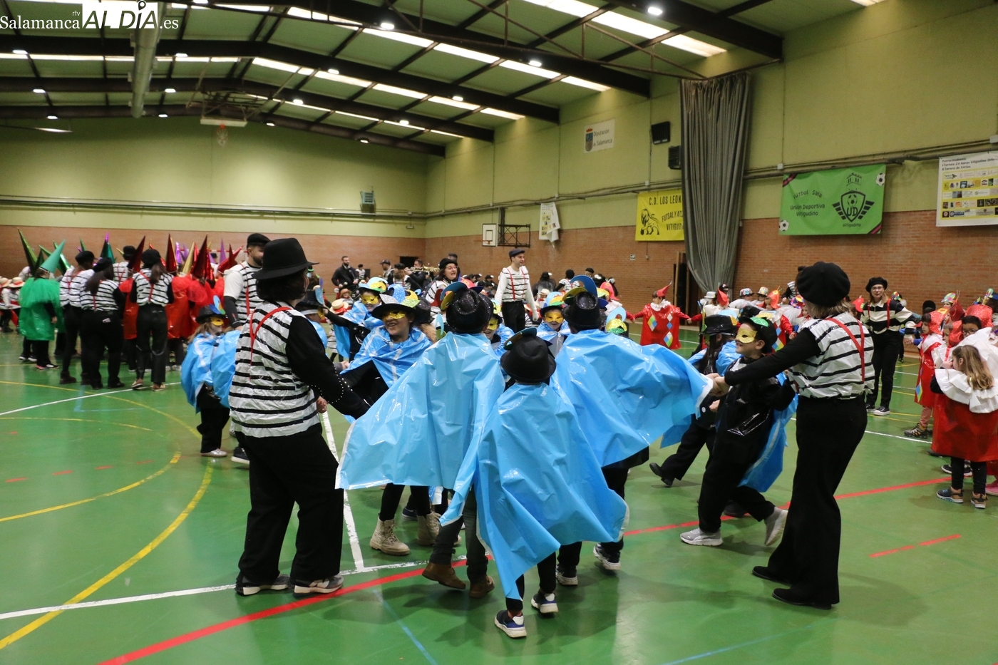 La inestabilidad meteorológica y la presencia de lluvia no han logrado empañar la celebración del Carnaval en Vitigudino. Aunque el agua ha impedido que el colorido desfile recorriera las calles de la localidad como es costumbre, la comunidad educativa del CEIP Manuel Moreno Blanco ha trasladado la fiesta al interior del pabellón polideportivo municipal. Allí, resguardados de las inclemencias, los escolares han podido lucir sus disfraces ante la atenta mirada de padres, madres, abuelos y abuelas que no han querido perderse el evento.