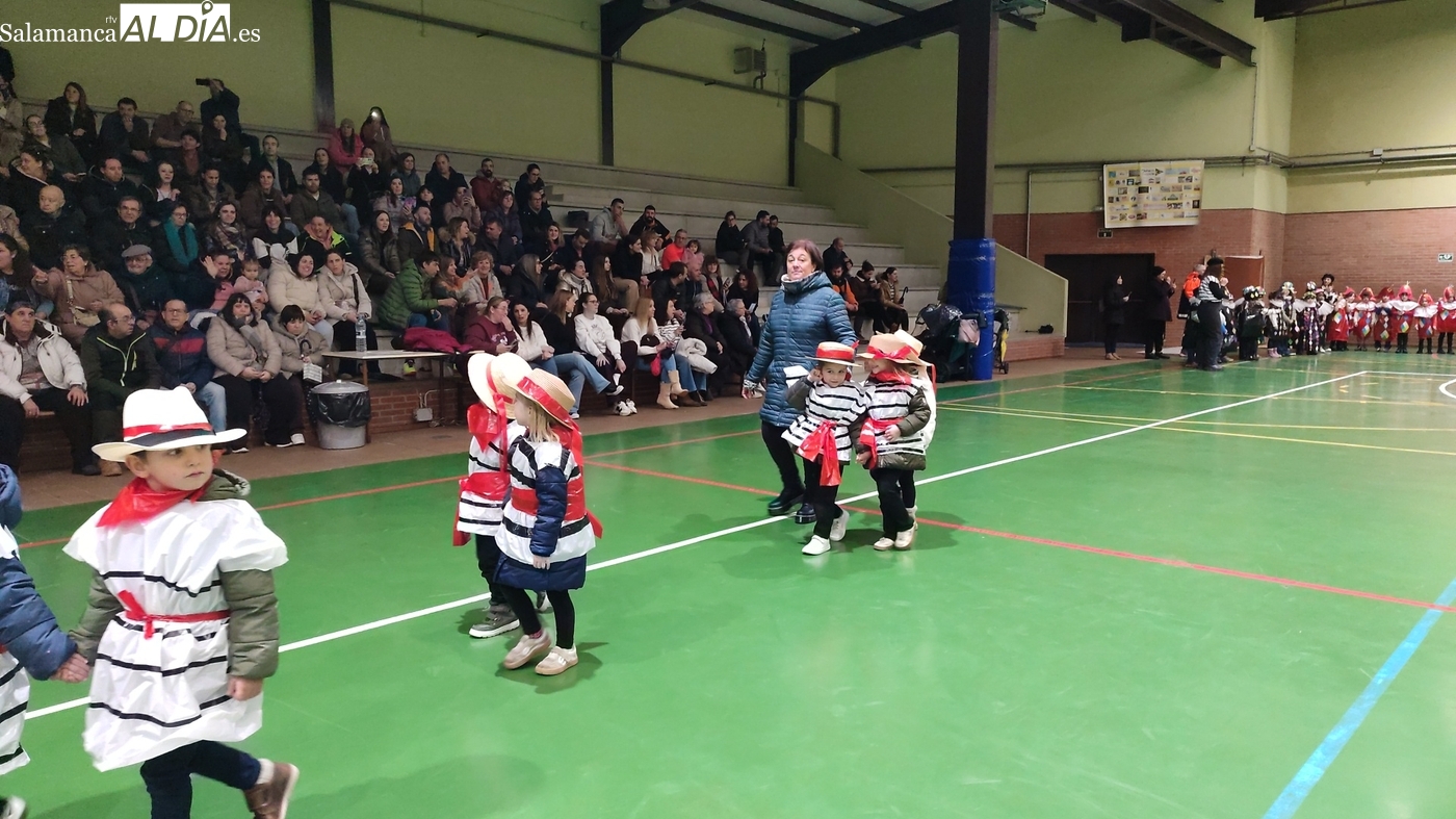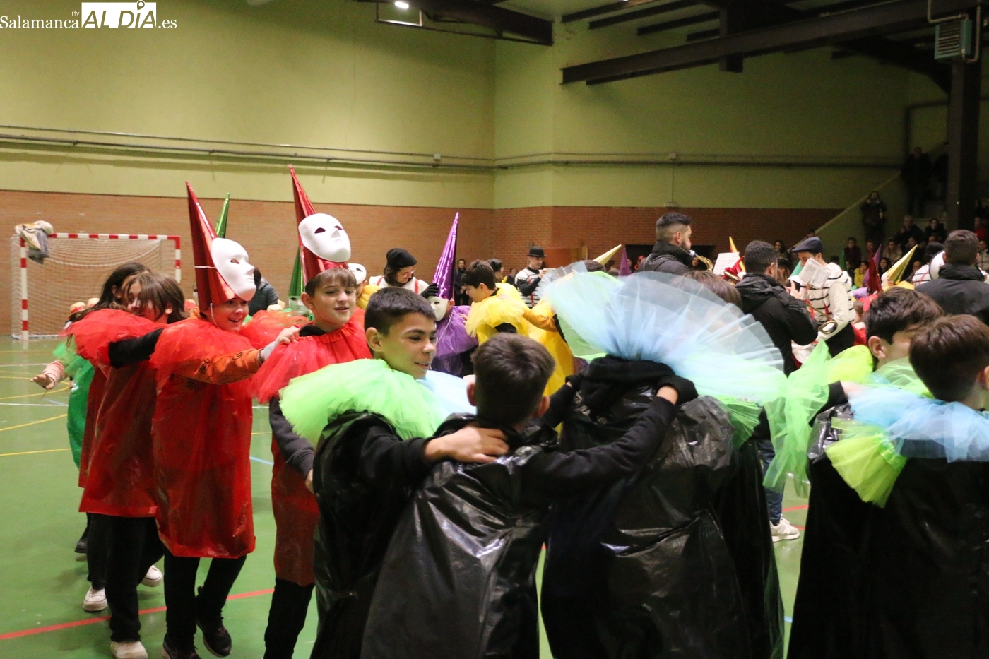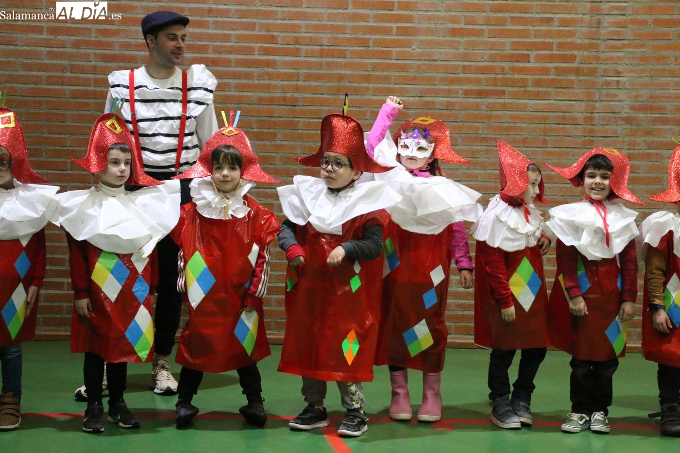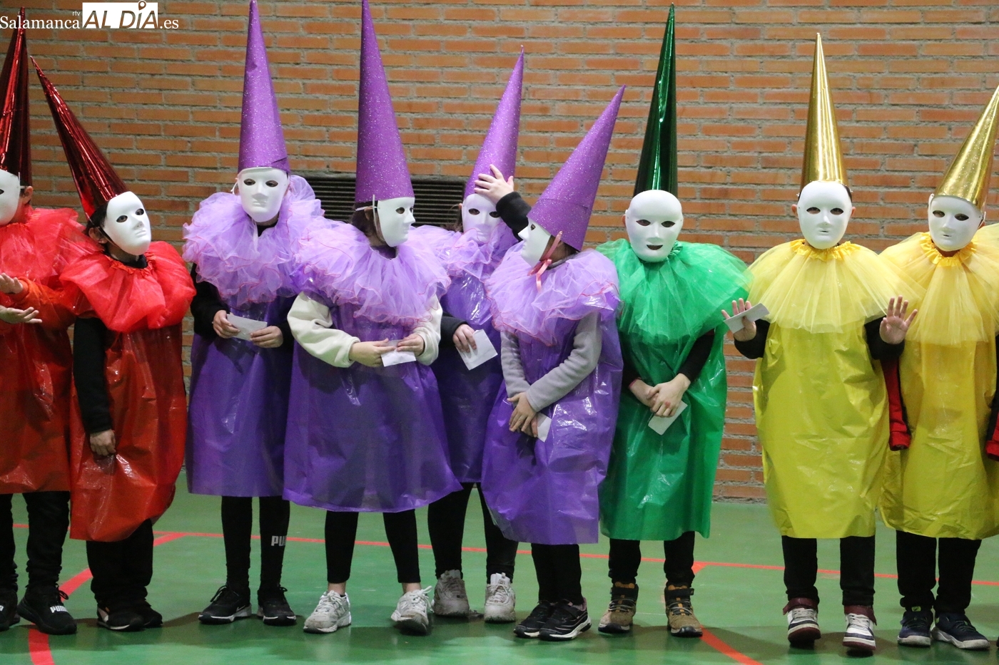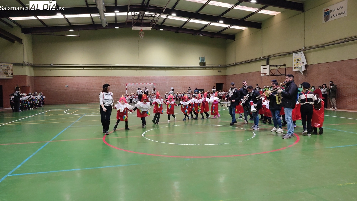 La inestabilidad meteorológica y la presencia de lluvia no han logrado empañar la celebración del Carnaval en Vitigudino. Aunque el agua ha impedido que el colorido desfile recorriera las calles de la localidad como es costumbre, la comunidad educativa del CEIP Manuel Moreno Blanco ha trasladado la fiesta al interior del pabellón polideportivo municipal. Allí, resguardados de las inclemencias, los escolares han podido lucir sus disfraces ante la atenta mirada de padres, madres, abuelos y abuelas que no han querido perderse el evento.