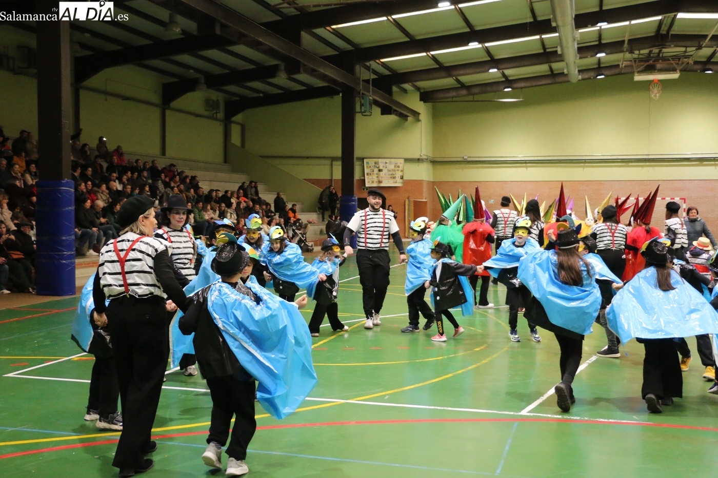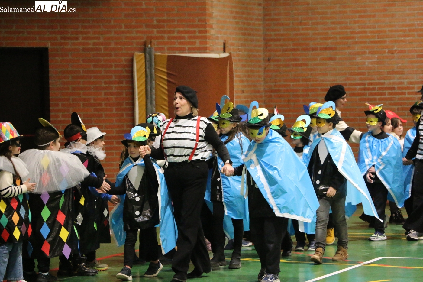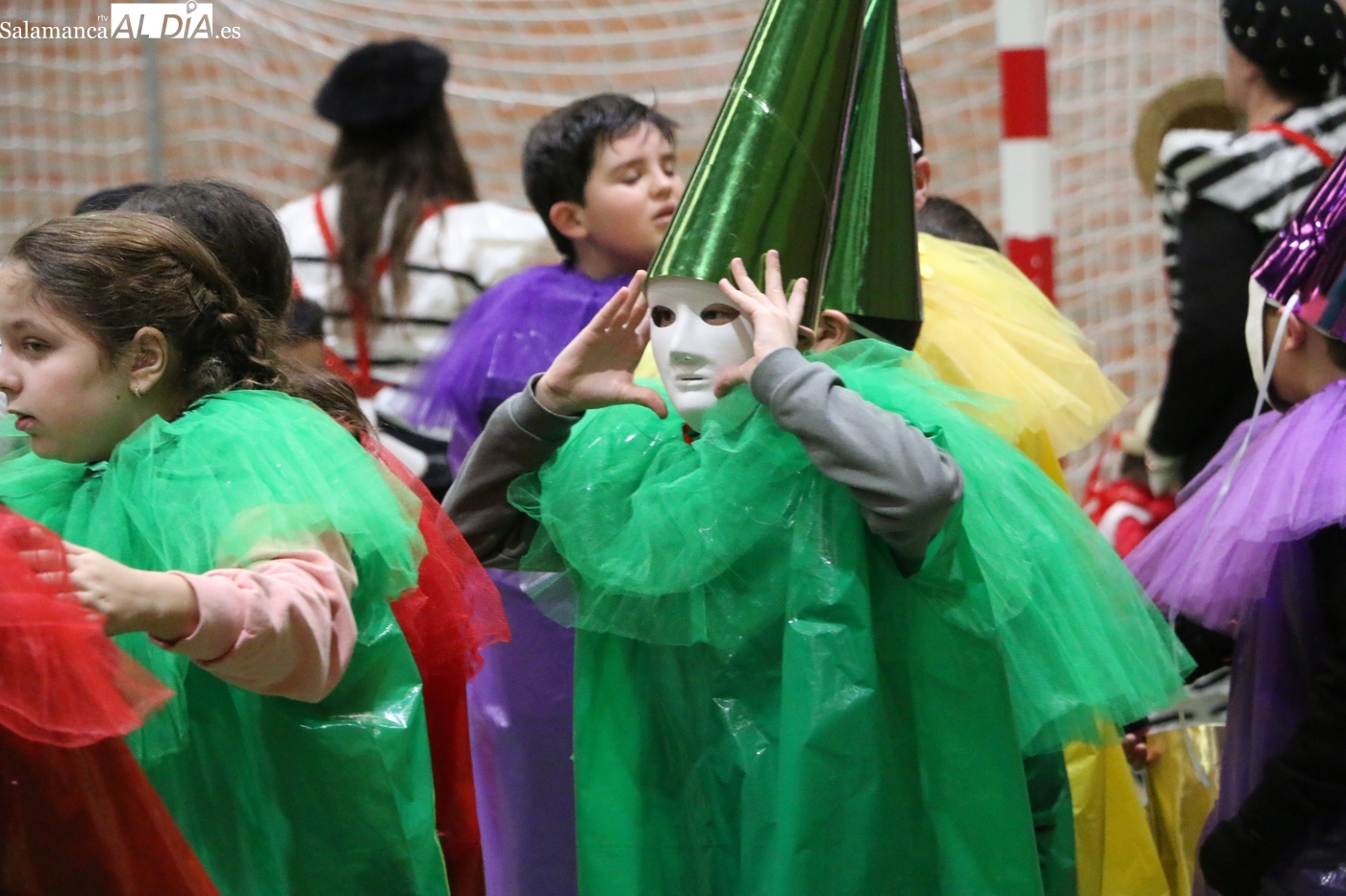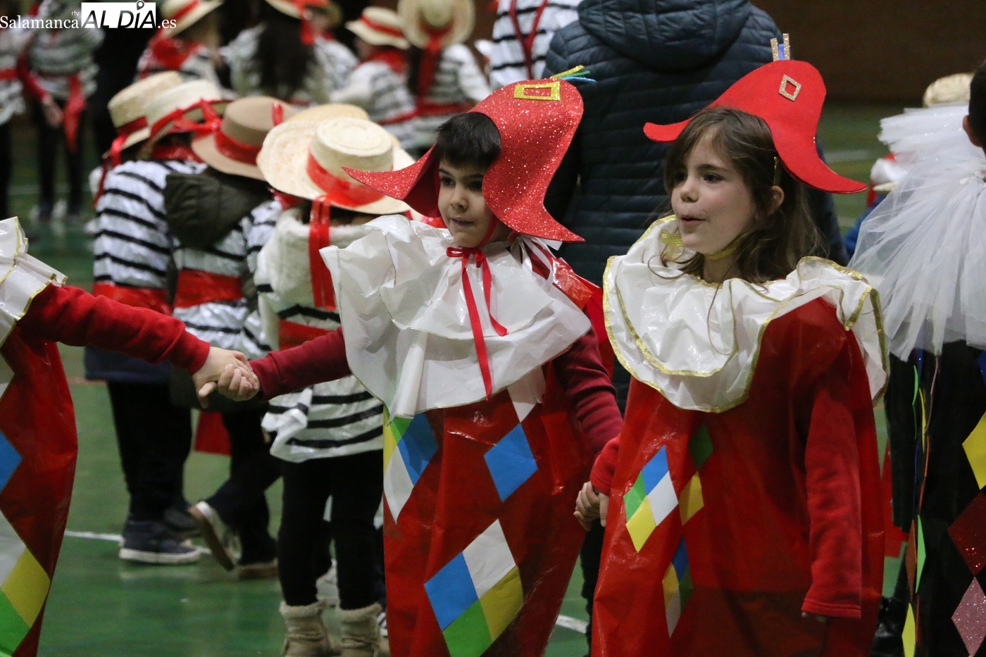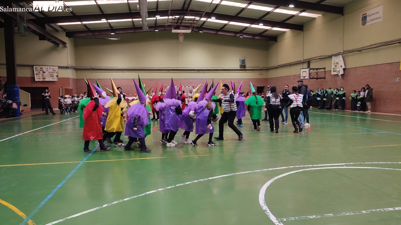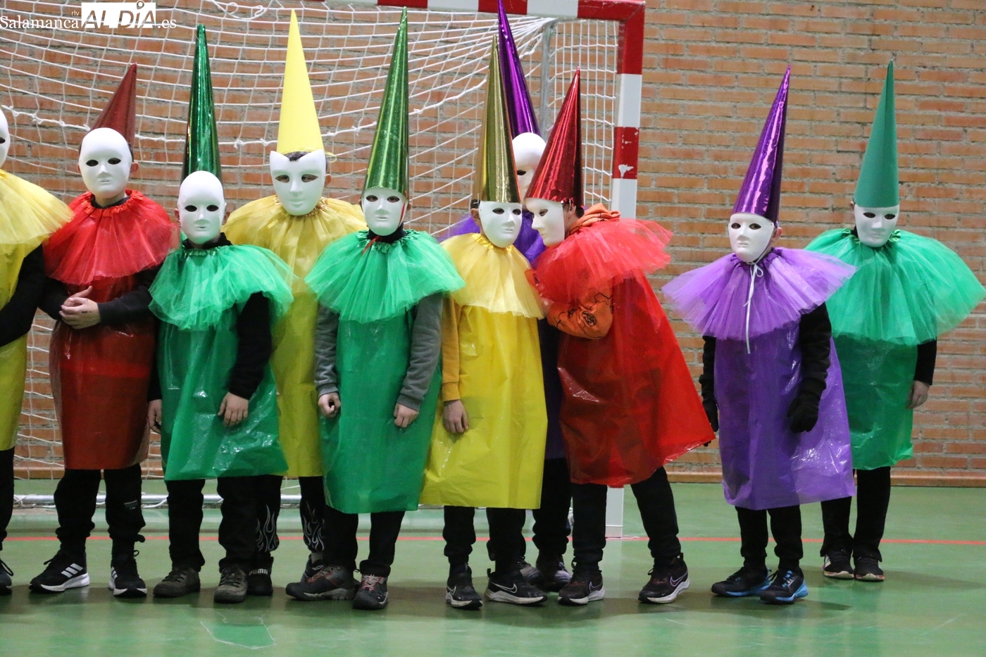 La inestabilidad meteorológica y la presencia de lluvia no han logrado empañar la celebración del Carnaval en Vitigudino. Aunque el agua ha impedido que el colorido desfile recorriera las calles de la localidad como es costumbre, la comunidad educativa del CEIP Manuel Moreno Blanco ha trasladado la fiesta al interior del pabellón polideportivo municipal. Allí, resguardados de las inclemencias, los escolares han podido lucir sus disfraces ante la atenta mirada de padres, madres, abuelos y abuelas que no han querido perderse el evento.