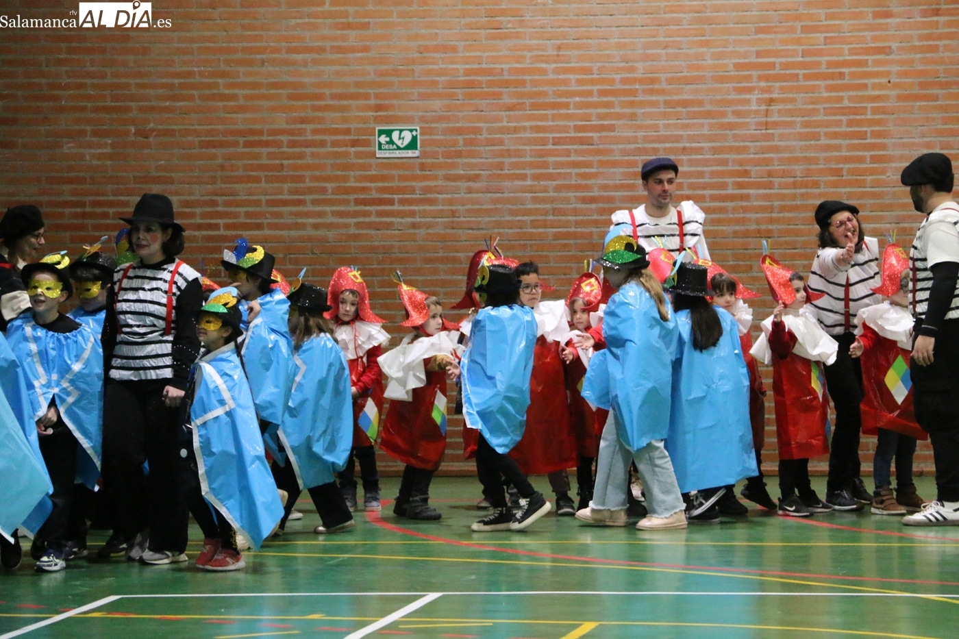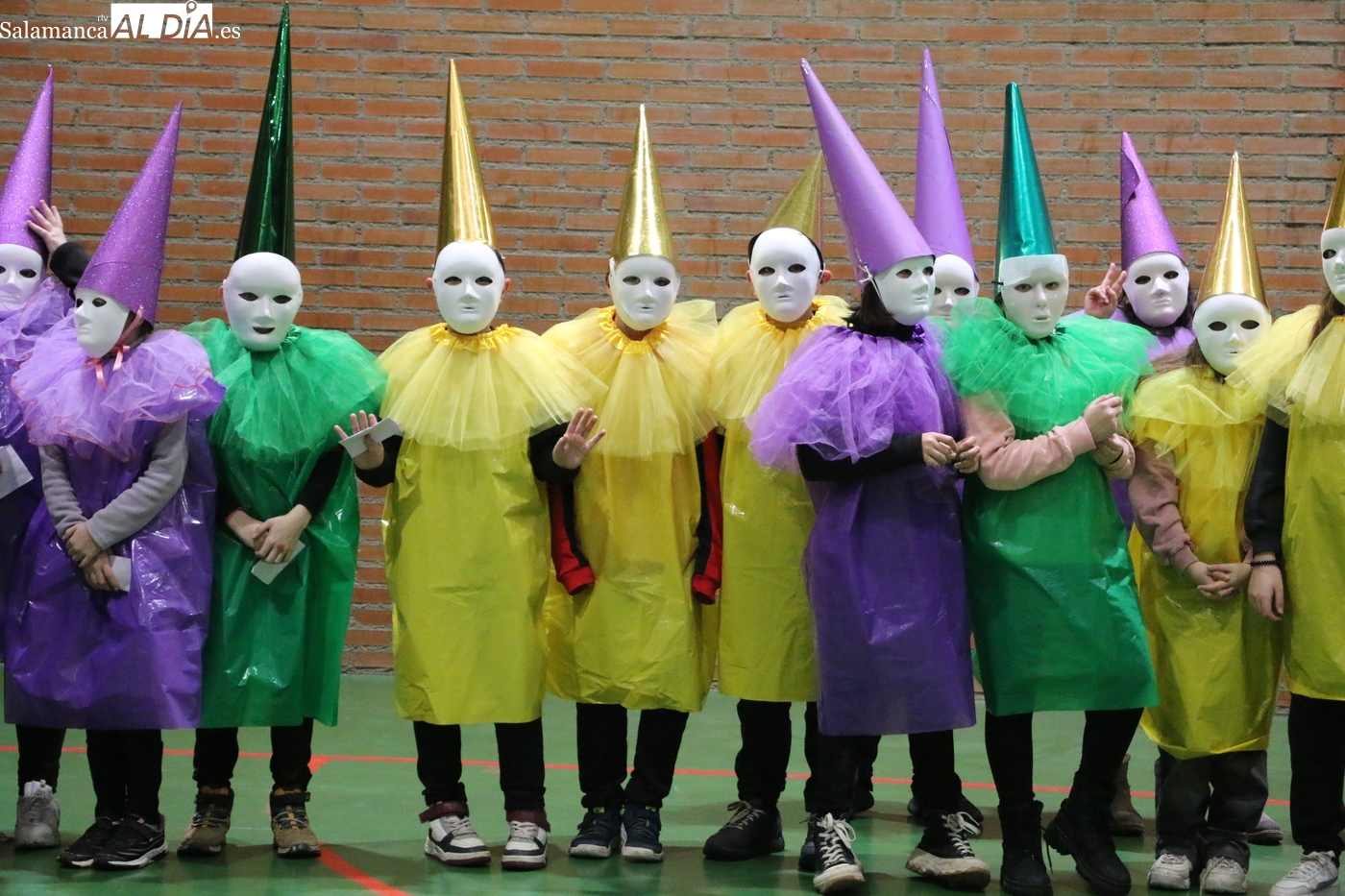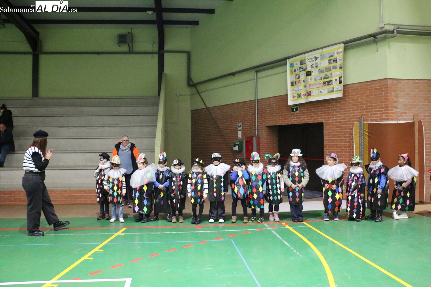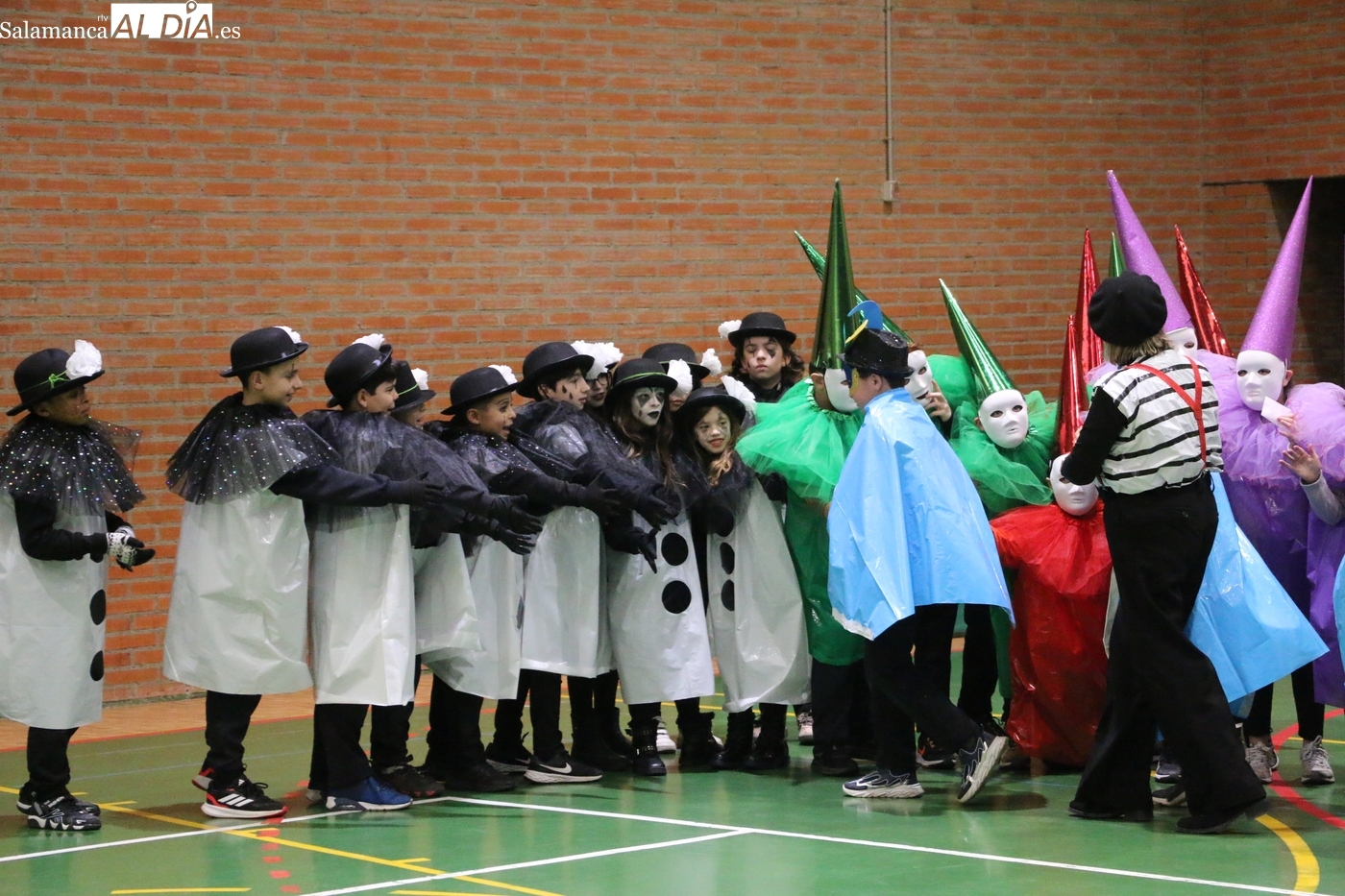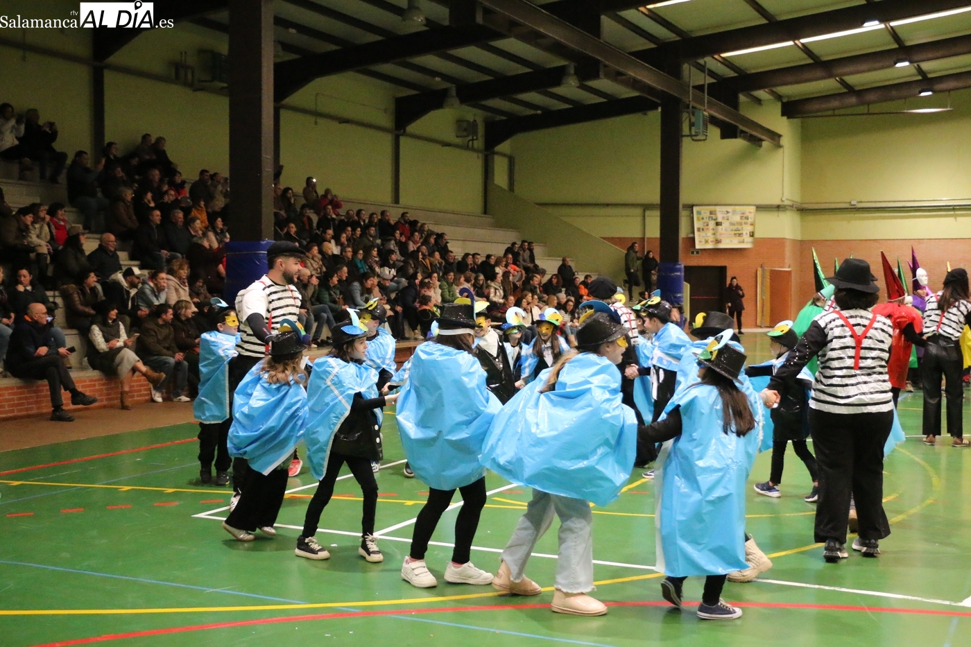 La inestabilidad meteorológica y la presencia de lluvia no han logrado empañar la celebración del Carnaval en Vitigudino. Aunque el agua ha impedido que el colorido desfile recorriera las calles de la localidad como es costumbre, la comunidad educativa del CEIP Manuel Moreno Blanco ha trasladado la fiesta al interior del pabellón polideportivo municipal. Allí, resguardados de las inclemencias, los escolares han podido lucir sus disfraces ante la atenta mirada de padres, madres, abuelos y abuelas que no han querido perderse el evento.