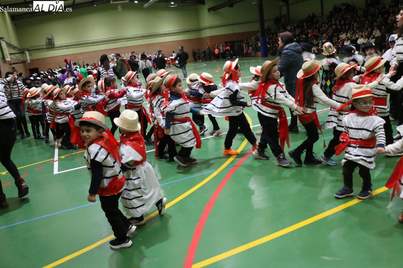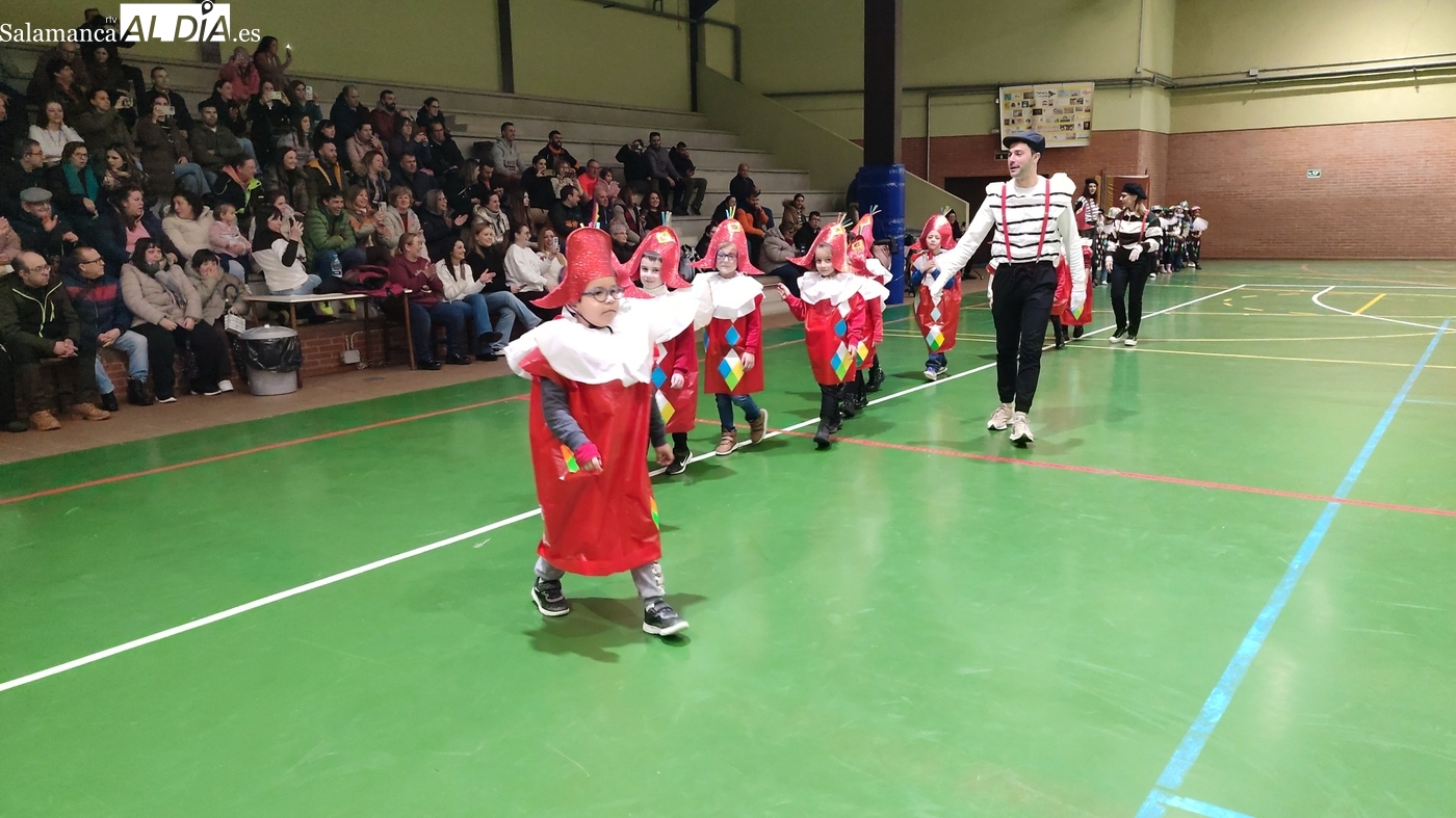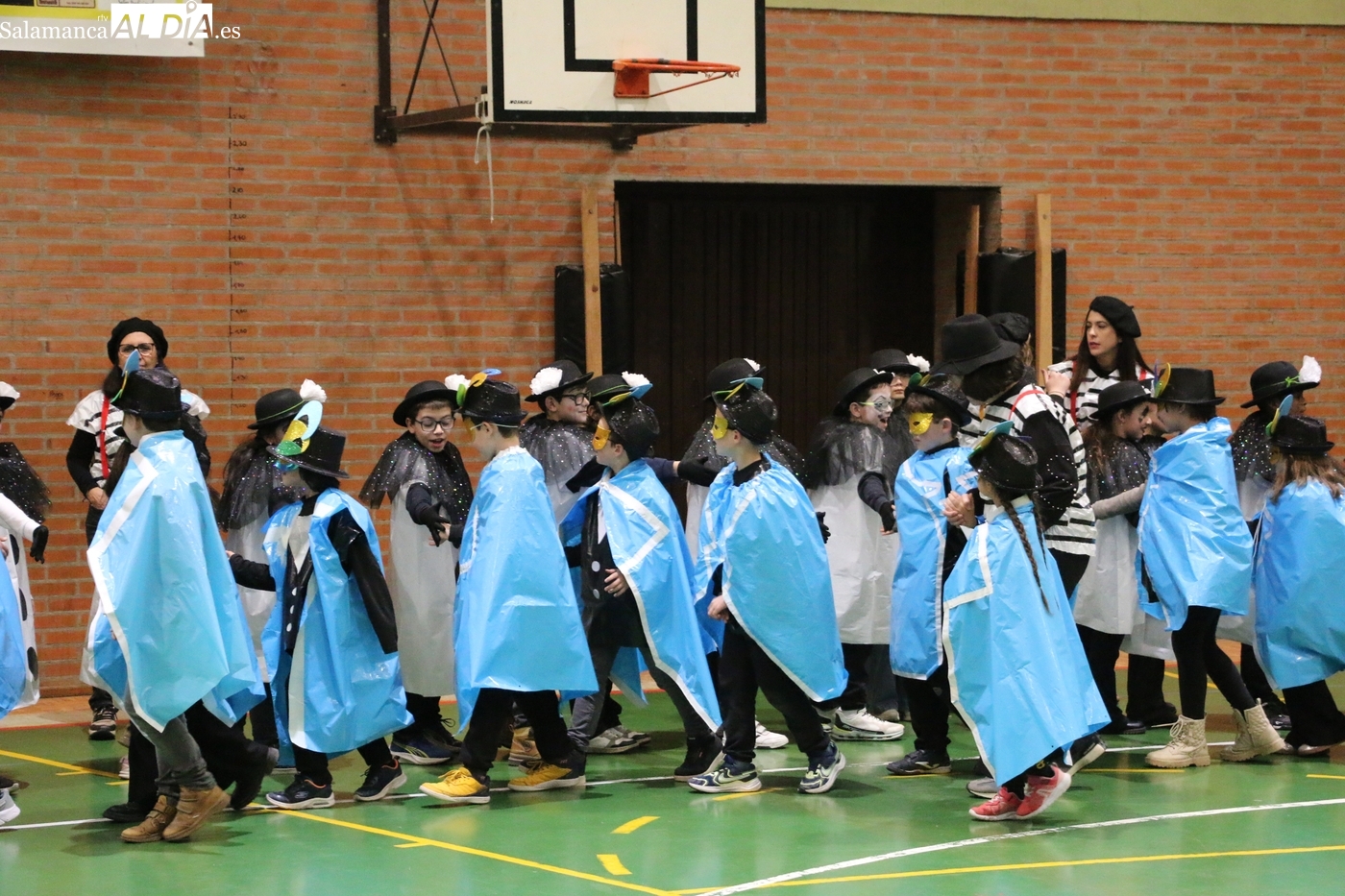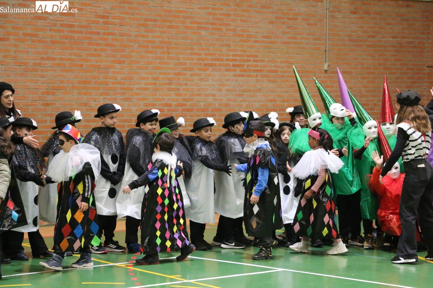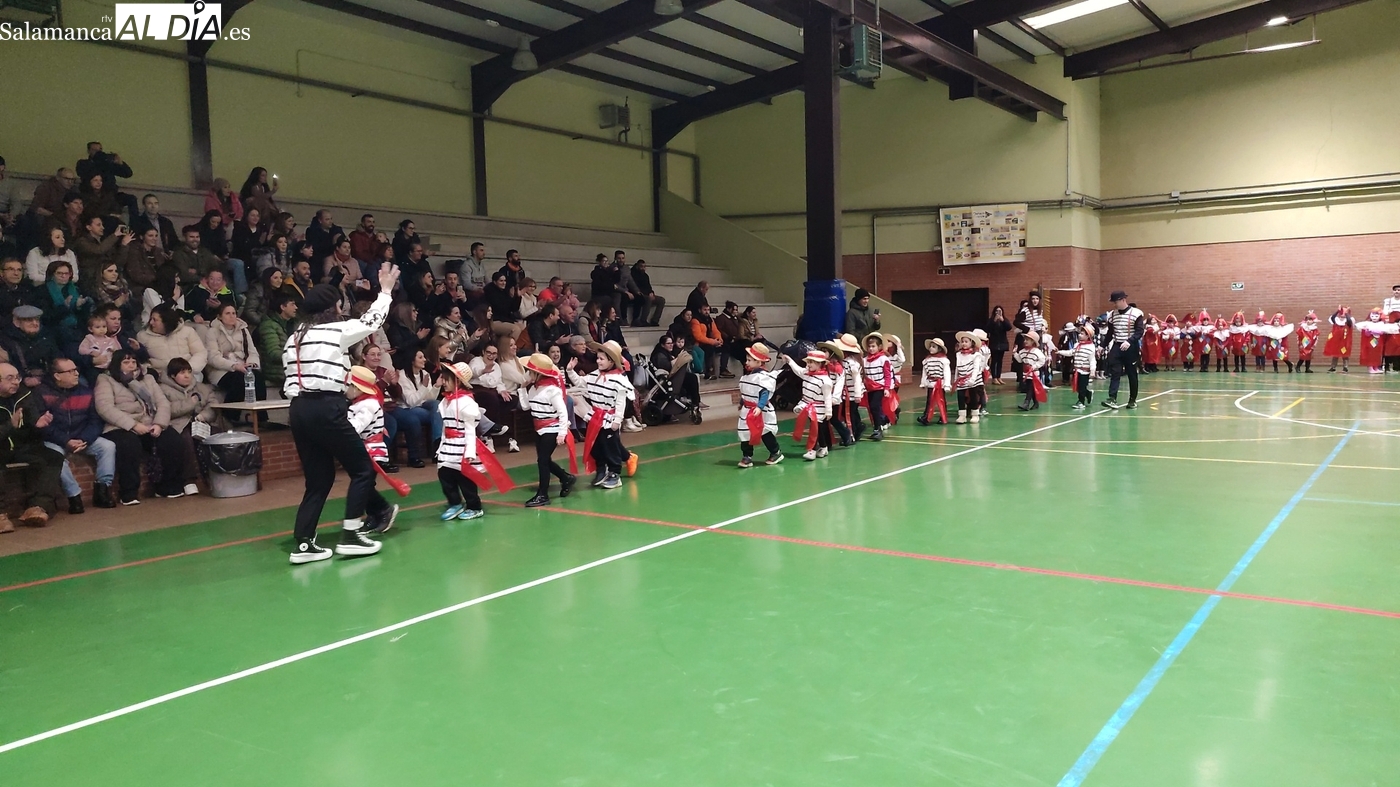 La inestabilidad meteorológica y la presencia de lluvia no han logrado empañar la celebración del Carnaval en Vitigudino. Aunque el agua ha impedido que el colorido desfile recorriera las calles de la localidad como es costumbre, la comunidad educativa del CEIP Manuel Moreno Blanco ha trasladado la fiesta al interior del pabellón polideportivo municipal. Allí, resguardados de las inclemencias, los escolares han podido lucir sus disfraces ante la atenta mirada de padres, madres, abuelos y abuelas que no han querido perderse el evento.