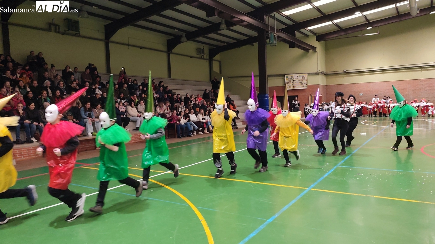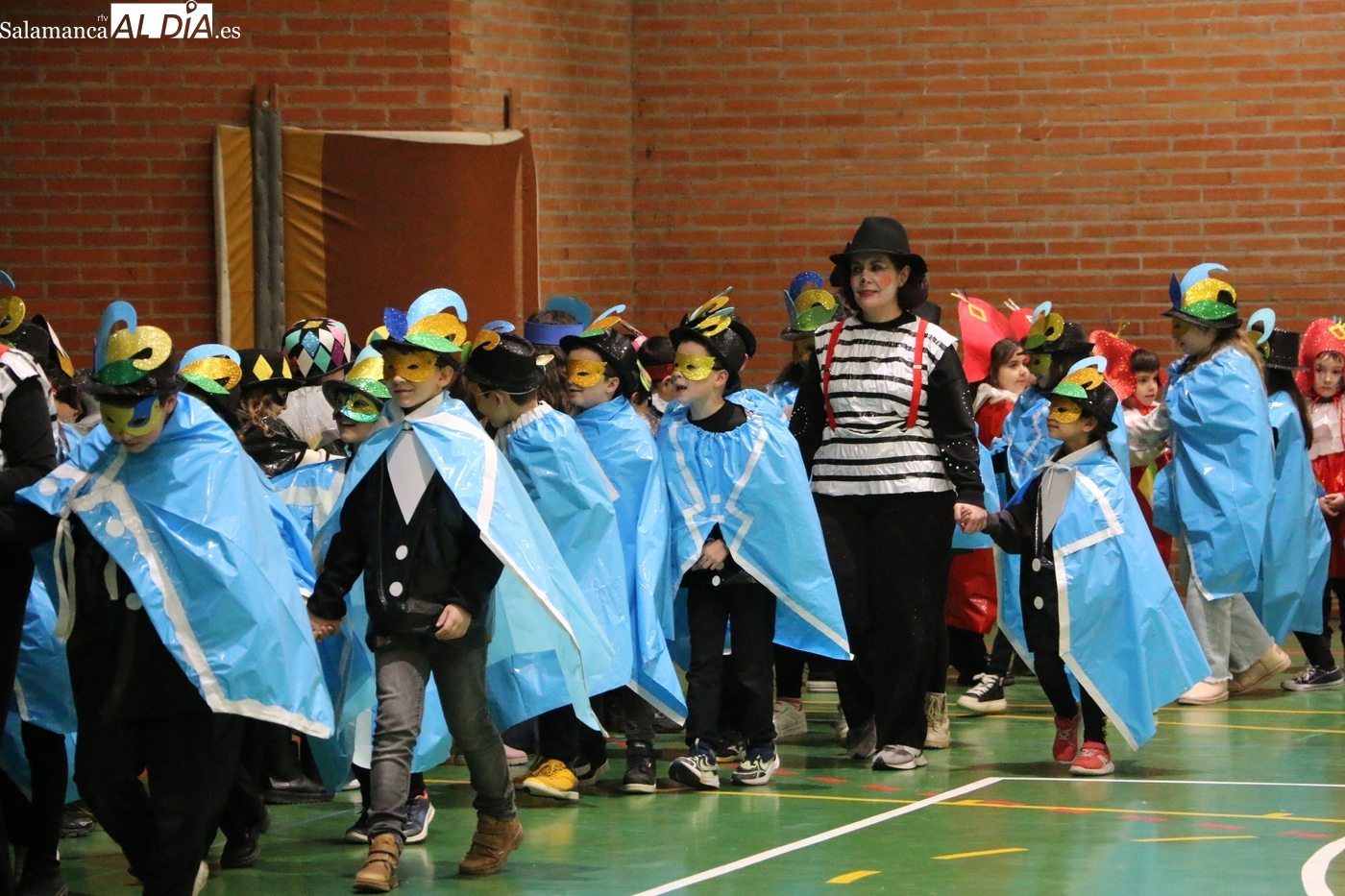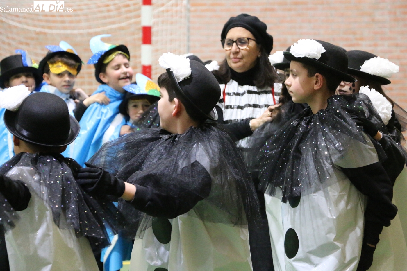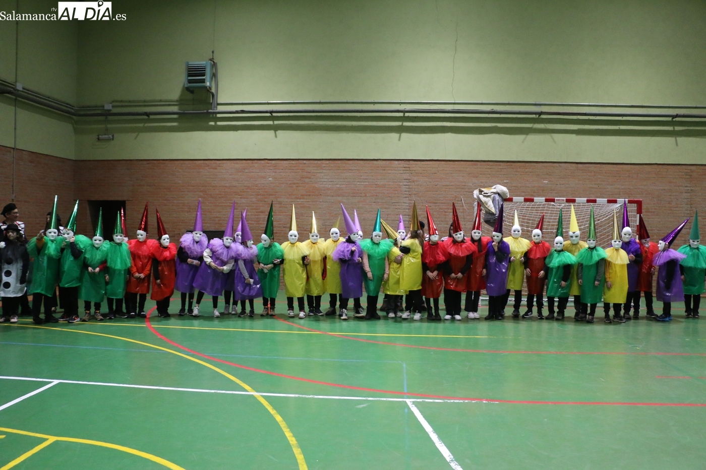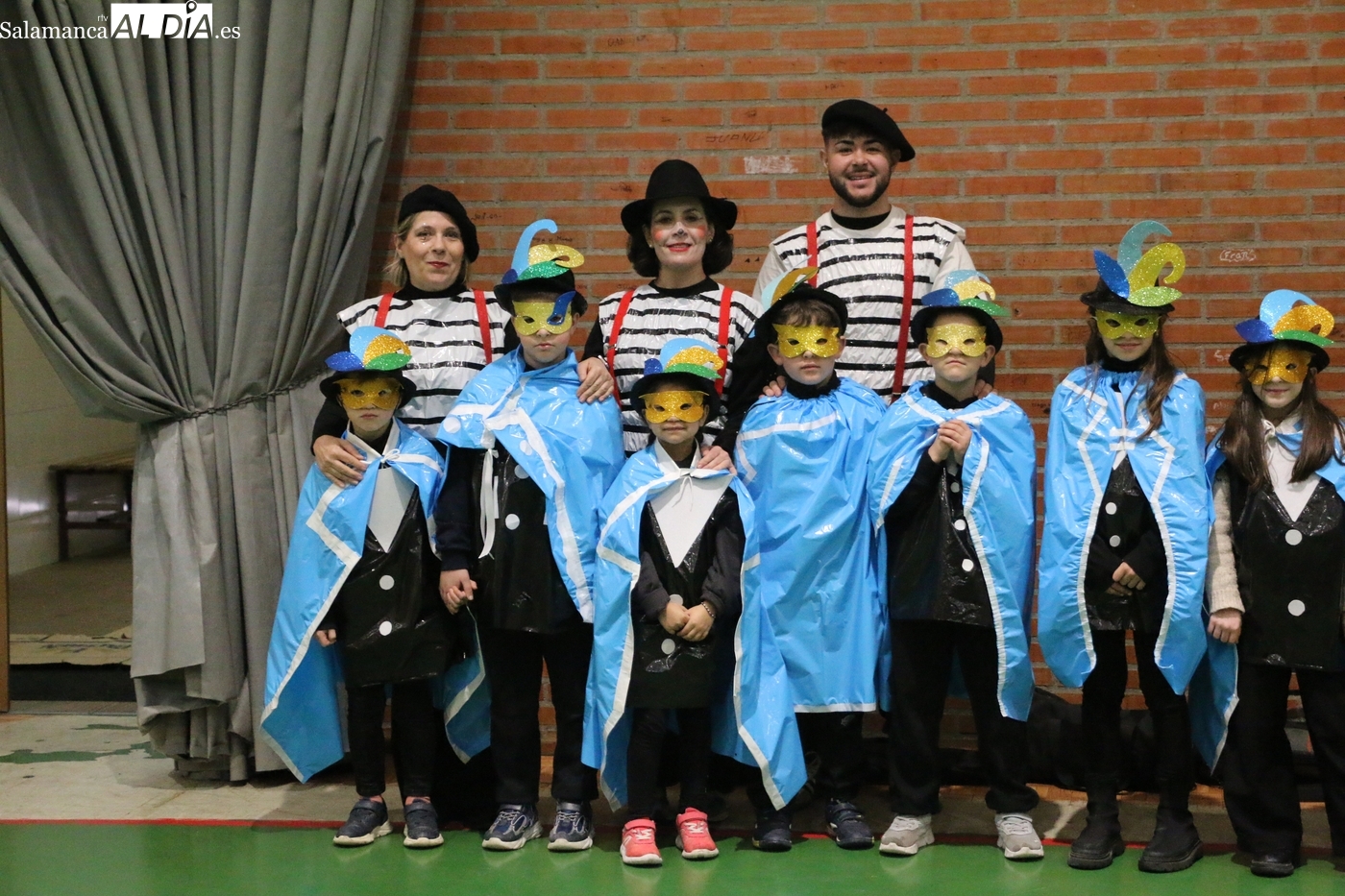 La inestabilidad meteorológica y la presencia de lluvia no han logrado empañar la celebración del Carnaval en Vitigudino. Aunque el agua ha impedido que el colorido desfile recorriera las calles de la localidad como es costumbre, la comunidad educativa del CEIP Manuel Moreno Blanco ha trasladado la fiesta al interior del pabellón polideportivo municipal. Allí, resguardados de las inclemencias, los escolares han podido lucir sus disfraces ante la atenta mirada de padres, madres, abuelos y abuelas que no han querido perderse el evento.
