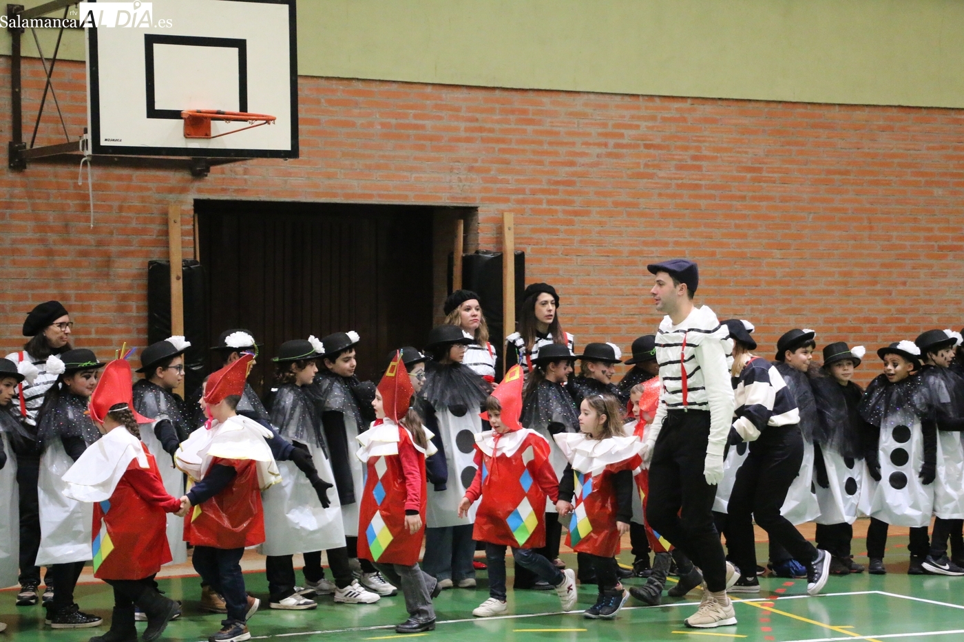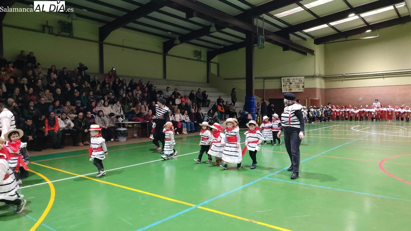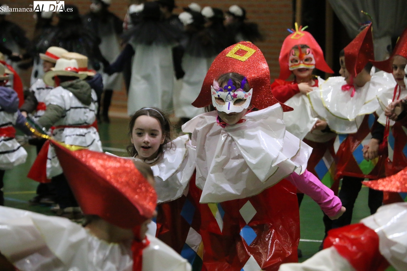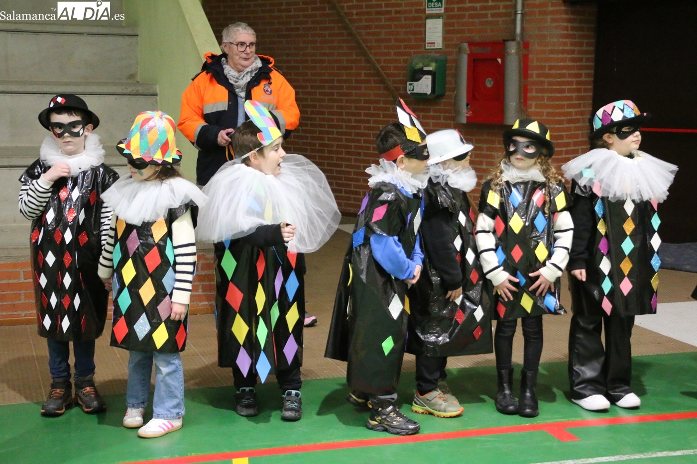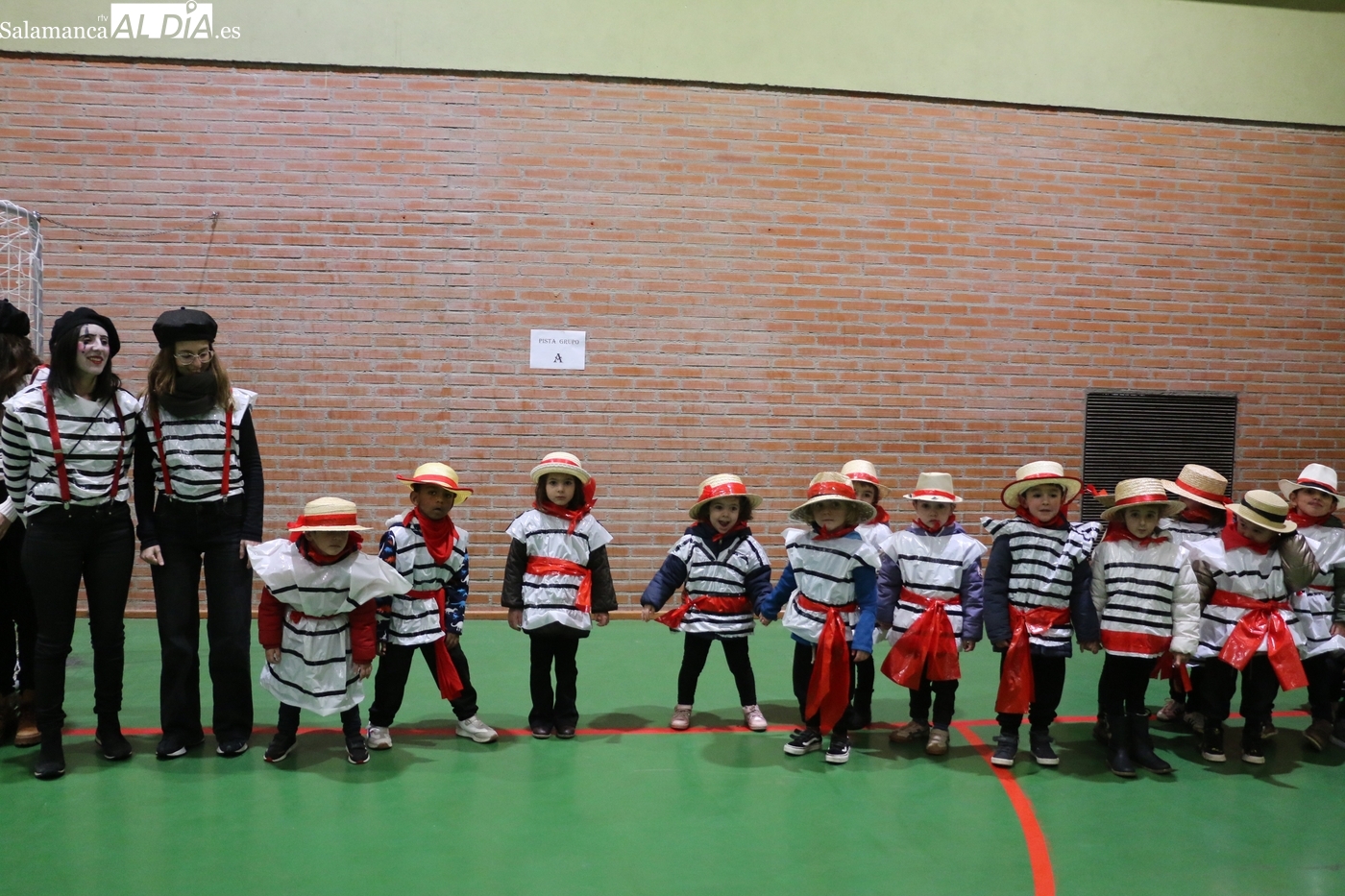La inestabilidad meteorológica y la presencia de lluvia no han logrado empañar la celebración del Carnaval en Vitigudino. Aunque el agua ha impedido que el colorido desfile recorriera las calles de la localidad como es costumbre, la comunidad educativa del CEIP Manuel Moreno Blanco ha trasladado la fiesta al interior del pabellón polideportivo municipal. Allí, resguardados de las inclemencias, los escolares han podido lucir sus disfraces ante la atenta mirada de padres, madres, abuelos y abuelas que no han querido perderse el evento.