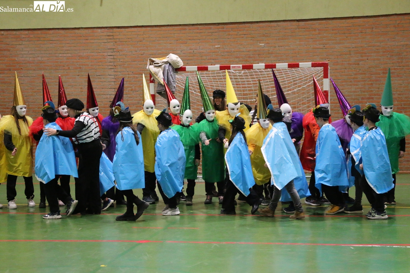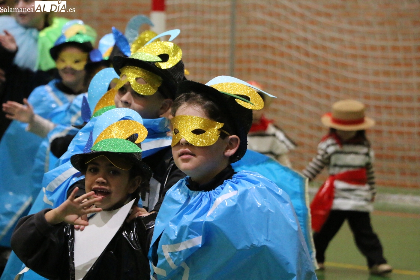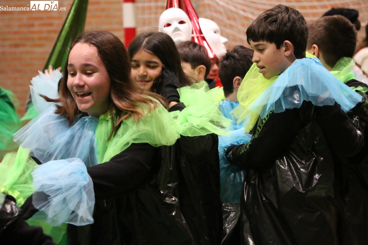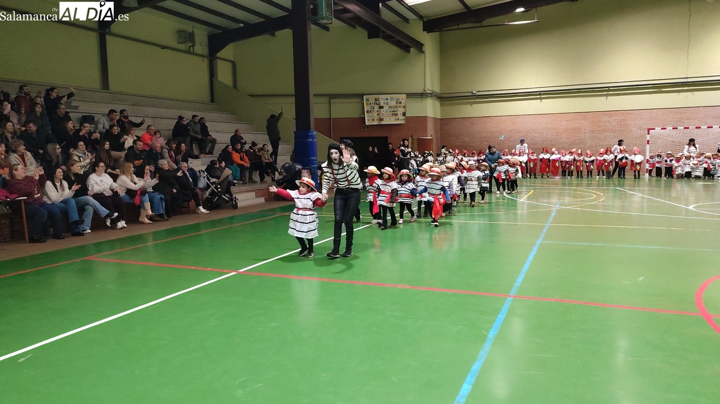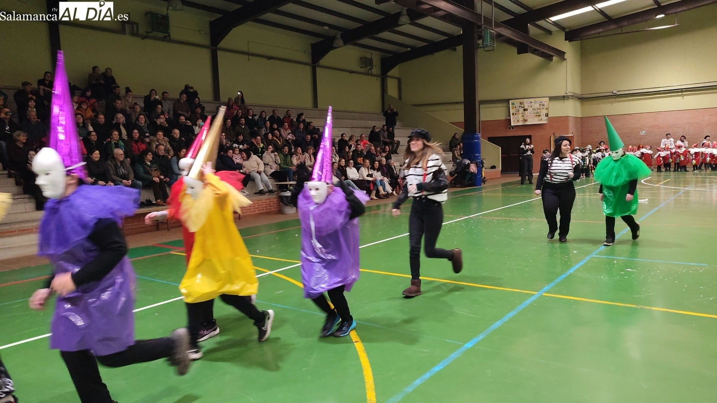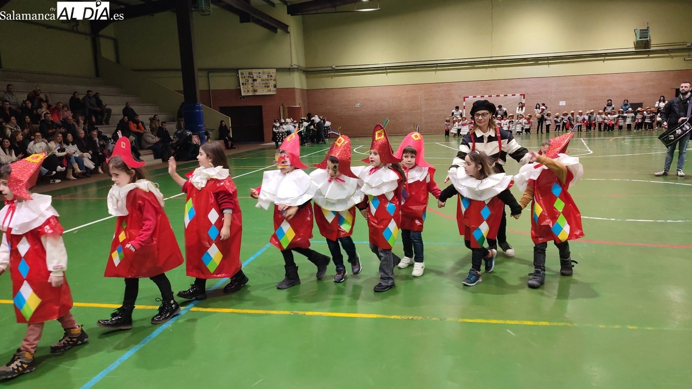 La inestabilidad meteorológica y la presencia de lluvia no han logrado empañar la celebración del Carnaval en Vitigudino. Aunque el agua ha impedido que el colorido desfile recorriera las calles de la localidad como es costumbre, la comunidad educativa del CEIP Manuel Moreno Blanco ha trasladado la fiesta al interior del pabellón polideportivo municipal. Allí, resguardados de las inclemencias, los escolares han podido lucir sus disfraces ante la atenta mirada de padres, madres, abuelos y abuelas que no han querido perderse el evento.
