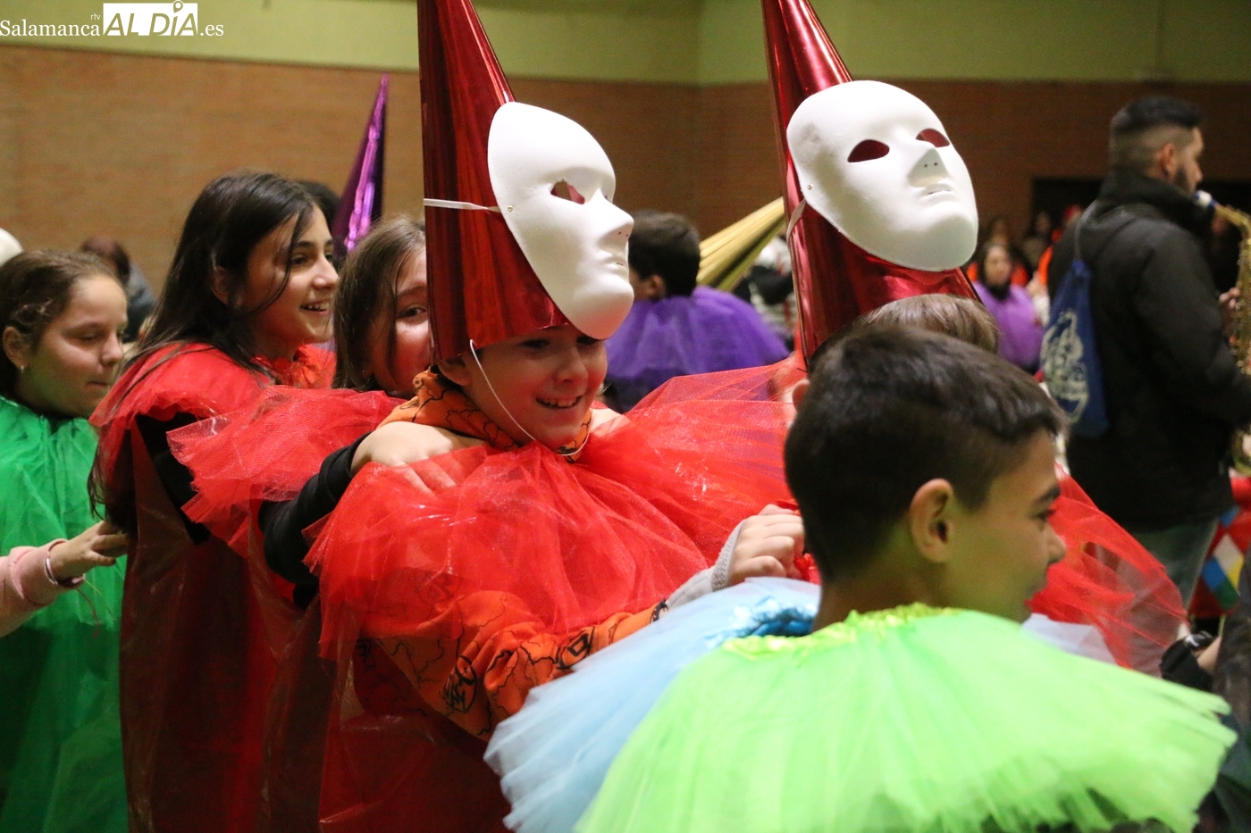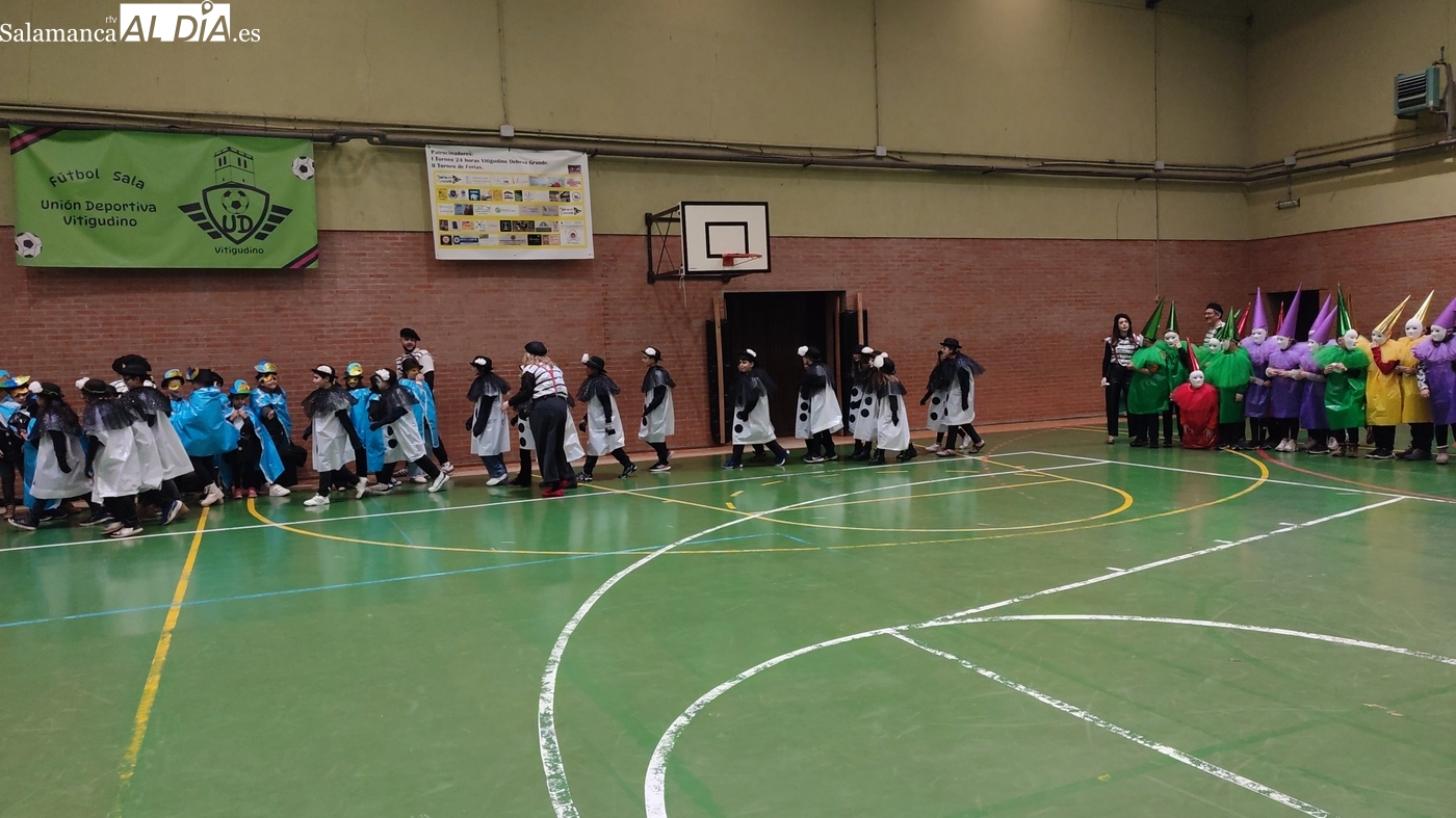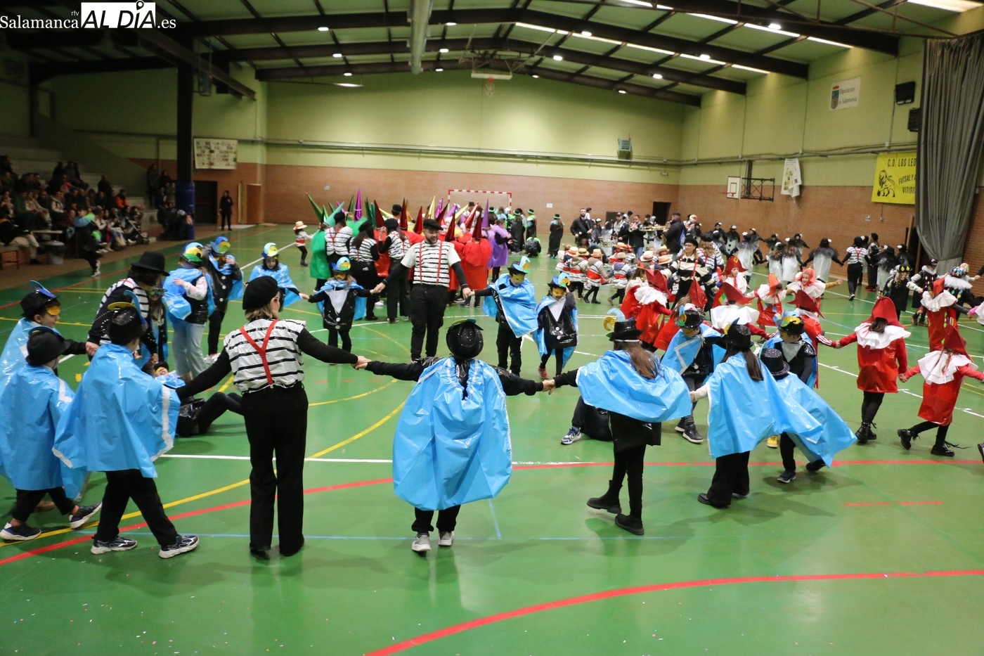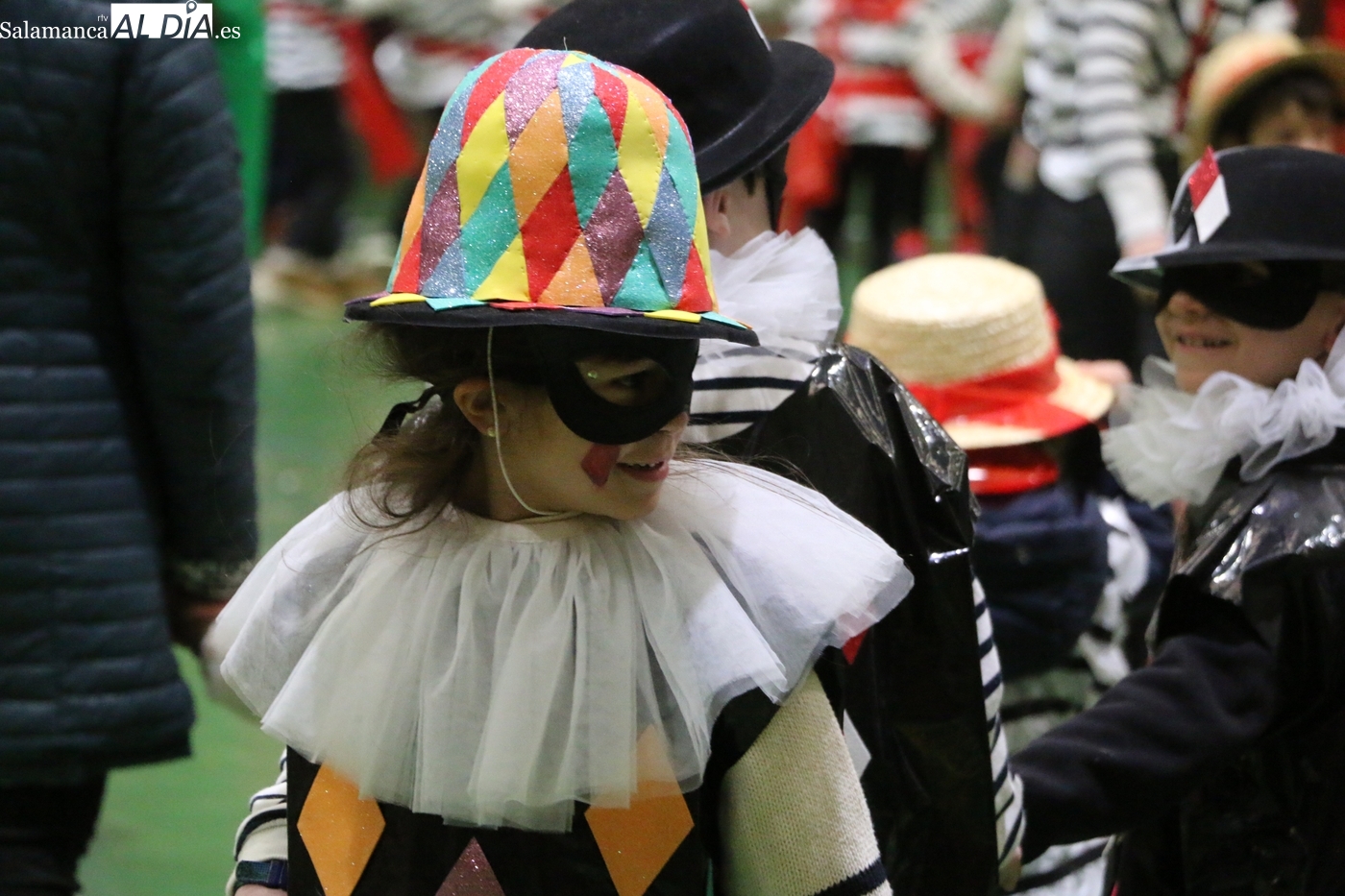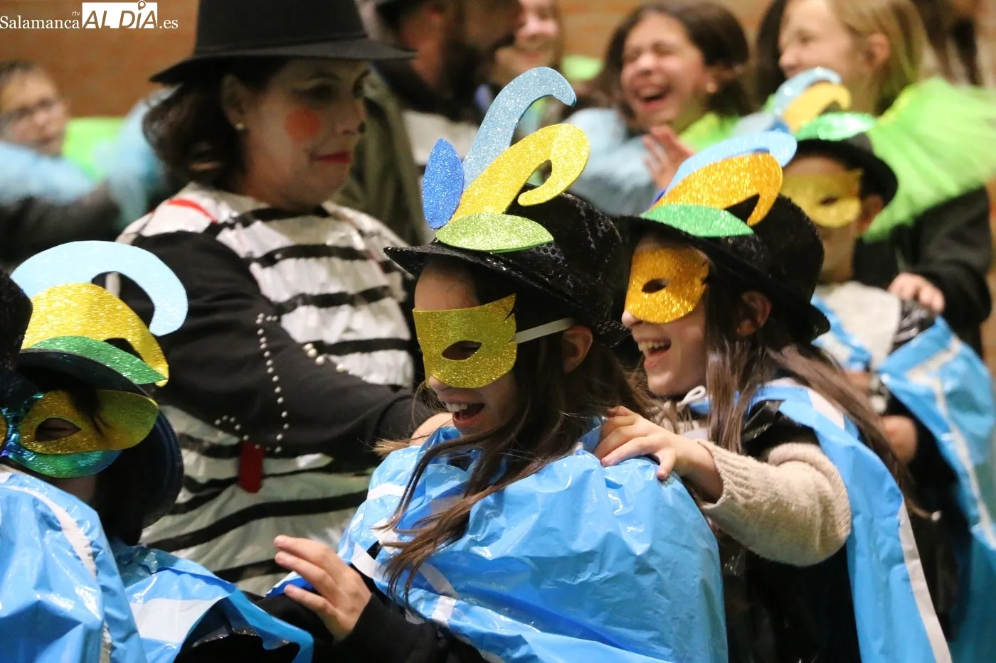 La inestabilidad meteorológica y la presencia de lluvia no han logrado empañar la celebración del Carnaval en Vitigudino. Aunque el agua ha impedido que el colorido desfile recorriera las calles de la localidad como es costumbre, la comunidad educativa del CEIP Manuel Moreno Blanco ha trasladado la fiesta al interior del pabellón polideportivo municipal. Allí, resguardados de las inclemencias, los escolares han podido lucir sus disfraces ante la atenta mirada de padres, madres, abuelos y abuelas que no han querido perderse el evento.