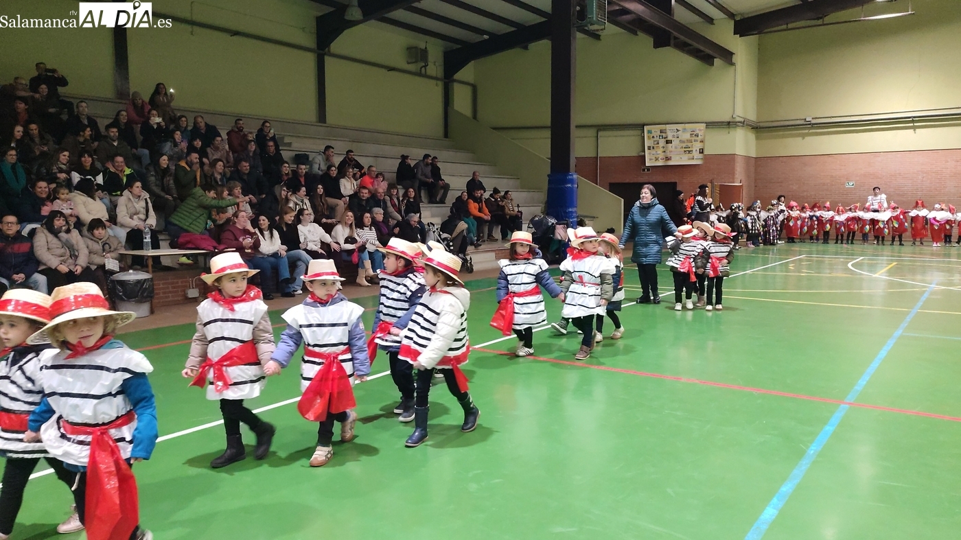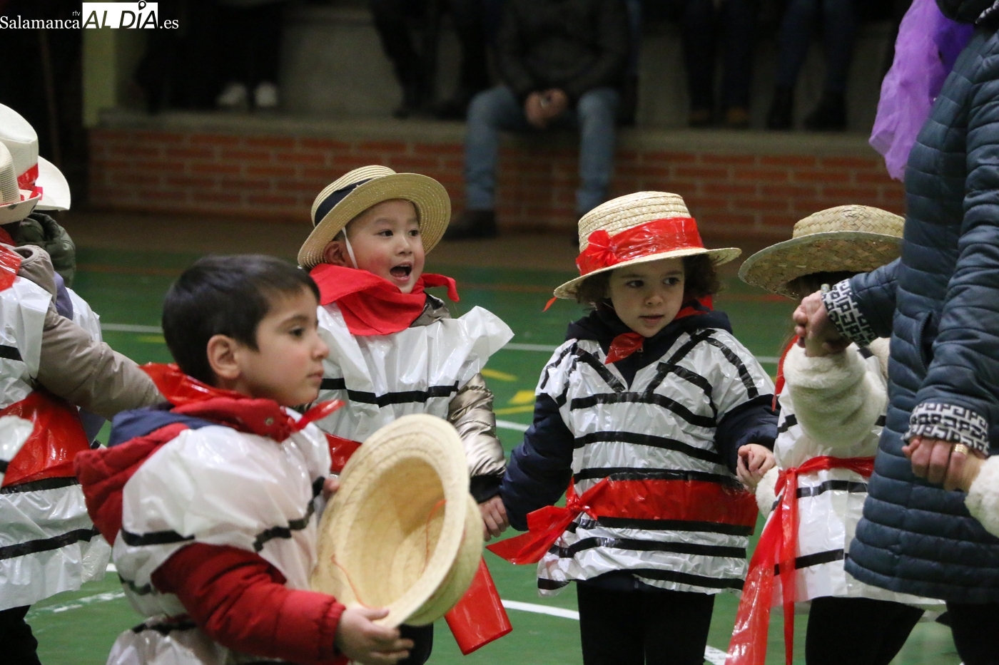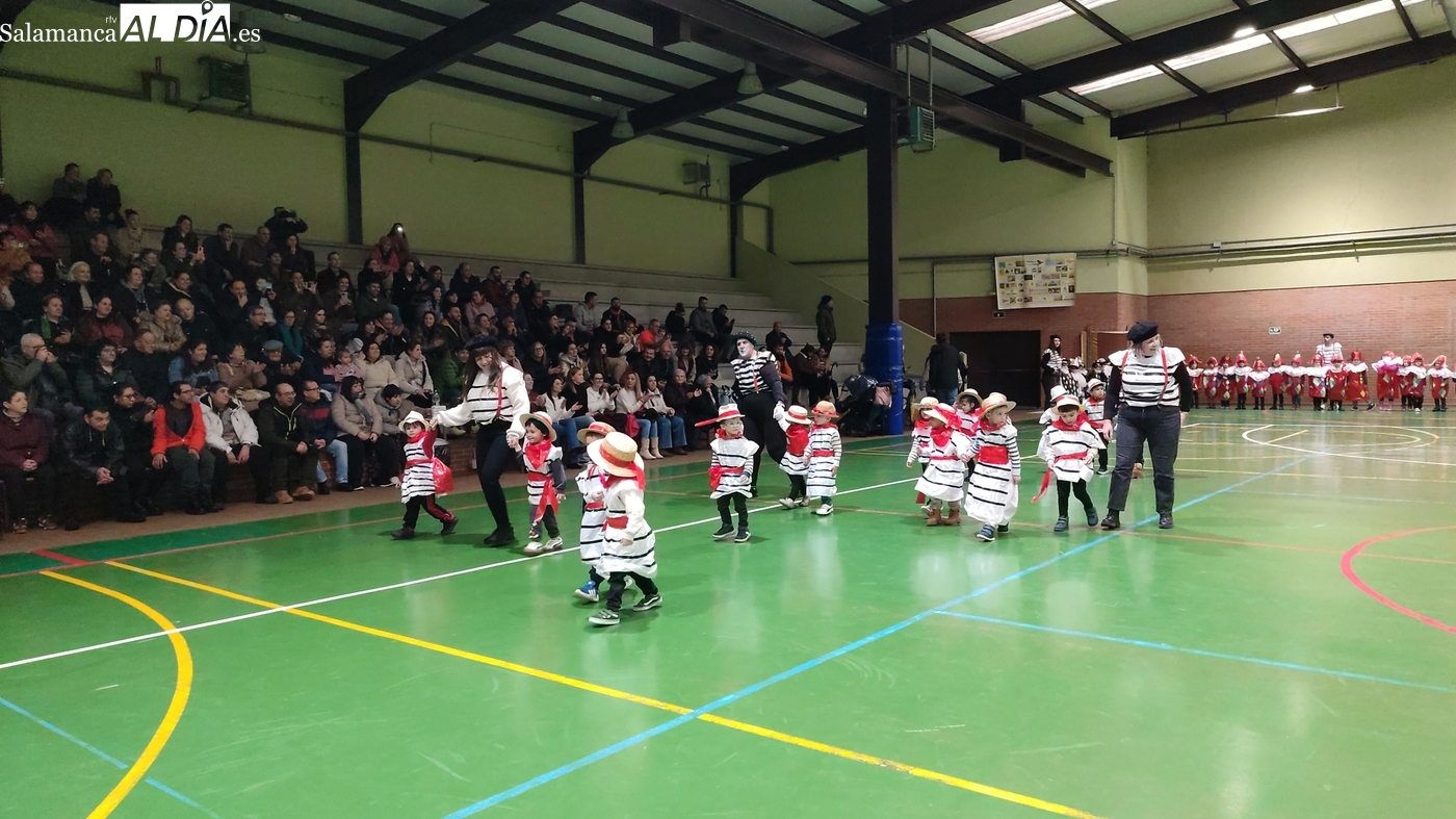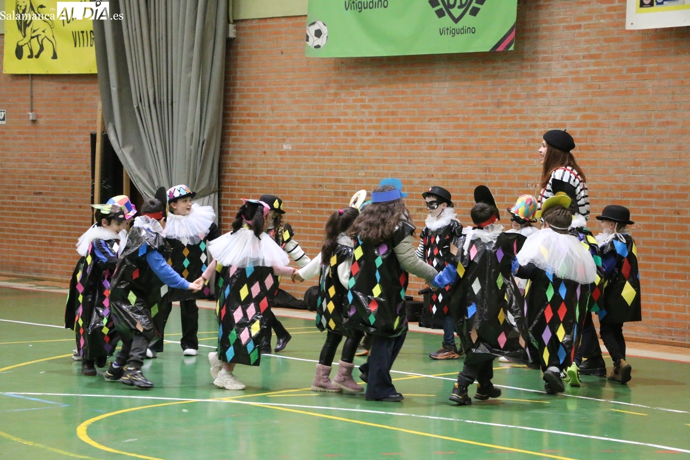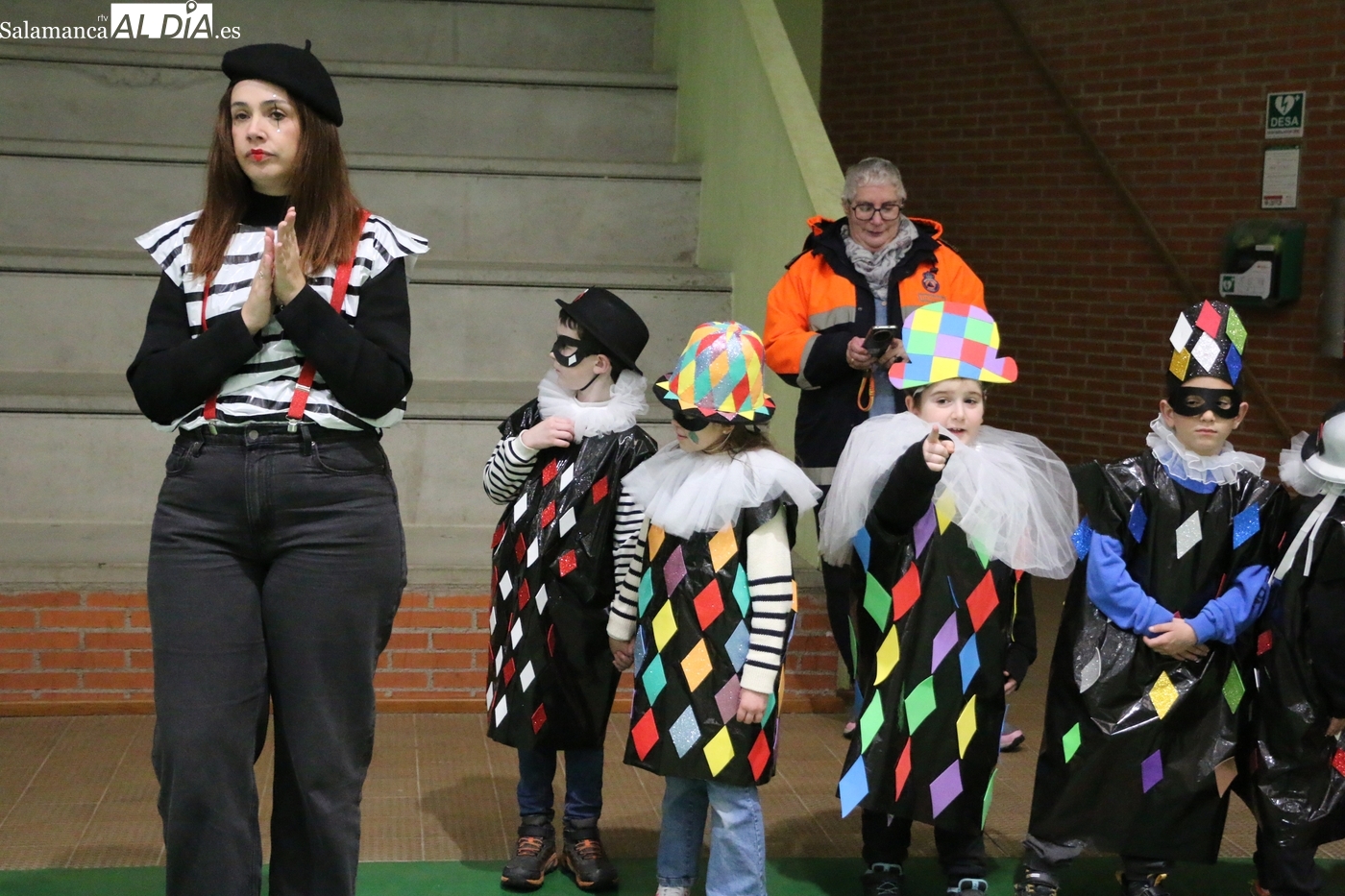 La inestabilidad meteorológica y la presencia de lluvia no han logrado empañar la celebración del Carnaval en Vitigudino. Aunque el agua ha impedido que el colorido desfile recorriera las calles de la localidad como es costumbre, la comunidad educativa del CEIP Manuel Moreno Blanco ha trasladado la fiesta al interior del pabellón polideportivo municipal. Allí, resguardados de las inclemencias, los escolares han podido lucir sus disfraces ante la atenta mirada de padres, madres, abuelos y abuelas que no han querido perderse el evento.