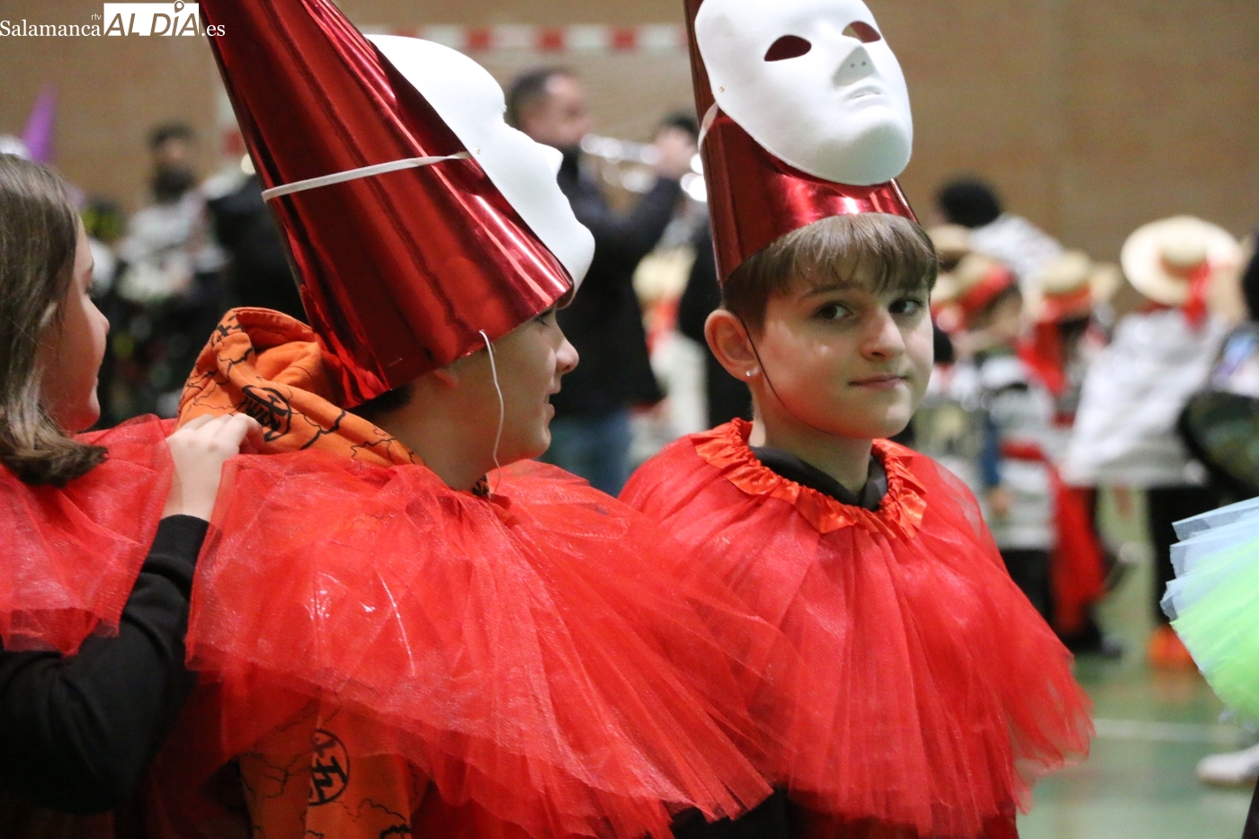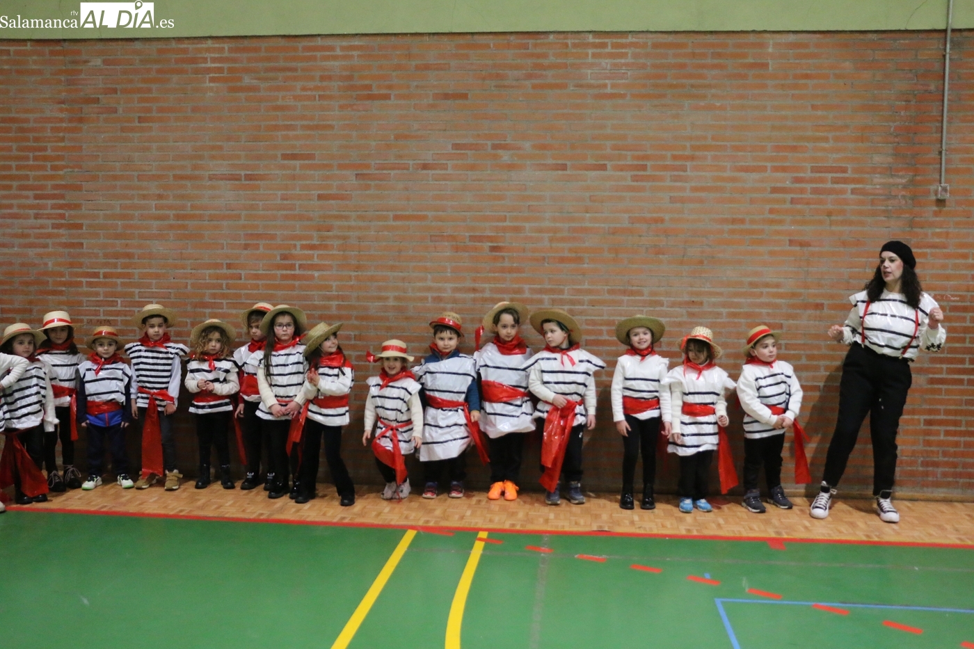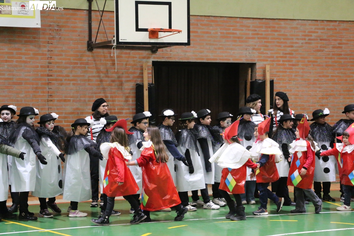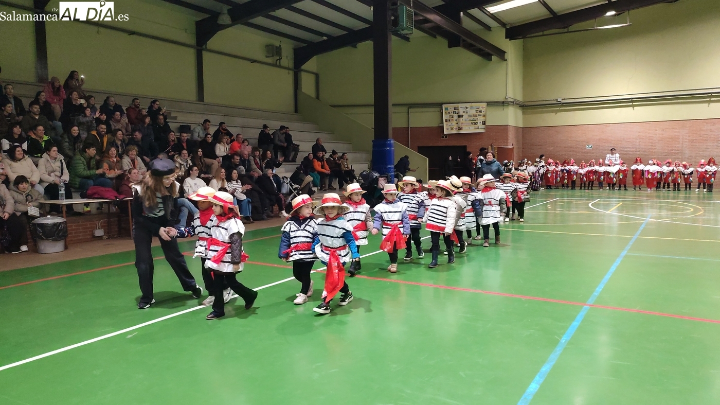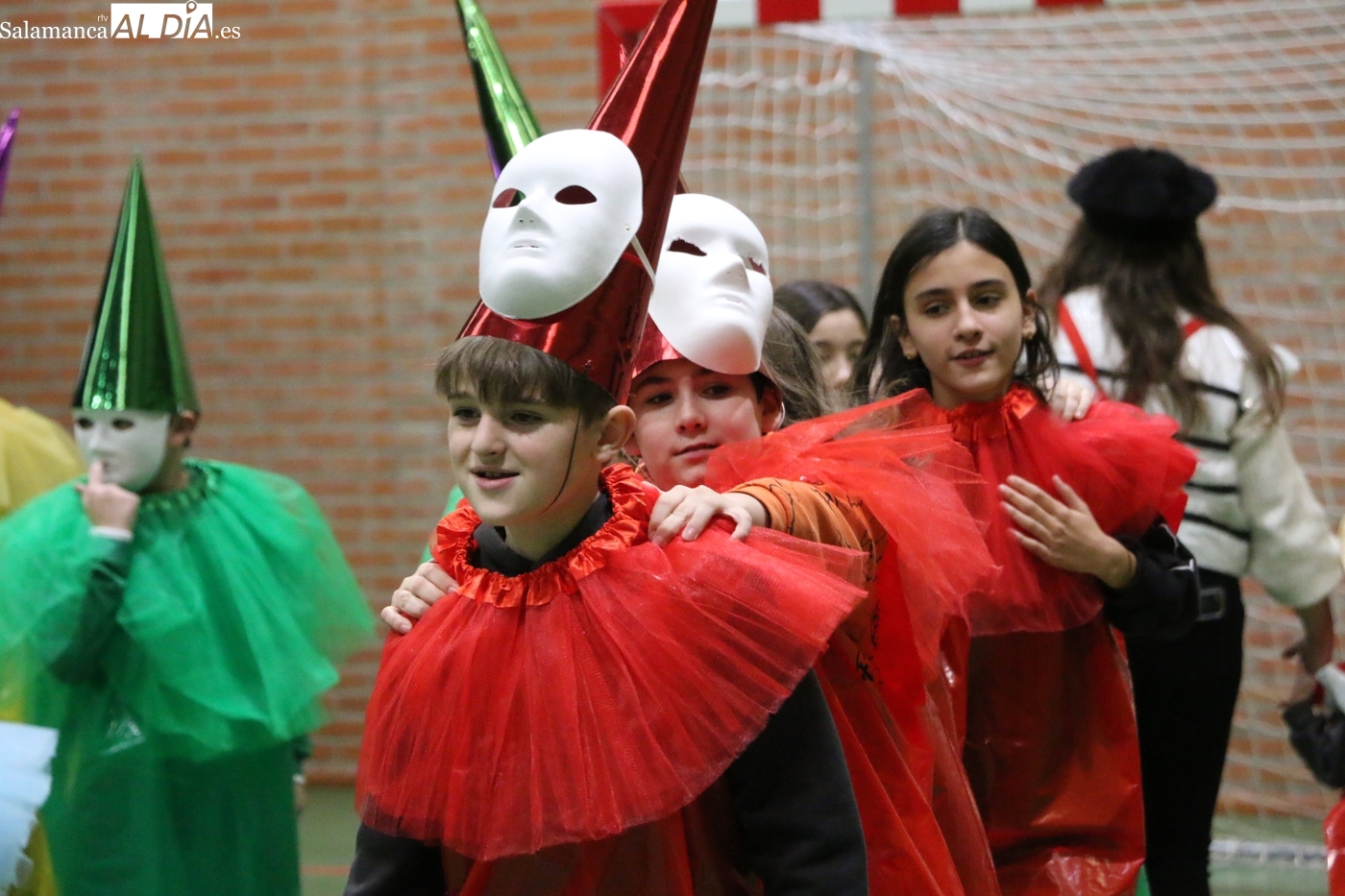 La inestabilidad meteorológica y la presencia de lluvia no han logrado empañar la celebración del Carnaval en Vitigudino. Aunque el agua ha impedido que el colorido desfile recorriera las calles de la localidad como es costumbre, la comunidad educativa del CEIP Manuel Moreno Blanco ha trasladado la fiesta al interior del pabellón polideportivo municipal. Allí, resguardados de las inclemencias, los escolares han podido lucir sus disfraces ante la atenta mirada de padres, madres, abuelos y abuelas que no han querido perderse el evento.