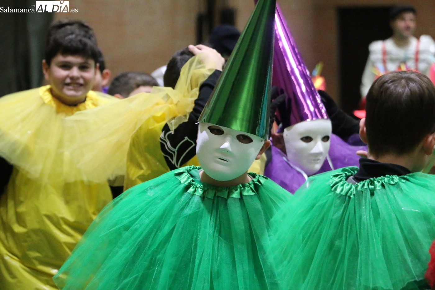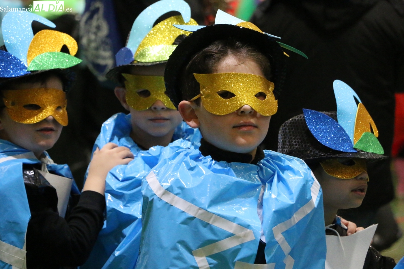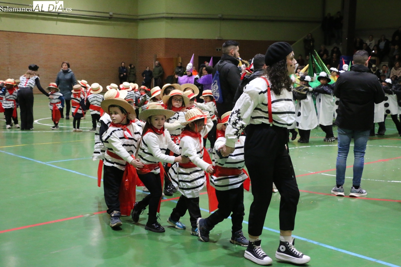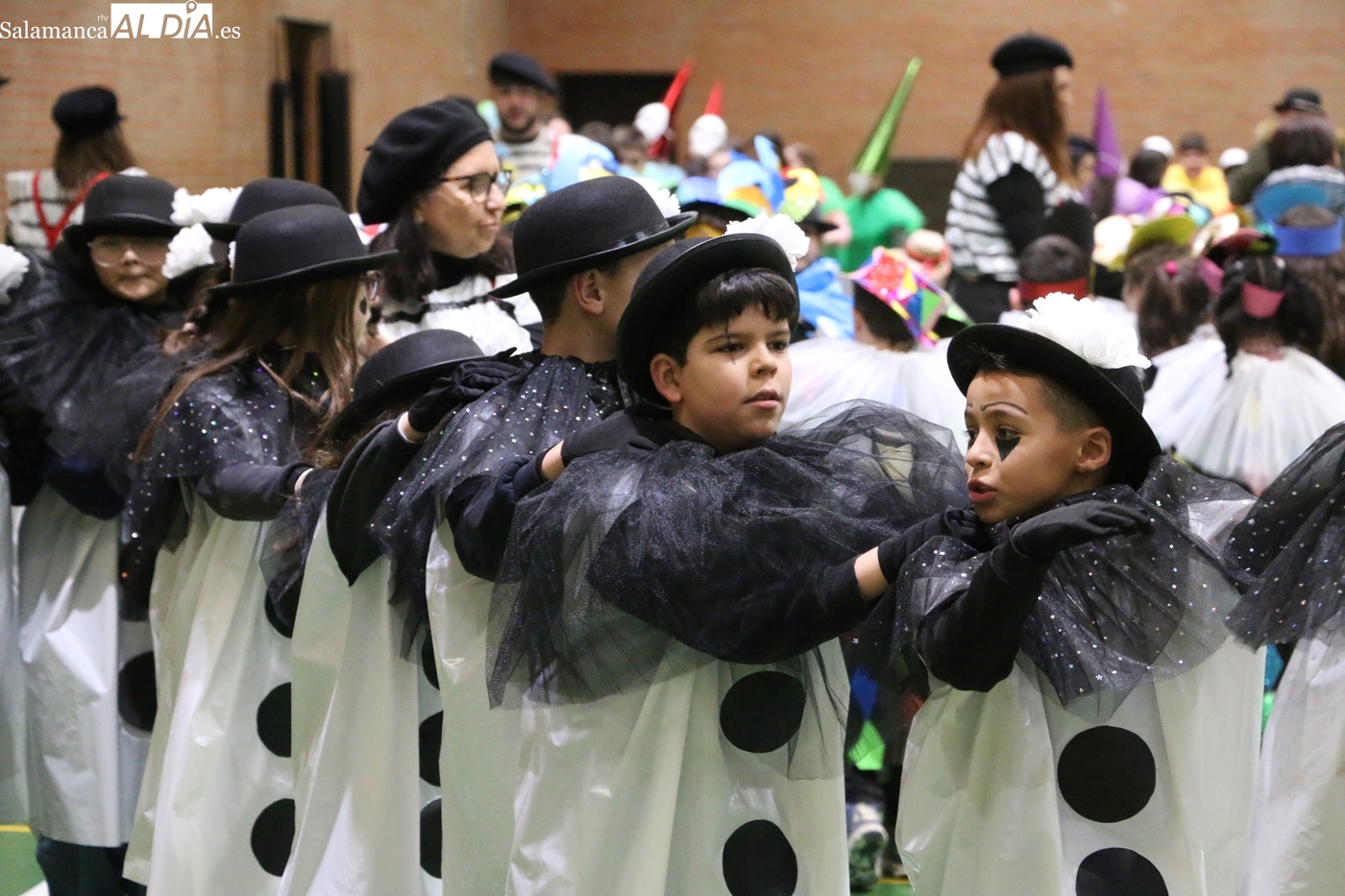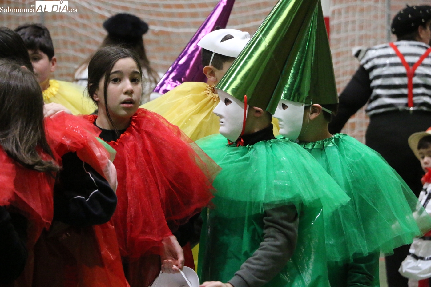 La inestabilidad meteorológica y la presencia de lluvia no han logrado empañar la celebración del Carnaval en Vitigudino. Aunque el agua ha impedido que el colorido desfile recorriera las calles de la localidad como es costumbre, la comunidad educativa del CEIP Manuel Moreno Blanco ha trasladado la fiesta al interior del pabellón polideportivo municipal. Allí, resguardados de las inclemencias, los escolares han podido lucir sus disfraces ante la atenta mirada de padres, madres, abuelos y abuelas que no han querido perderse el evento.