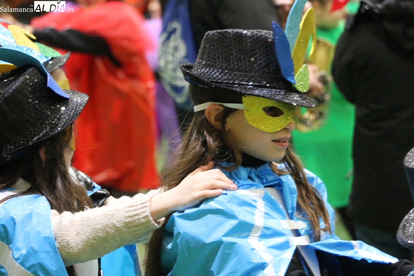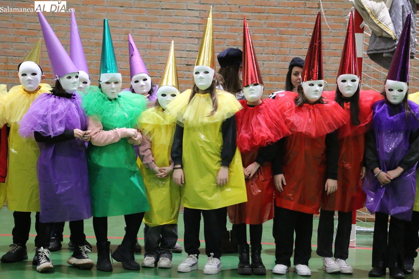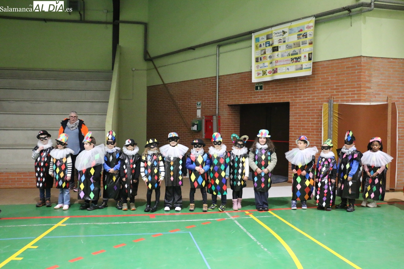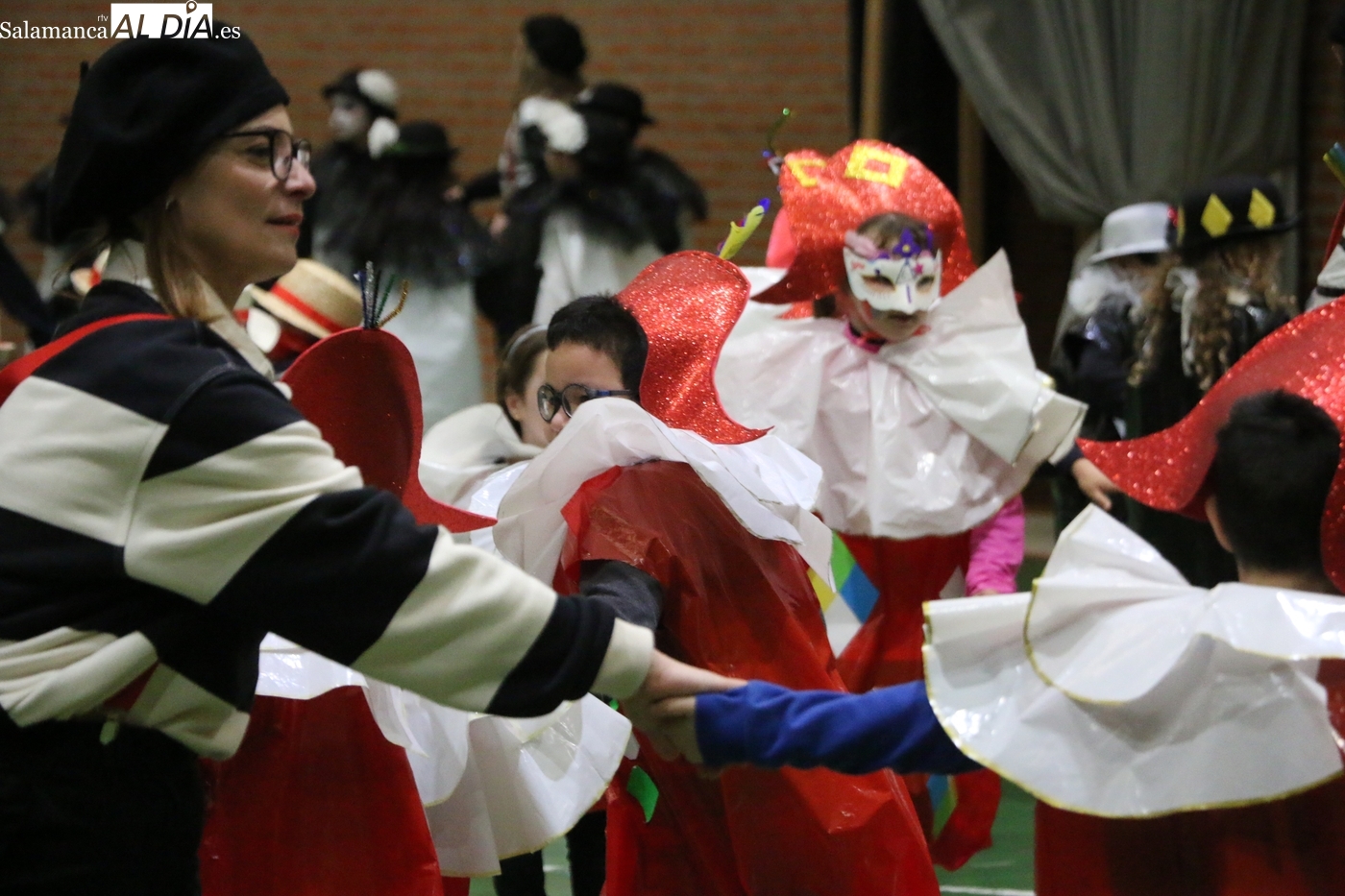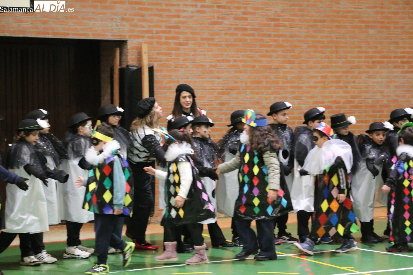 La inestabilidad meteorológica y la presencia de lluvia no han logrado empañar la celebración del Carnaval en Vitigudino. Aunque el agua ha impedido que el colorido desfile recorriera las calles de la localidad como es costumbre, la comunidad educativa del CEIP Manuel Moreno Blanco ha trasladado la fiesta al interior del pabellón polideportivo municipal. Allí, resguardados de las inclemencias, los escolares han podido lucir sus disfraces ante la atenta mirada de padres, madres, abuelos y abuelas que no han querido perderse el evento.