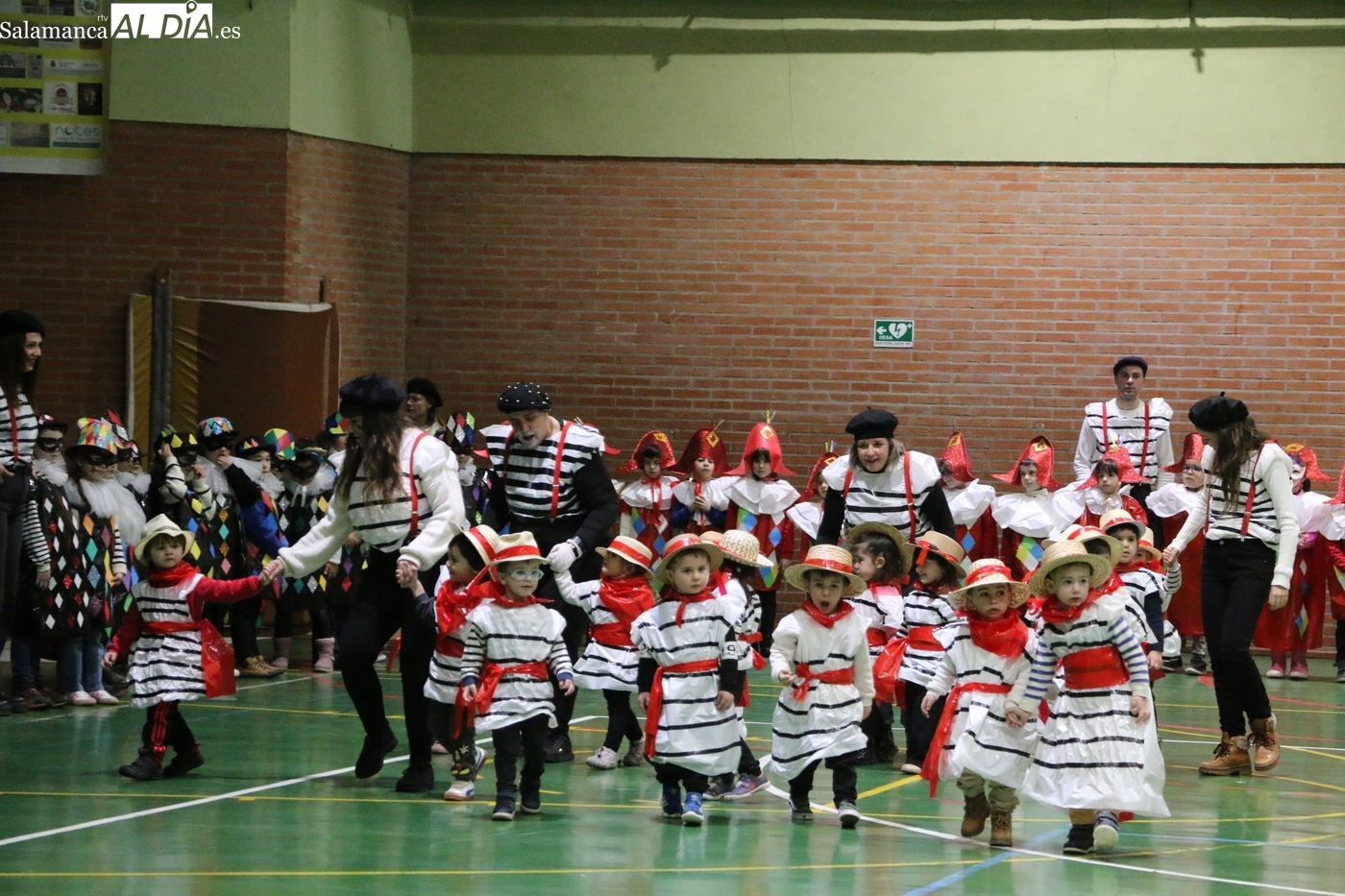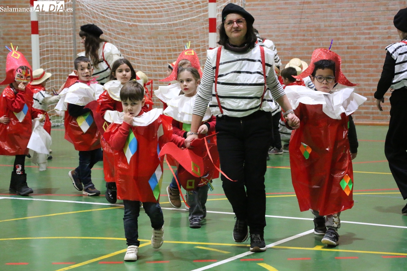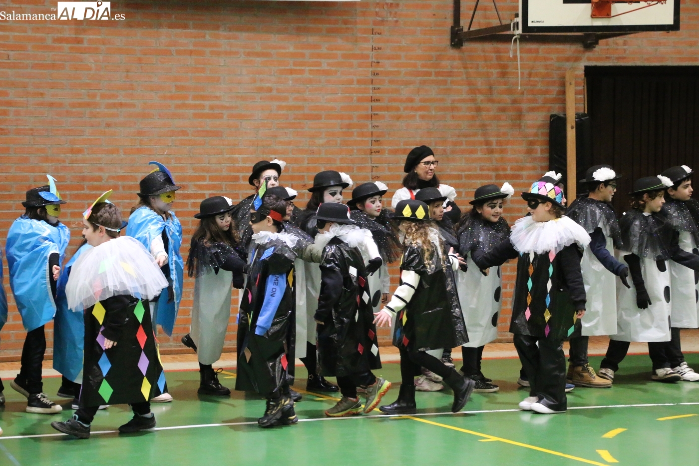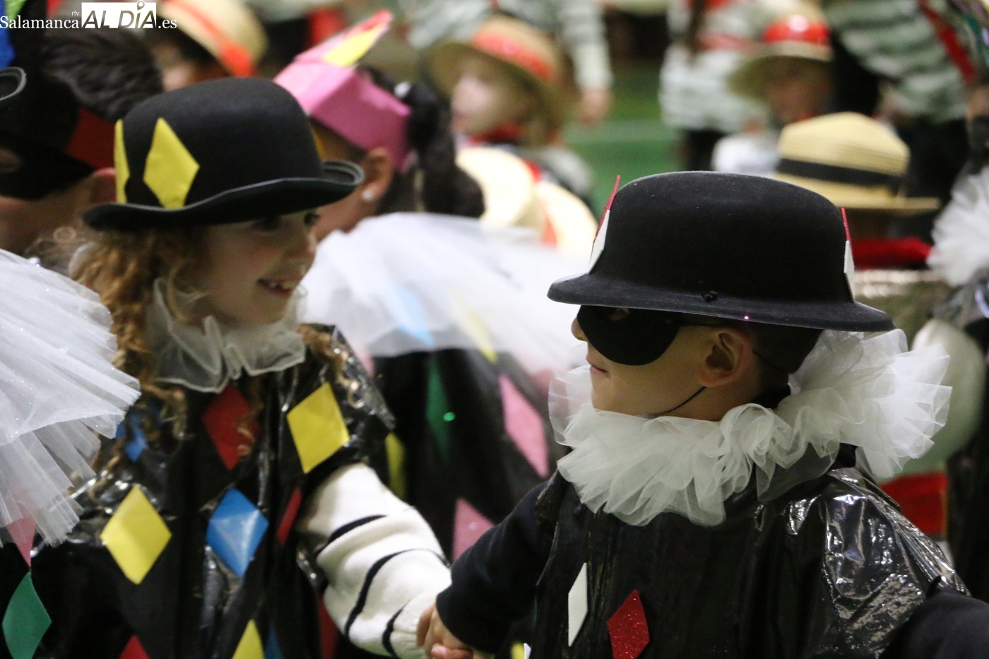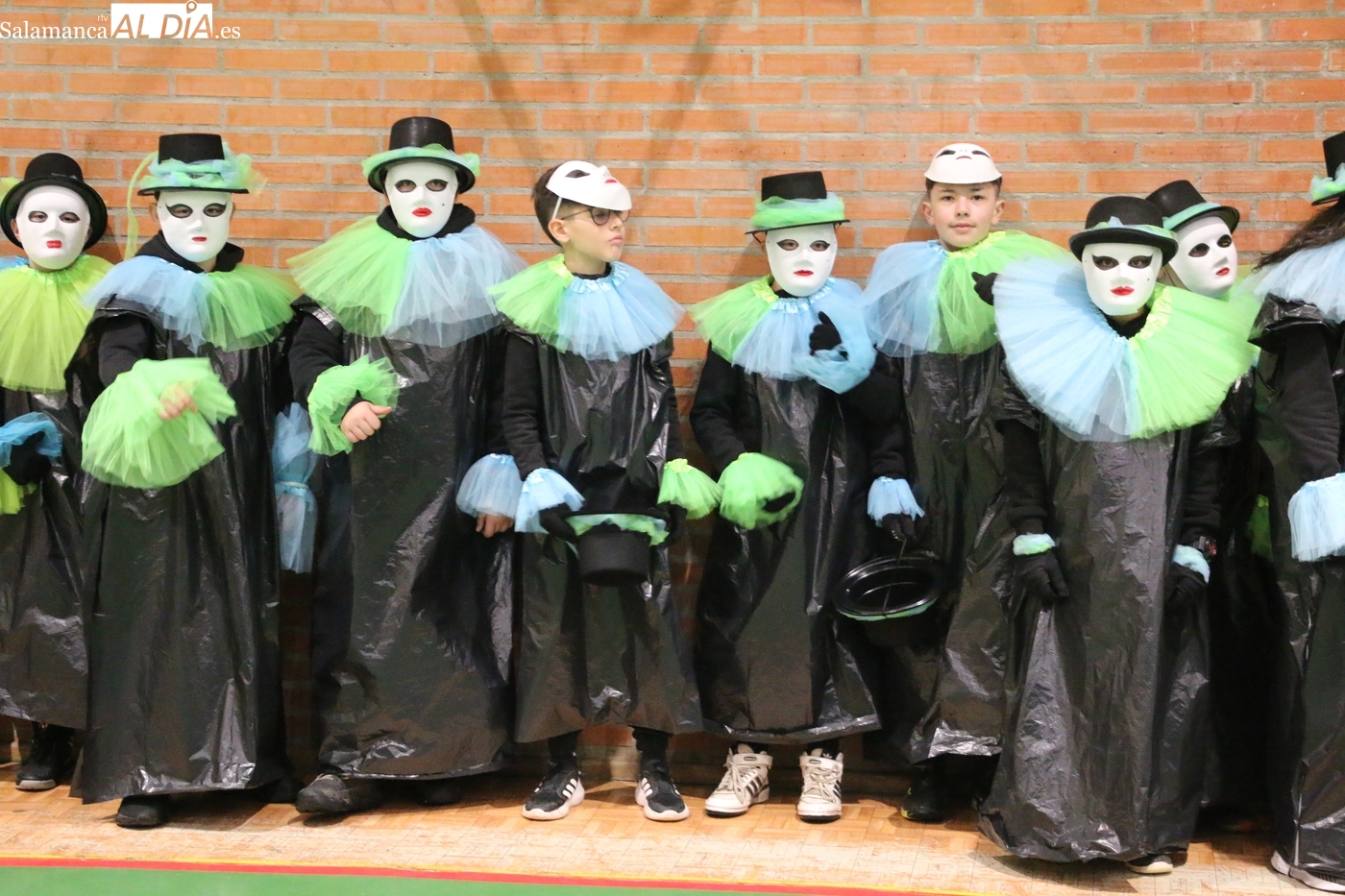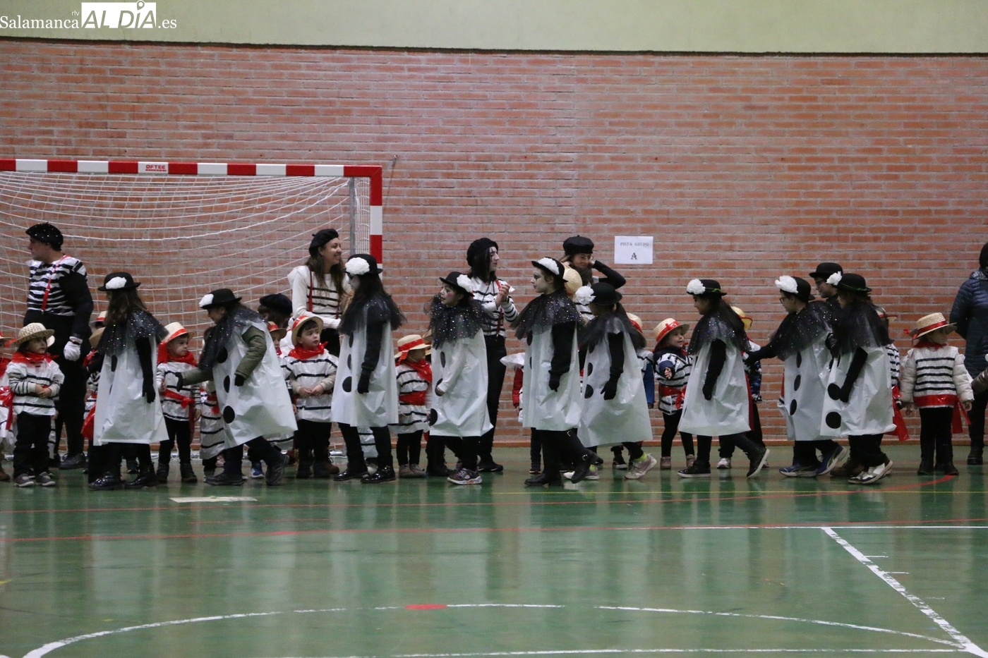 La inestabilidad meteorológica y la presencia de lluvia no han logrado empañar la celebración del Carnaval en Vitigudino. Aunque el agua ha impedido que el colorido desfile recorriera las calles de la localidad como es costumbre, la comunidad educativa del CEIP Manuel Moreno Blanco ha trasladado la fiesta al interior del pabellón polideportivo municipal. Allí, resguardados de las inclemencias, los escolares han podido lucir sus disfraces ante la atenta mirada de padres, madres, abuelos y abuelas que no han querido perderse el evento.