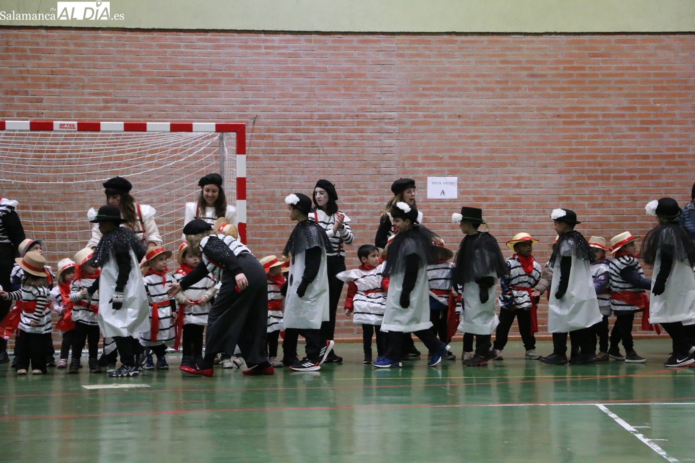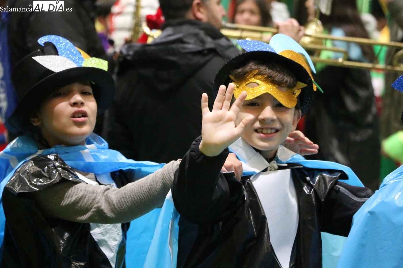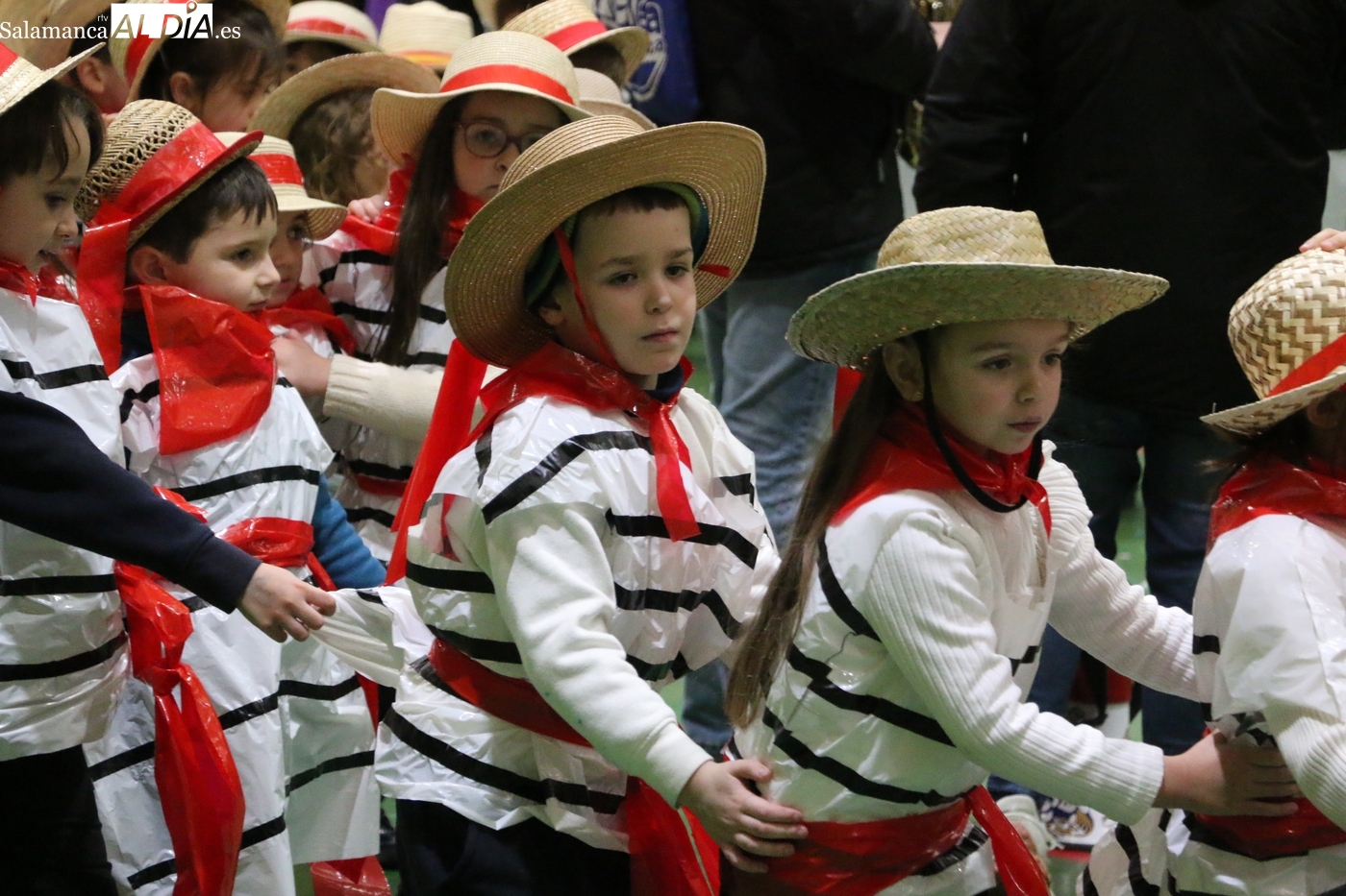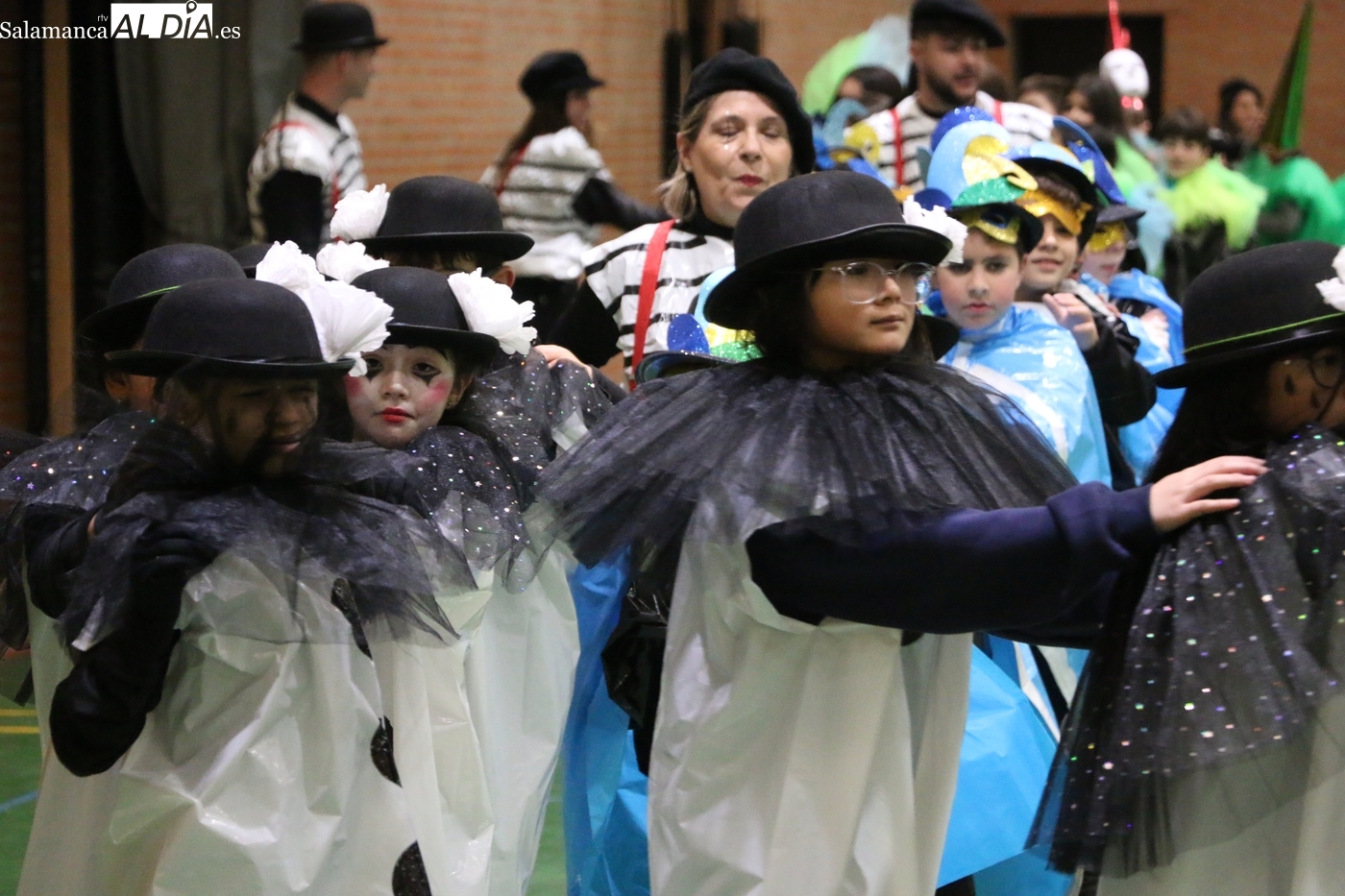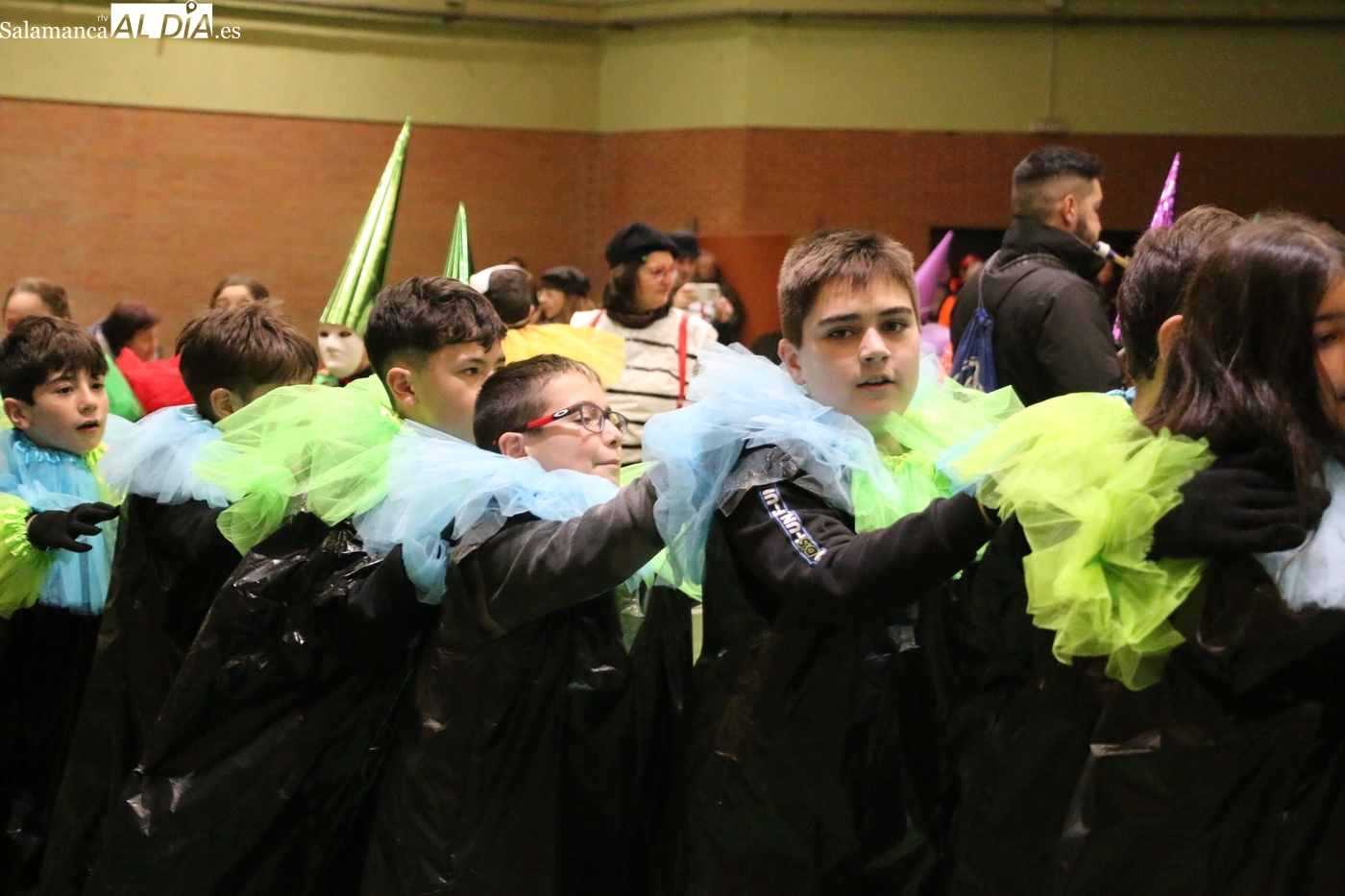 La inestabilidad meteorológica y la presencia de lluvia no han logrado empañar la celebración del Carnaval en Vitigudino. Aunque el agua ha impedido que el colorido desfile recorriera las calles de la localidad como es costumbre, la comunidad educativa del CEIP Manuel Moreno Blanco ha trasladado la fiesta al interior del pabellón polideportivo municipal. Allí, resguardados de las inclemencias, los escolares han podido lucir sus disfraces ante la atenta mirada de padres, madres, abuelos y abuelas que no han querido perderse el evento.