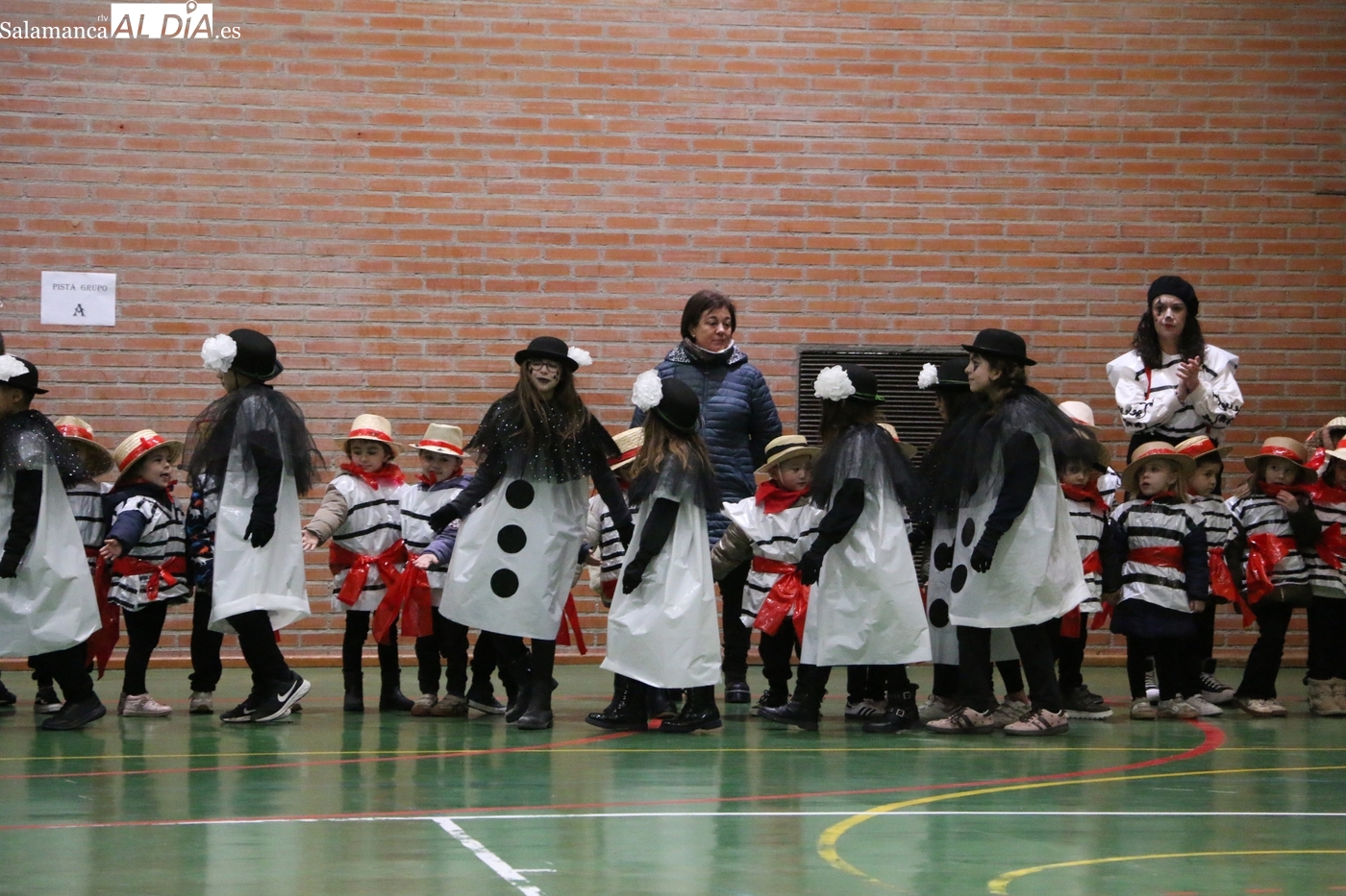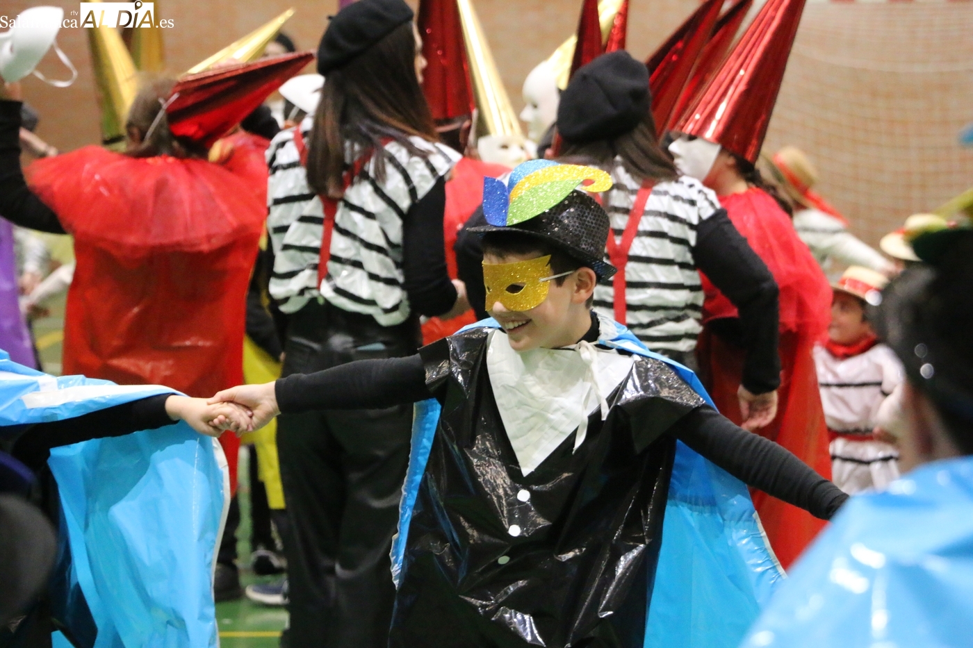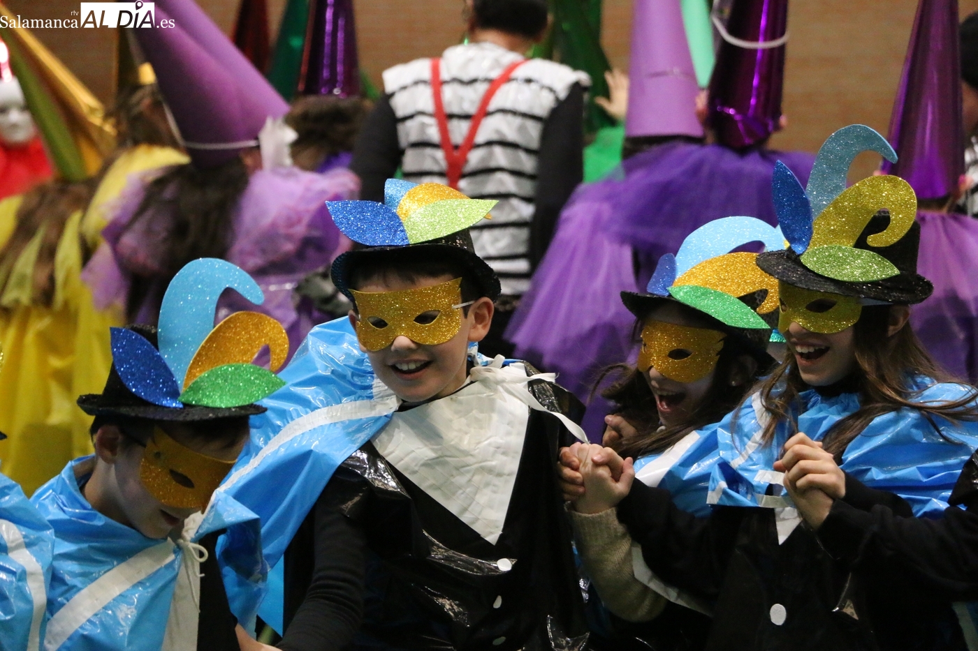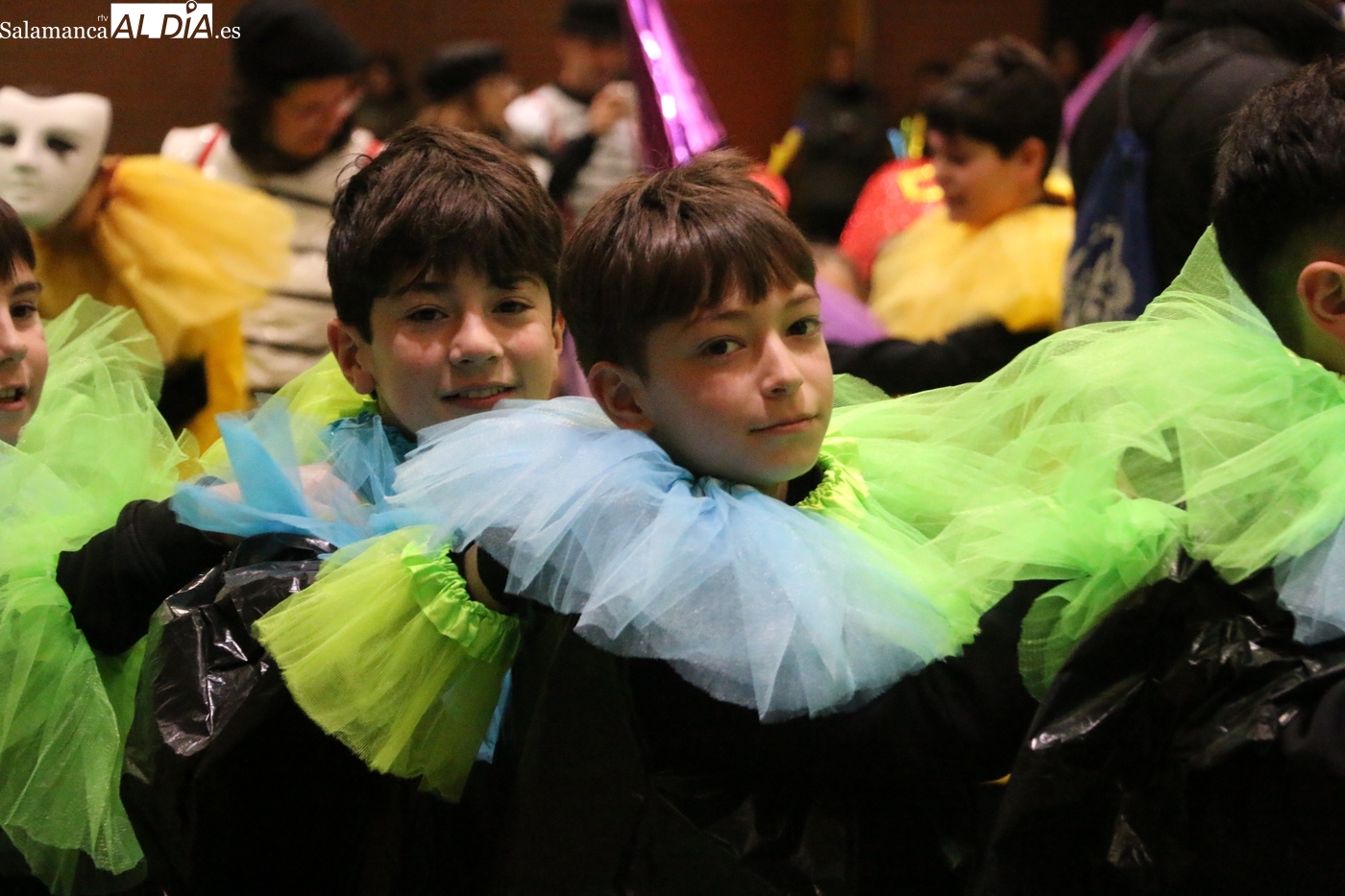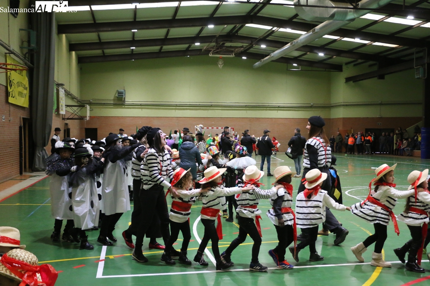 La inestabilidad meteorológica y la presencia de lluvia no han logrado empañar la celebración del Carnaval en Vitigudino. Aunque el agua ha impedido que el colorido desfile recorriera las calles de la localidad como es costumbre, la comunidad educativa del CEIP Manuel Moreno Blanco ha trasladado la fiesta al interior del pabellón polideportivo municipal. Allí, resguardados de las inclemencias, los escolares han podido lucir sus disfraces ante la atenta mirada de padres, madres, abuelos y abuelas que no han querido perderse el evento.