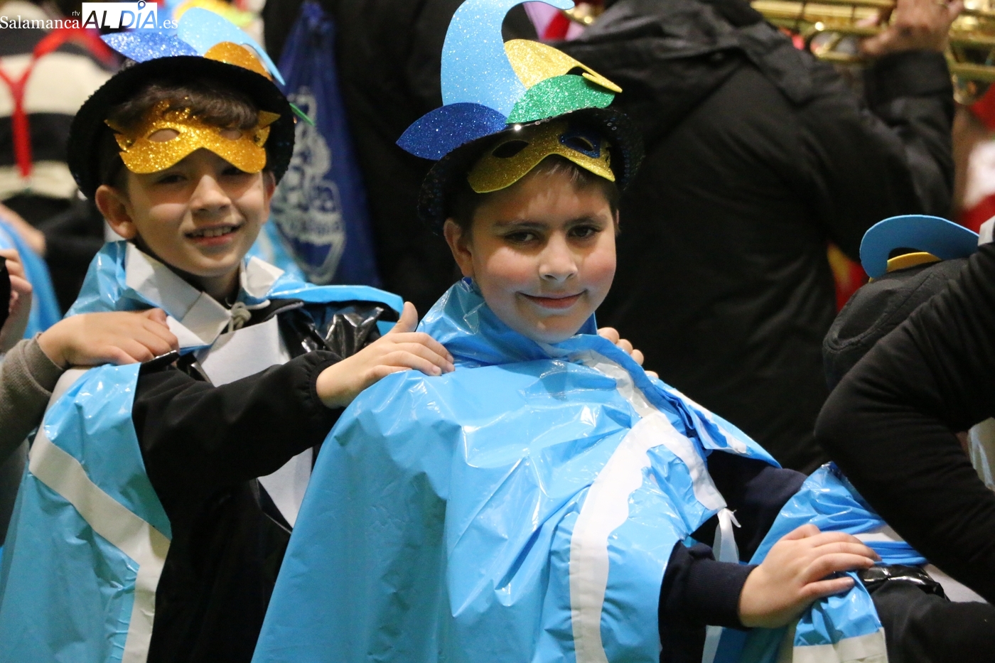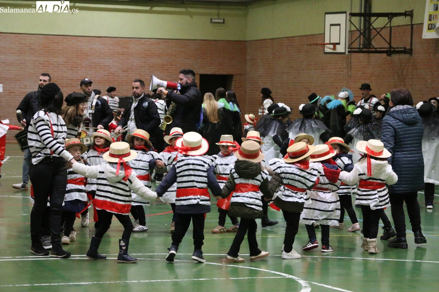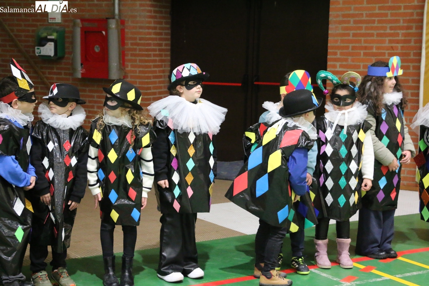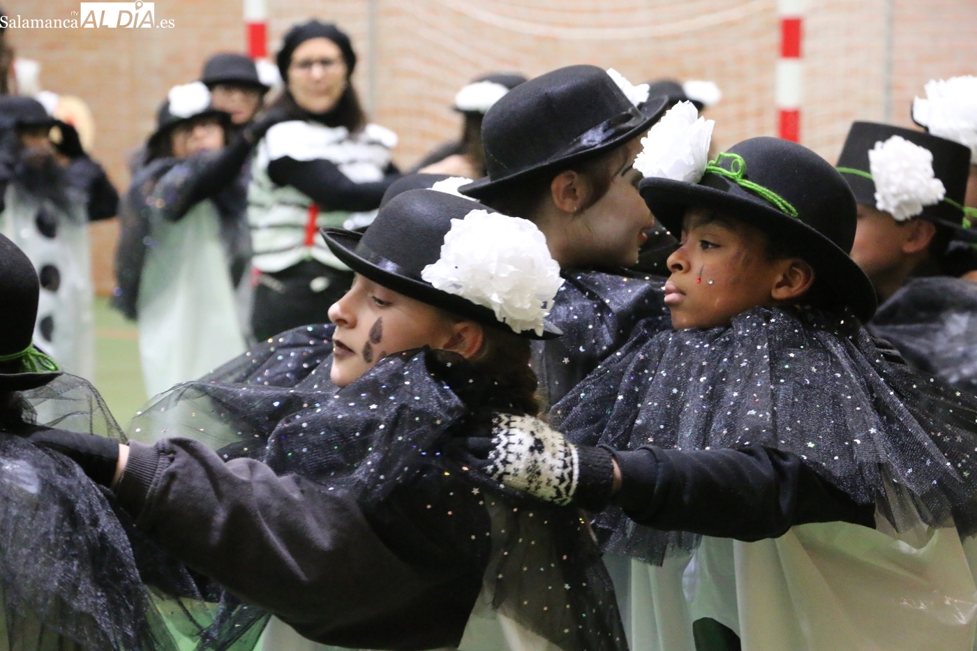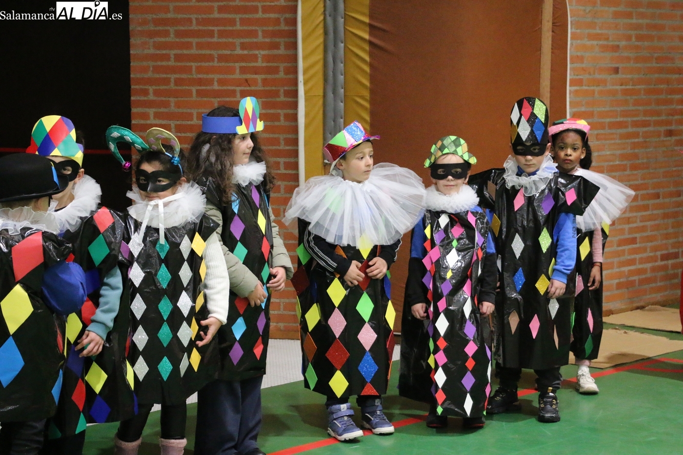 La inestabilidad meteorológica y la presencia de lluvia no han logrado empañar la celebración del Carnaval en Vitigudino. Aunque el agua ha impedido que el colorido desfile recorriera las calles de la localidad como es costumbre, la comunidad educativa del CEIP Manuel Moreno Blanco ha trasladado la fiesta al interior del pabellón polideportivo municipal. Allí, resguardados de las inclemencias, los escolares han podido lucir sus disfraces ante la atenta mirada de padres, madres, abuelos y abuelas que no han querido perderse el evento.