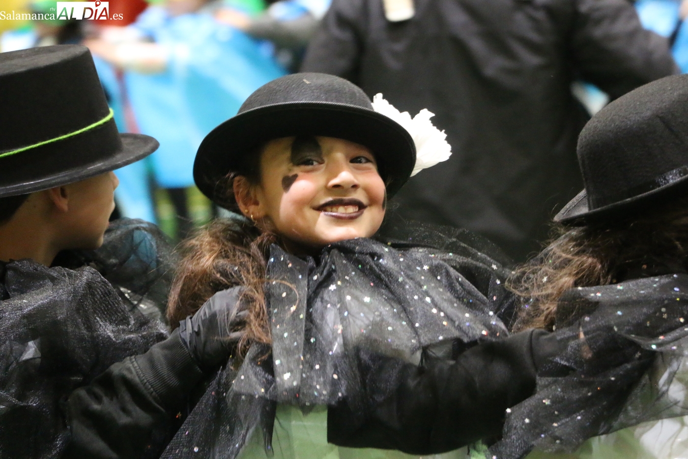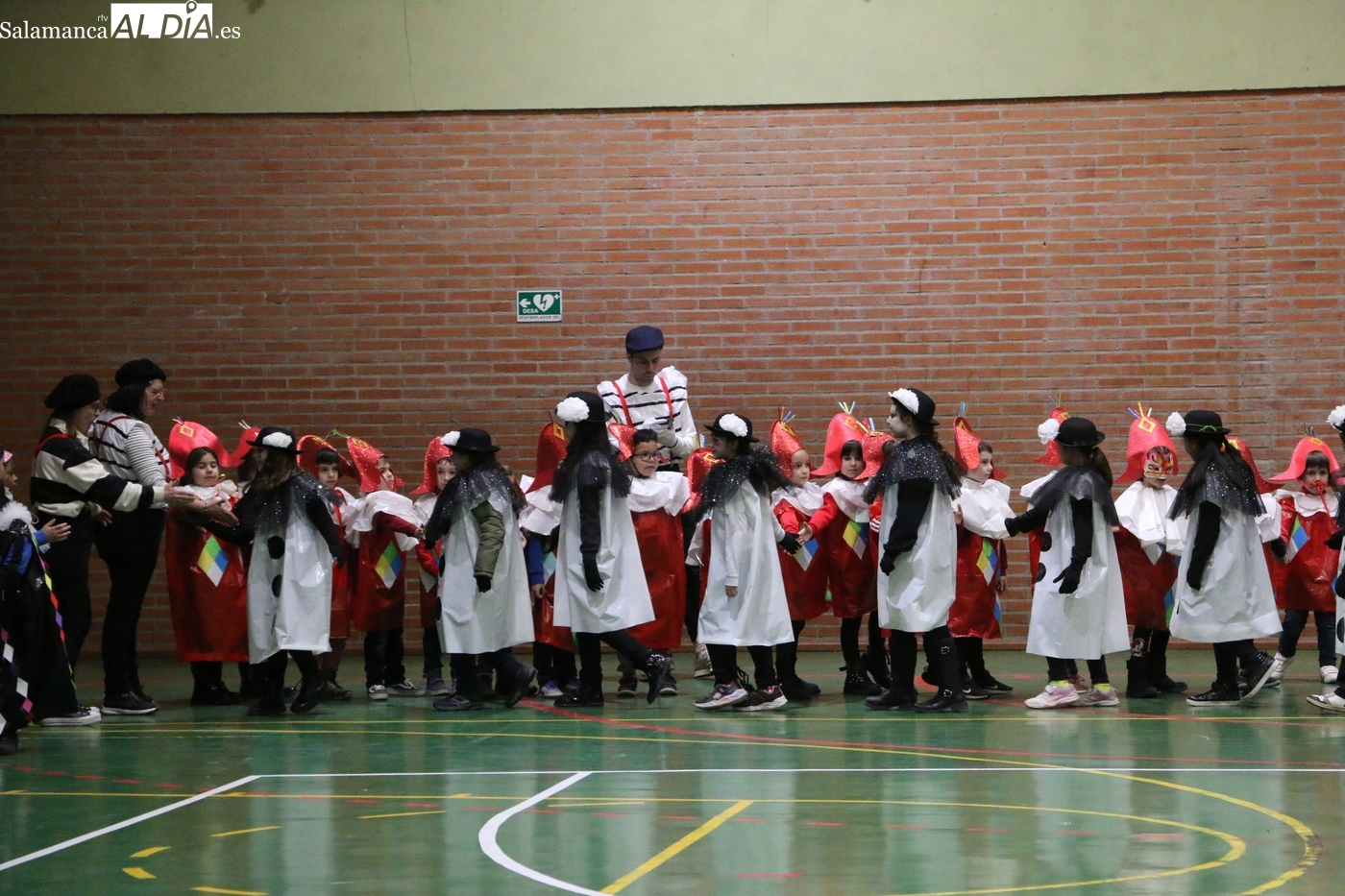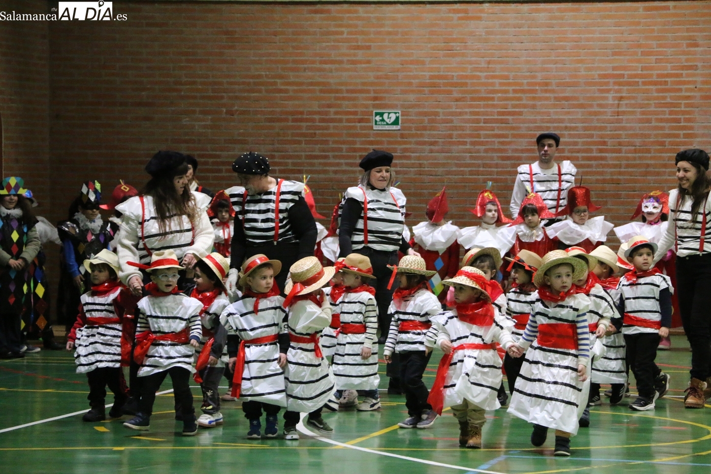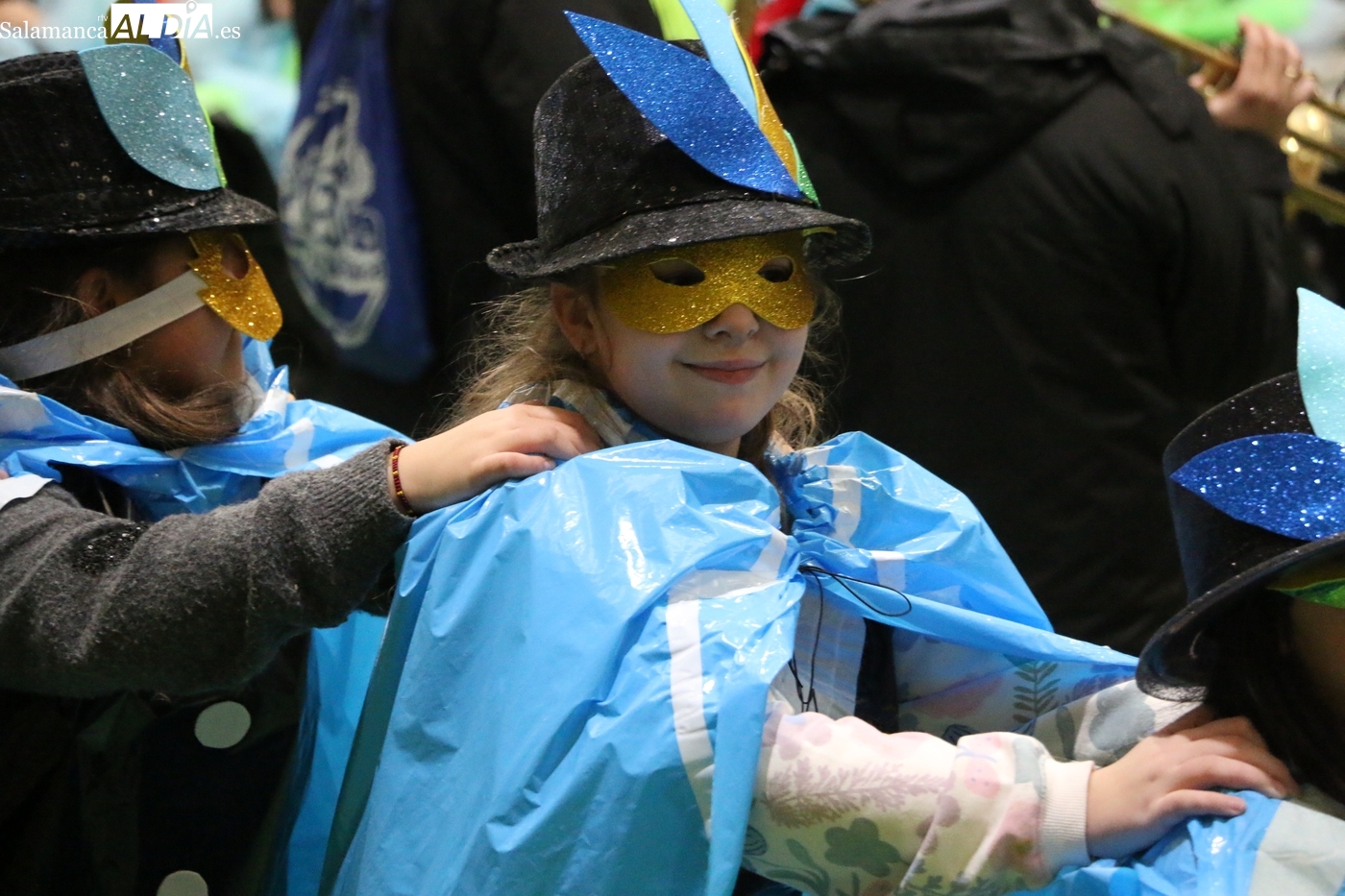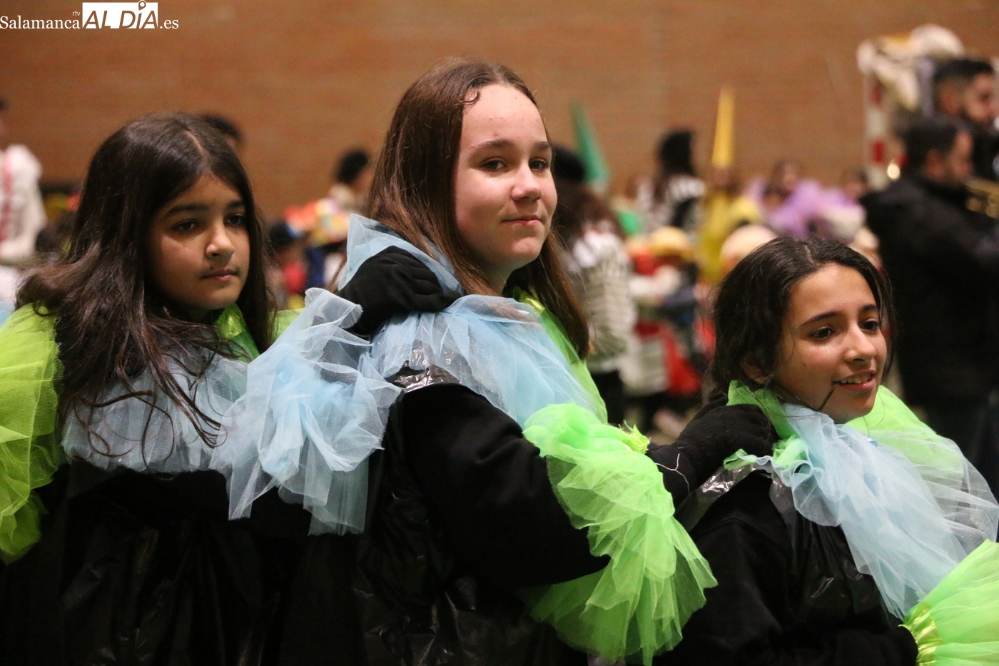 La inestabilidad meteorológica y la presencia de lluvia no han logrado empañar la celebración del Carnaval en Vitigudino. Aunque el agua ha impedido que el colorido desfile recorriera las calles de la localidad como es costumbre, la comunidad educativa del CEIP Manuel Moreno Blanco ha trasladado la fiesta al interior del pabellón polideportivo municipal. Allí, resguardados de las inclemencias, los escolares han podido lucir sus disfraces ante la atenta mirada de padres, madres, abuelos y abuelas que no han querido perderse el evento.
