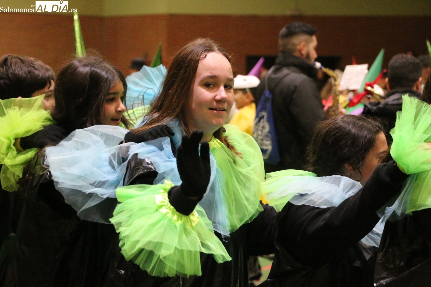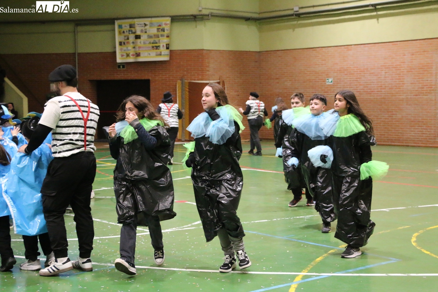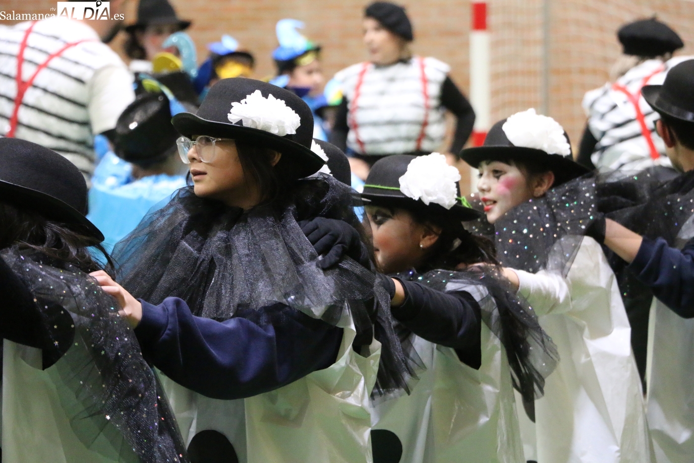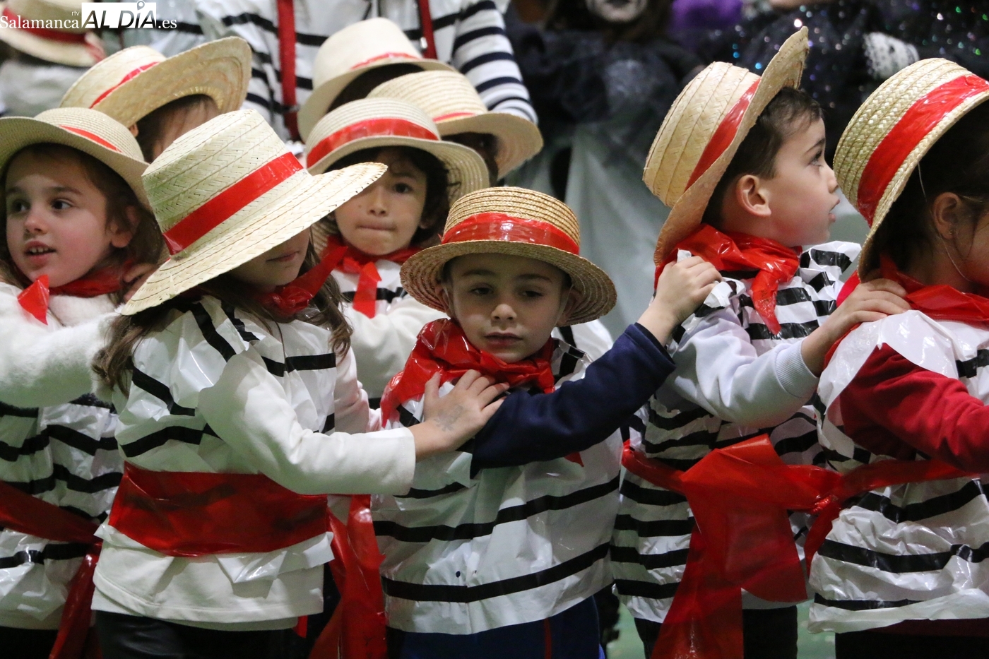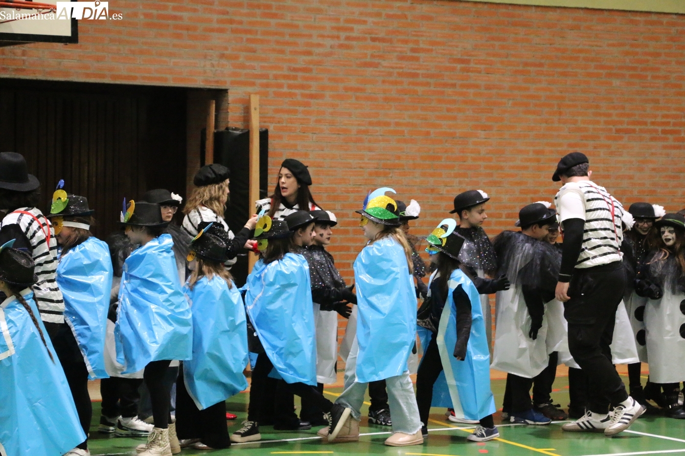 La inestabilidad meteorológica y la presencia de lluvia no han logrado empañar la celebración del Carnaval en Vitigudino. Aunque el agua ha impedido que el colorido desfile recorriera las calles de la localidad como es costumbre, la comunidad educativa del CEIP Manuel Moreno Blanco ha trasladado la fiesta al interior del pabellón polideportivo municipal. Allí, resguardados de las inclemencias, los escolares han podido lucir sus disfraces ante la atenta mirada de padres, madres, abuelos y abuelas que no han querido perderse el evento.