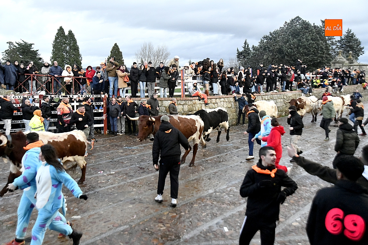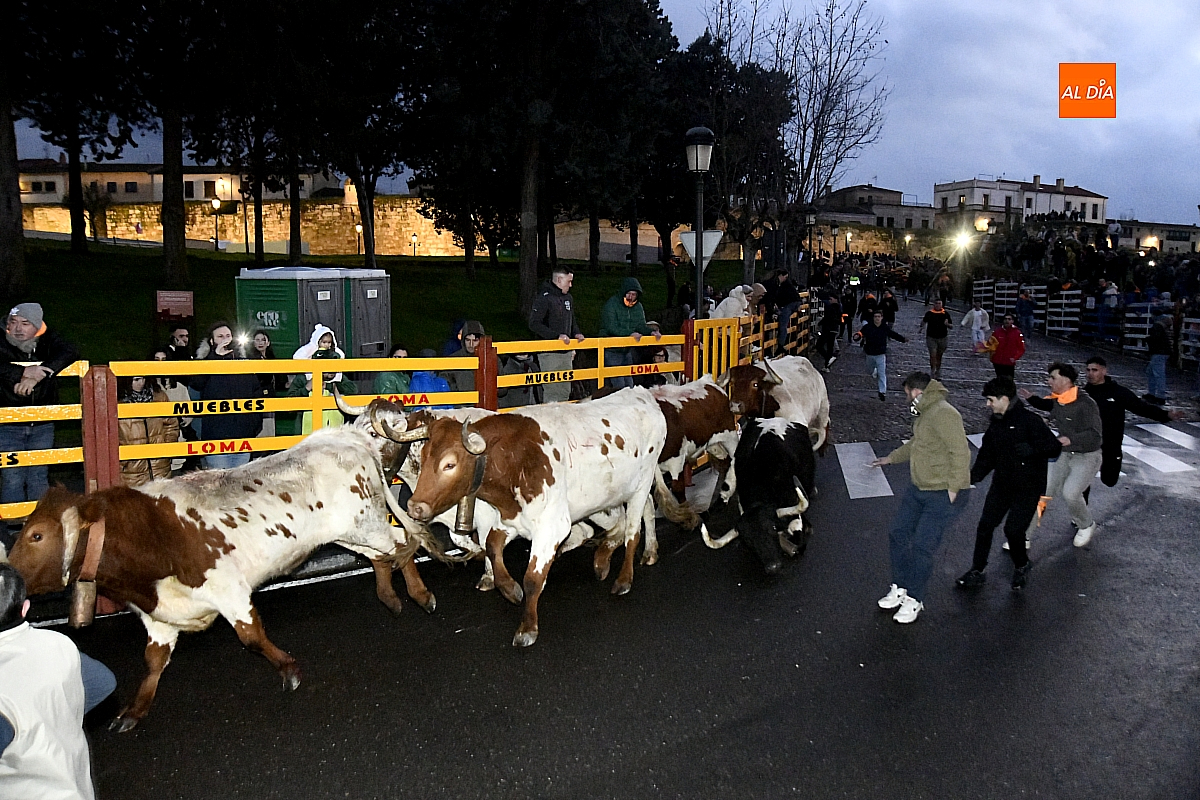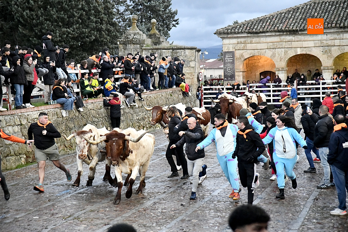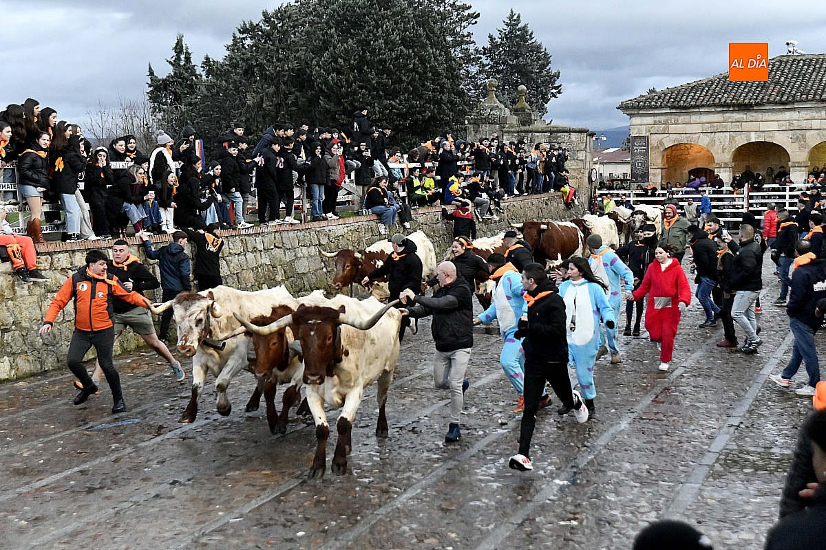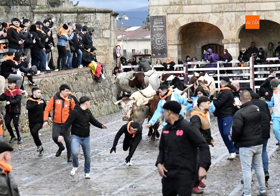 Tras el estallido festivo del Campanazo, el Carnaval del Toro ha continuado su programación con la celebración del primer encierro de bueyes. El festejo se ha caracterizado por la rapidez de la manada y la ausencia de incidentes, completando el trayecto de forma limpia y ordenada en el que se han animado varias féminas disfrazadas a correr delante de los bueyes.