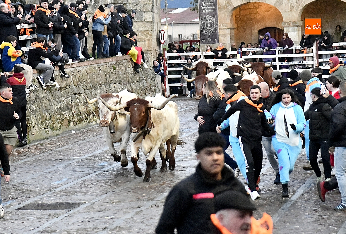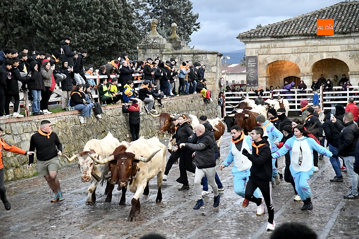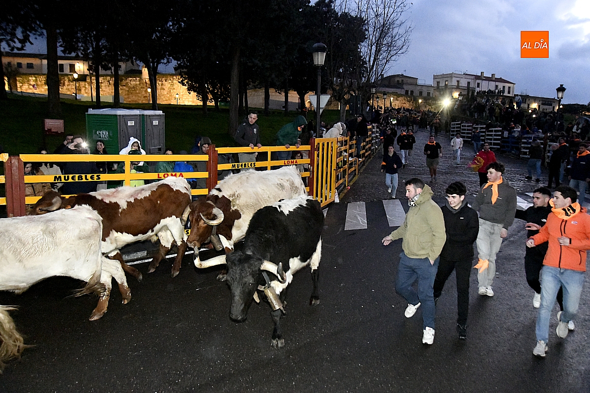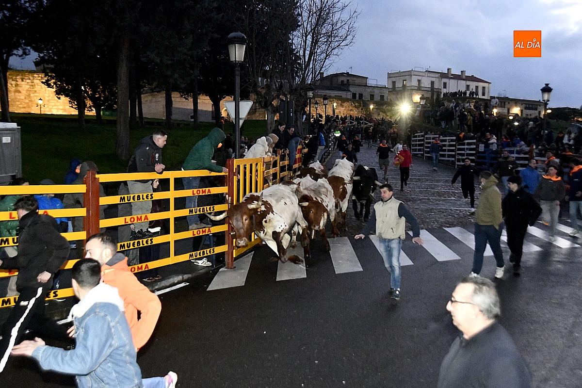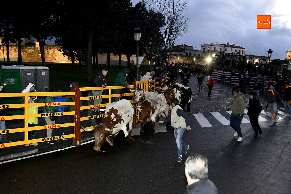 Tras el estallido festivo del Campanazo, el Carnaval del Toro ha continuado su programación con la celebración del primer encierro de bueyes. El festejo se ha caracterizado por la rapidez de la manada y la ausencia de incidentes, completando el trayecto de forma limpia y ordenada en el que se han animado varias féminas disfrazadas a correr delante de los bueyes.