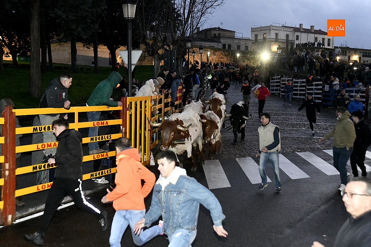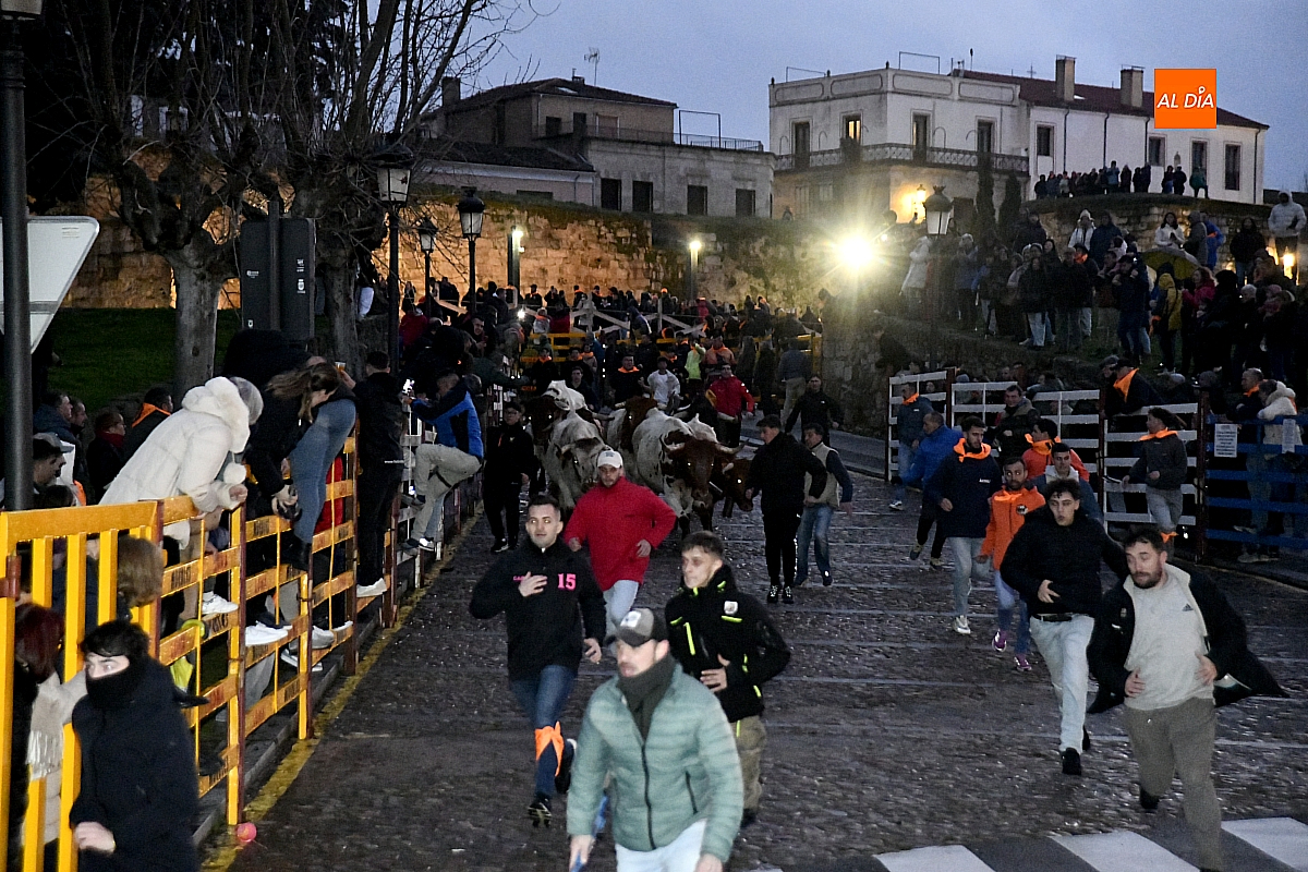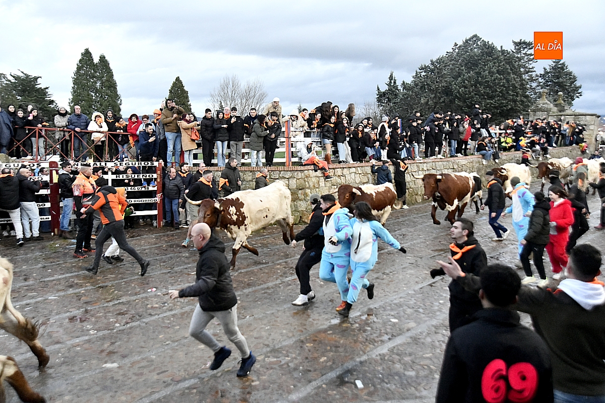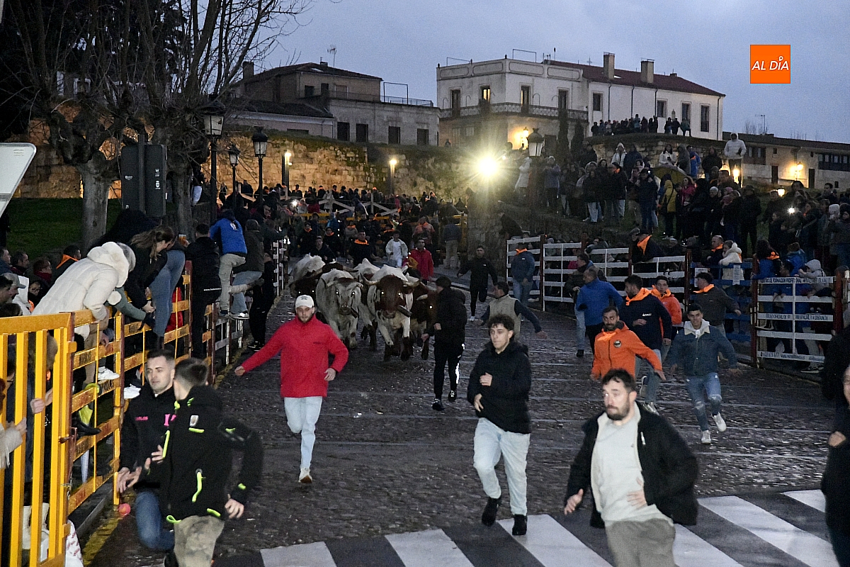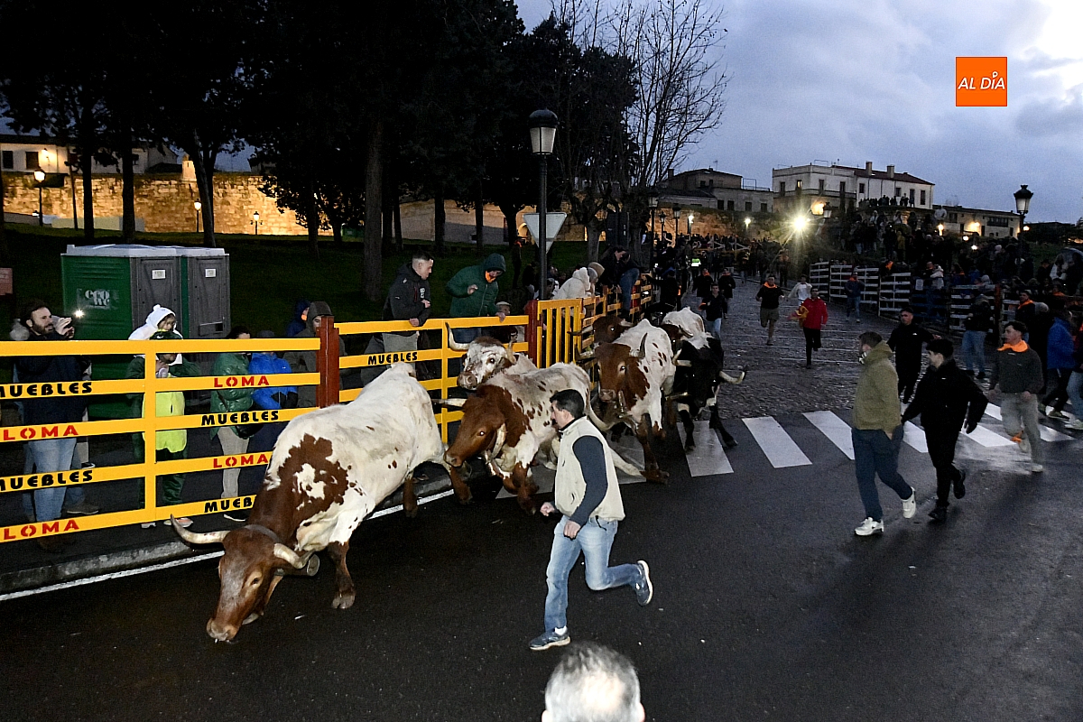 Tras el estallido festivo del Campanazo, el Carnaval del Toro ha continuado su programación con la celebración del primer encierro de bueyes. El festejo se ha caracterizado por la rapidez de la manada y la ausencia de incidentes, completando el trayecto de forma limpia y ordenada en el que se han animado varias féminas disfrazadas a correr delante de los bueyes.