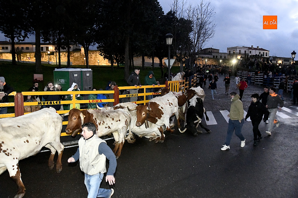 La respuesta de los mirobrigenses y visitantes ha sido masiva. El público ha aguantado las bajas temperaturas y ha llenado por completo el recorrido, abarrotando las agujas y los puntos clave del trayecto para presenciar el paso de los bueyes, que han cumplido su cometido con celeridad y sin consecuencias que lamentar.