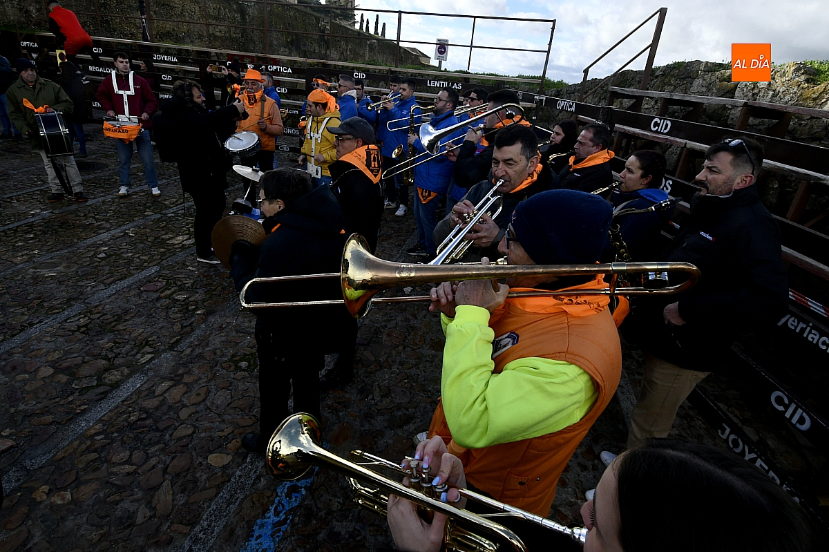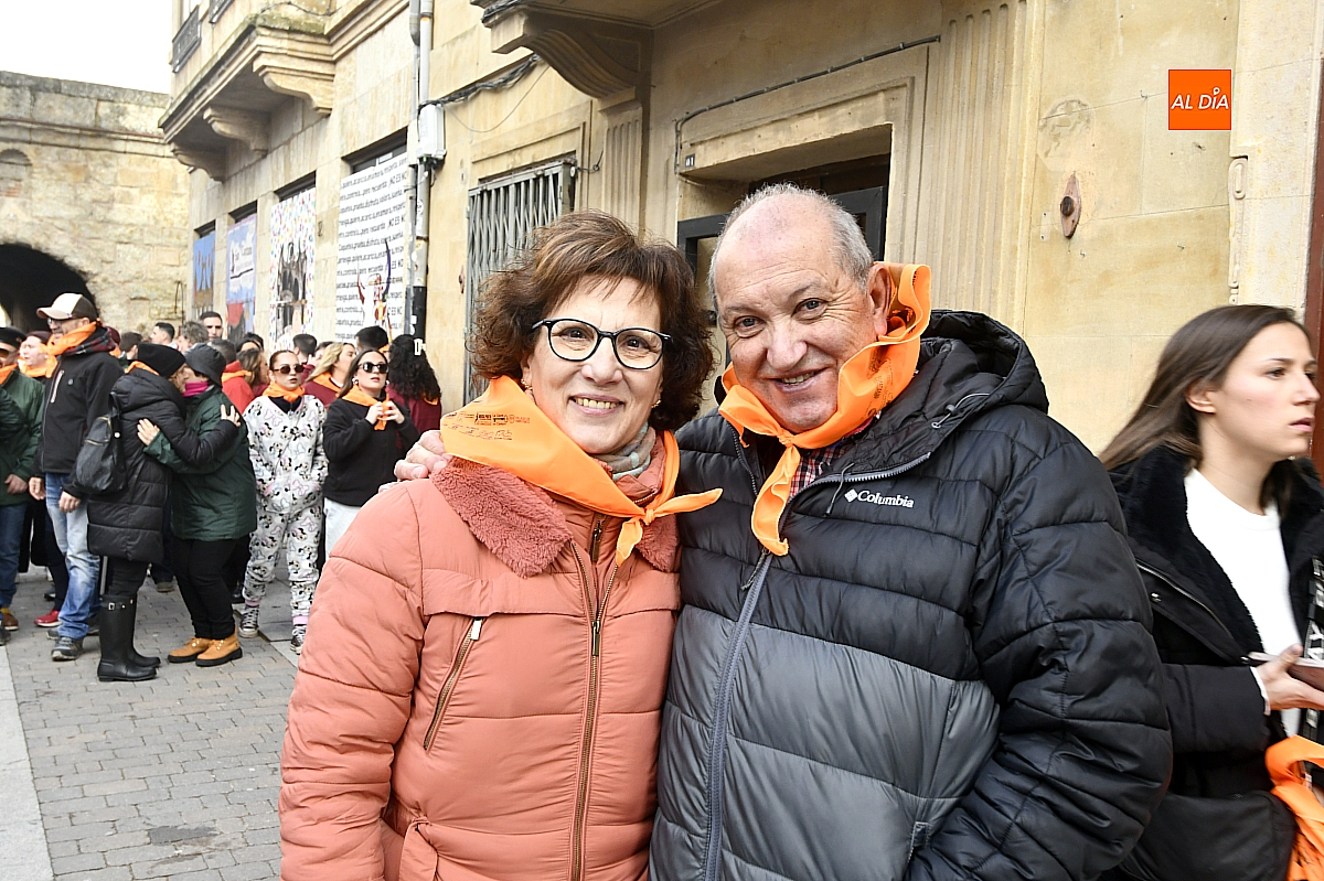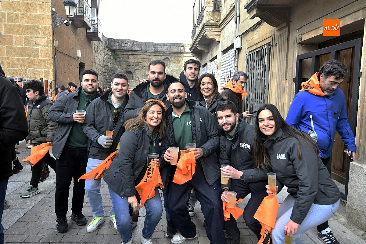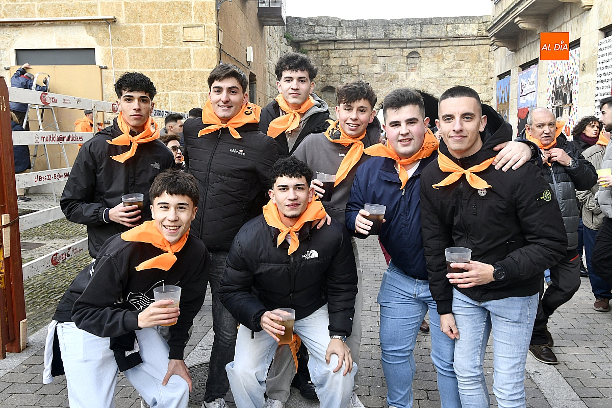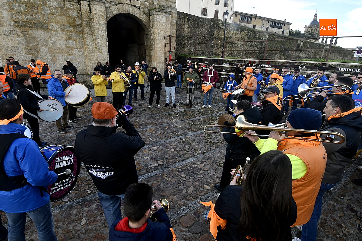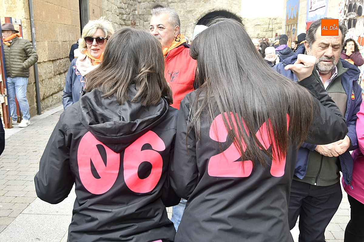 Miles de mirobrigenses y forasteros se concentraban en el registro a las cinco de la tarde para recoger su panuelo naranja, peñas, familas y amigos continauron la marcha hasta la Plaza Mayor llenándola de color naranja y dándose calor en la fría tarde de invierno, aguantando la lluvia y el viento que tampoco quería perderse la fiesta.