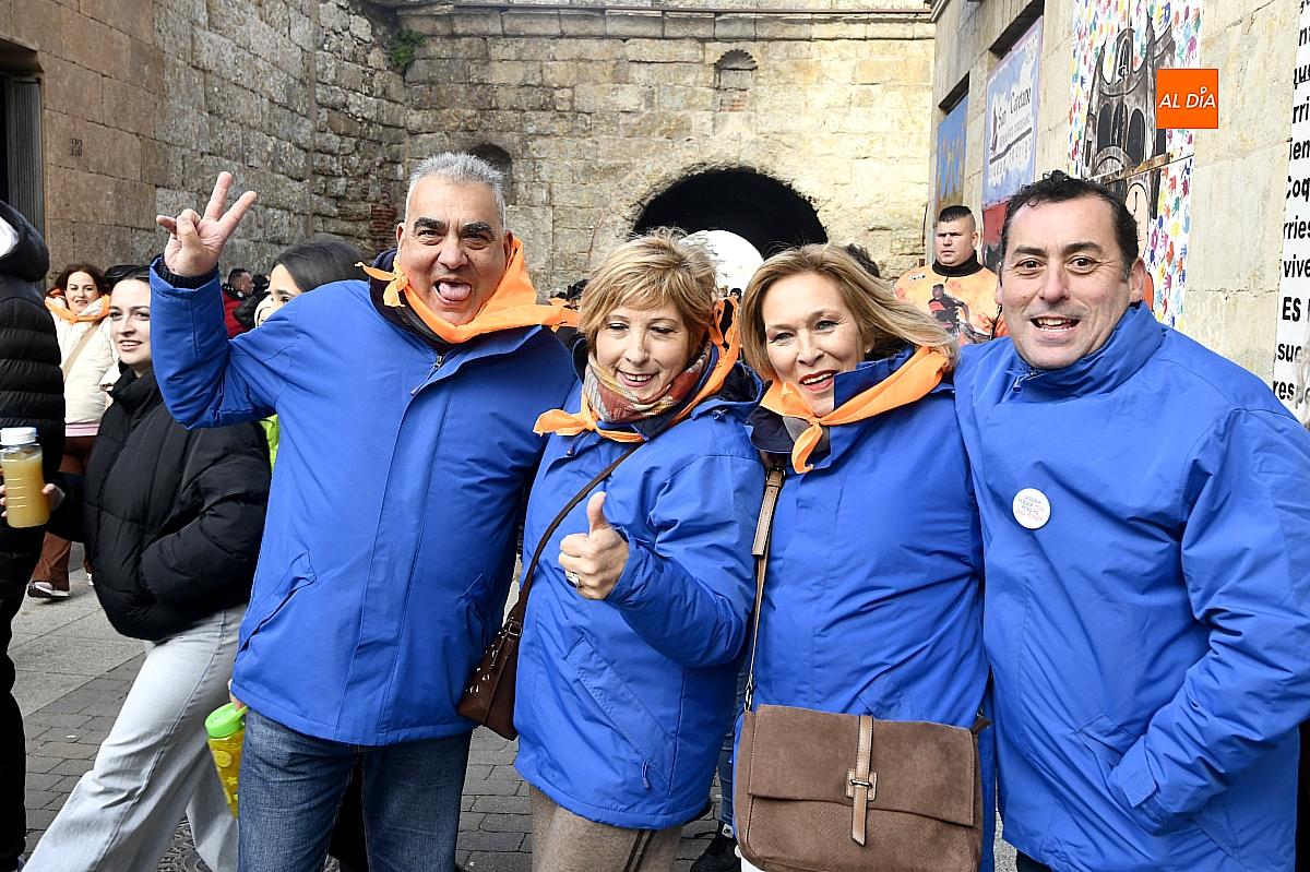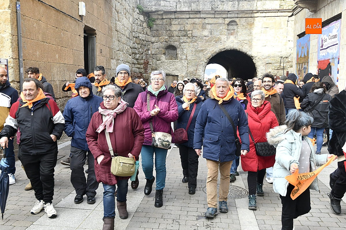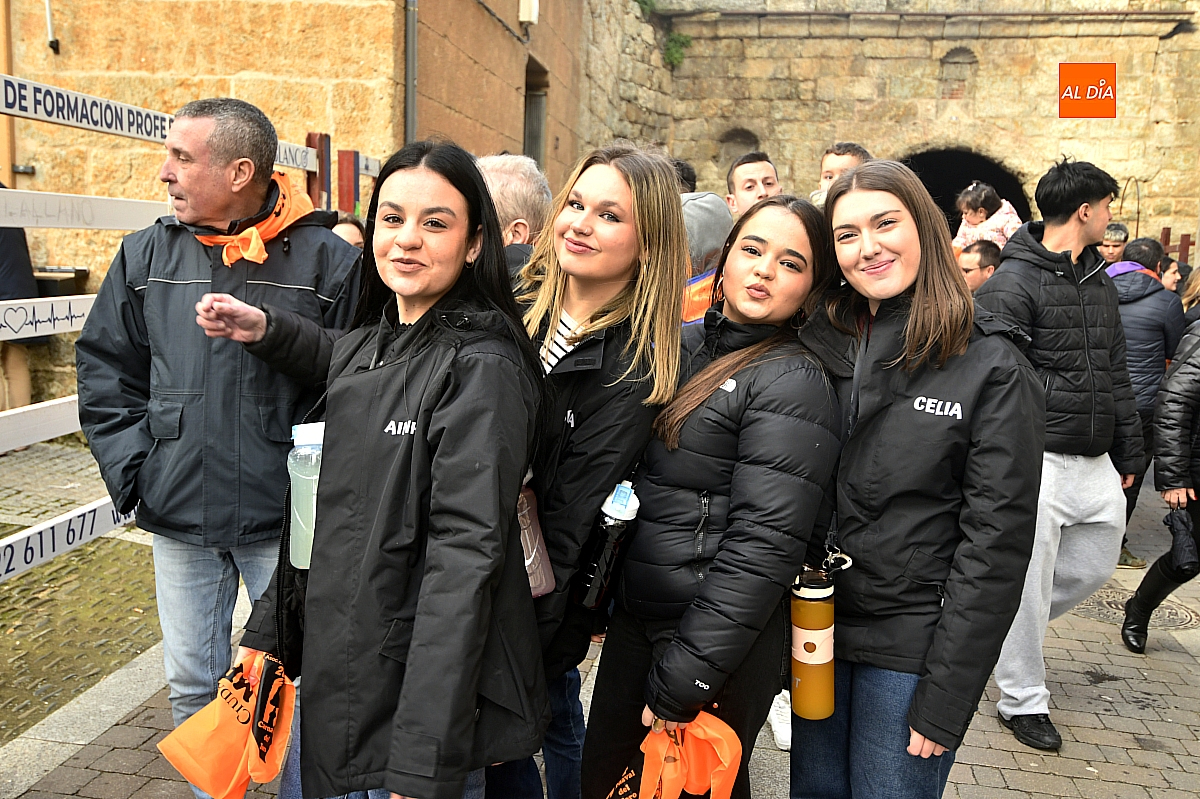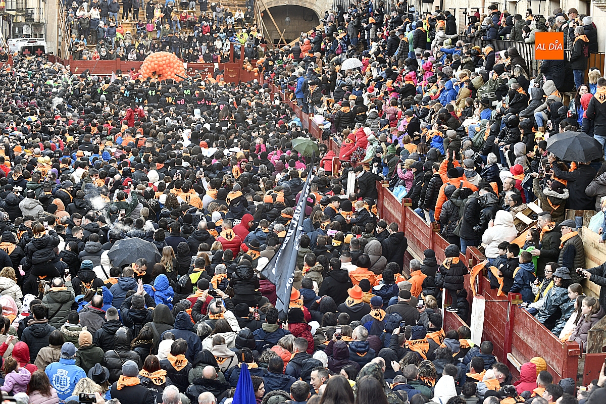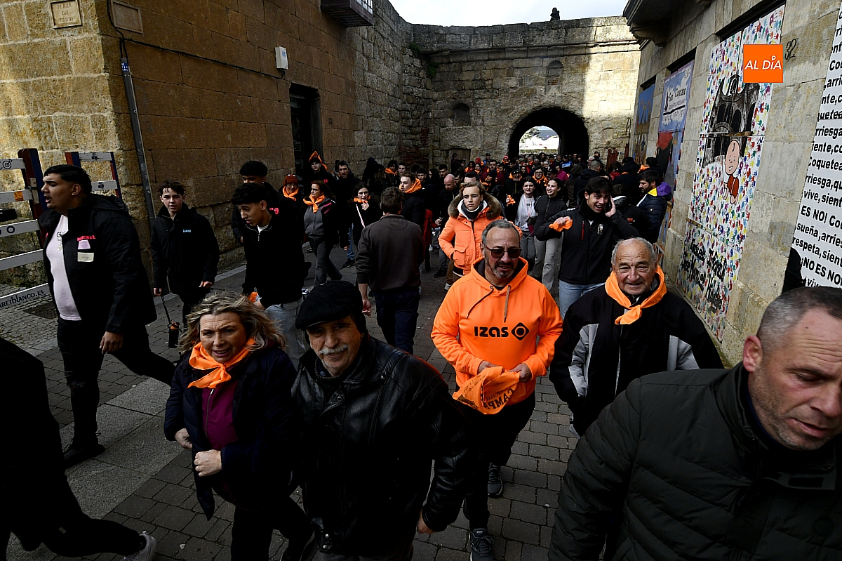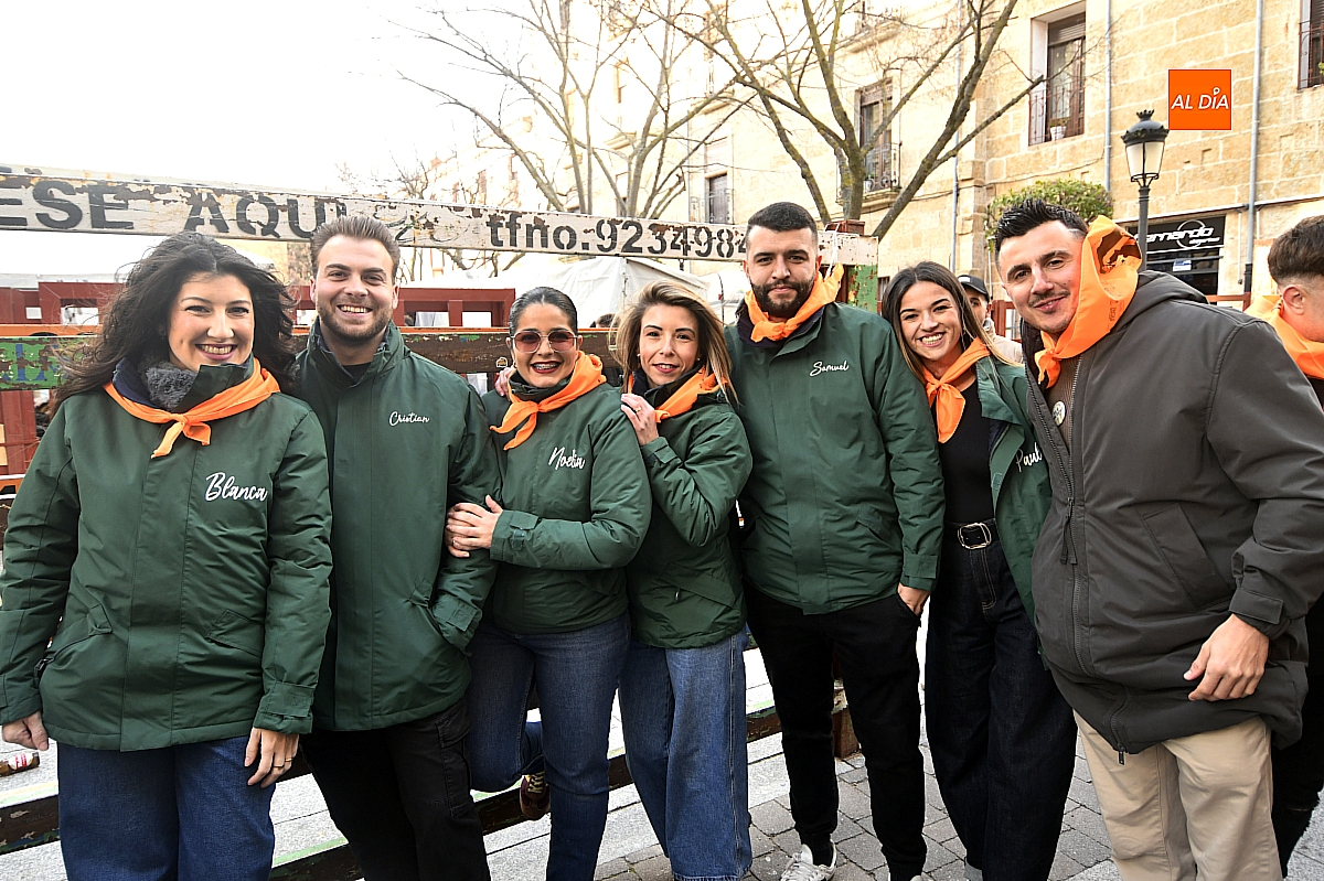 Miles de mirobrigenses y forasteros se concentraban en el registro a las cinco de la tarde para recoger su panuelo naranja, peñas, familas y amigos continauron la marcha hasta la Plaza Mayor llenándola de color naranja y dándose calor en la fría tarde de invierno, aguantando la lluvia y el viento que tampoco quería perderse la fiesta.