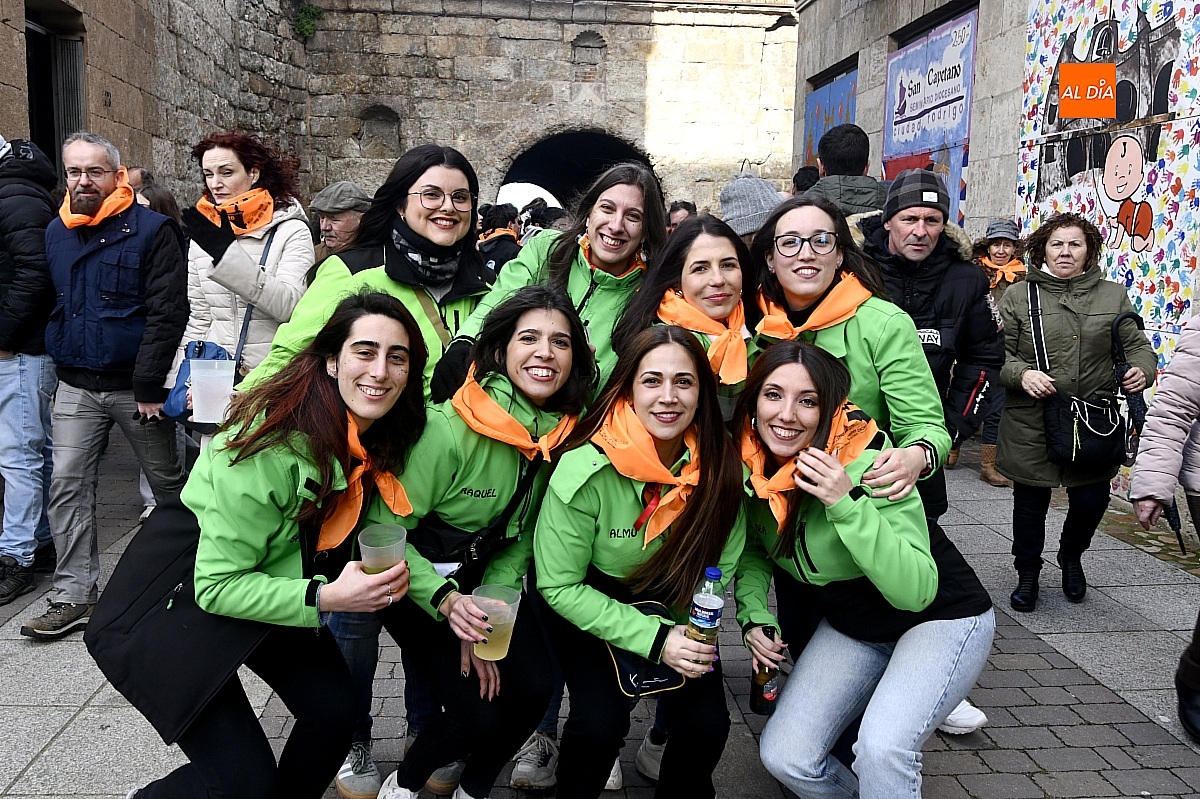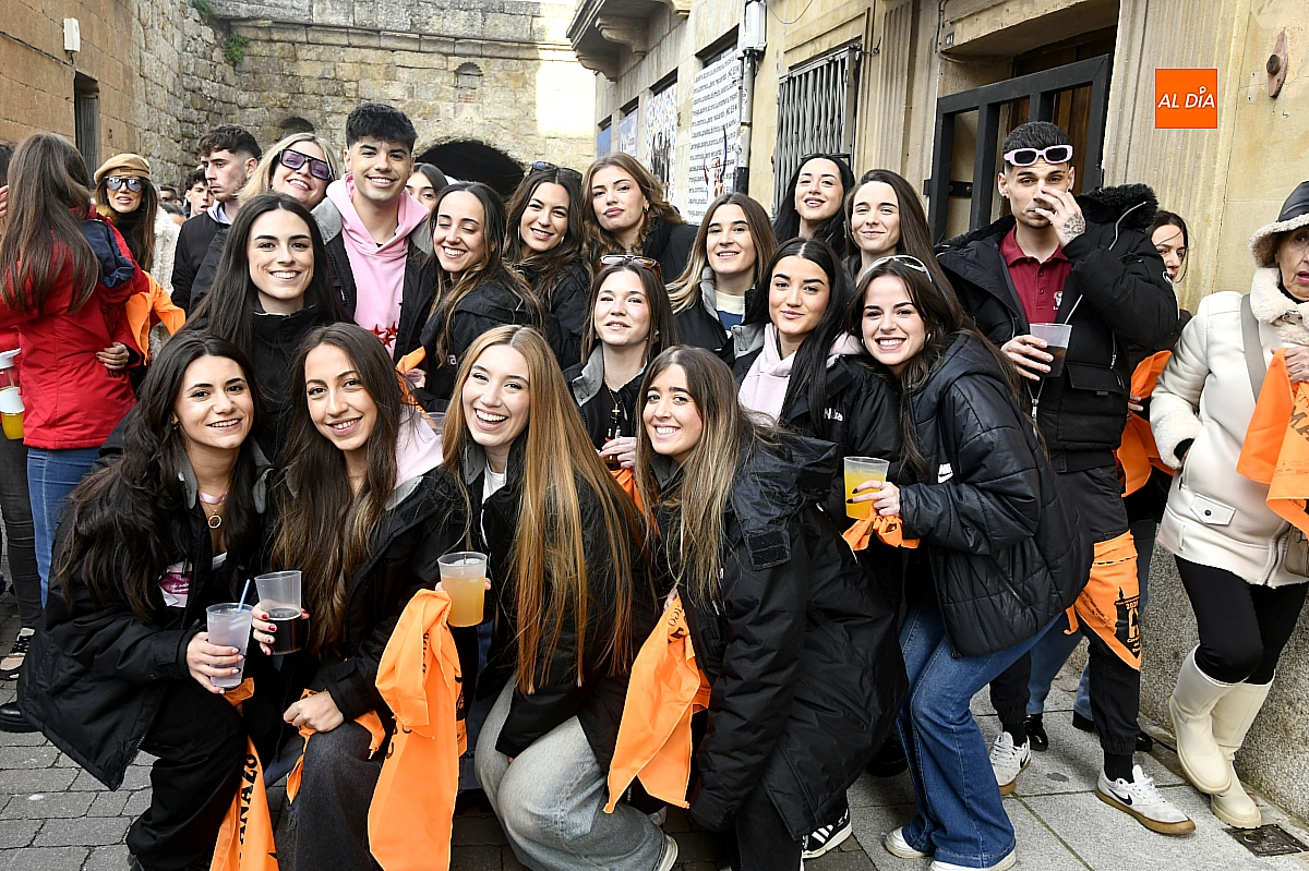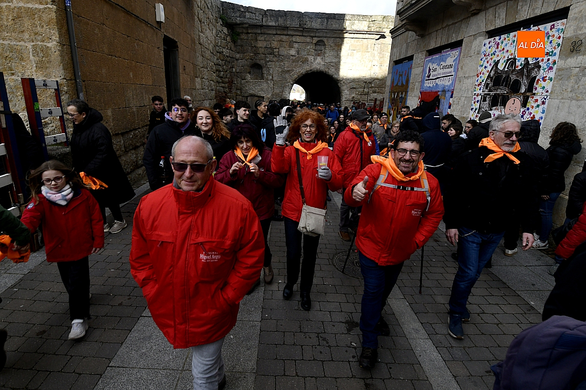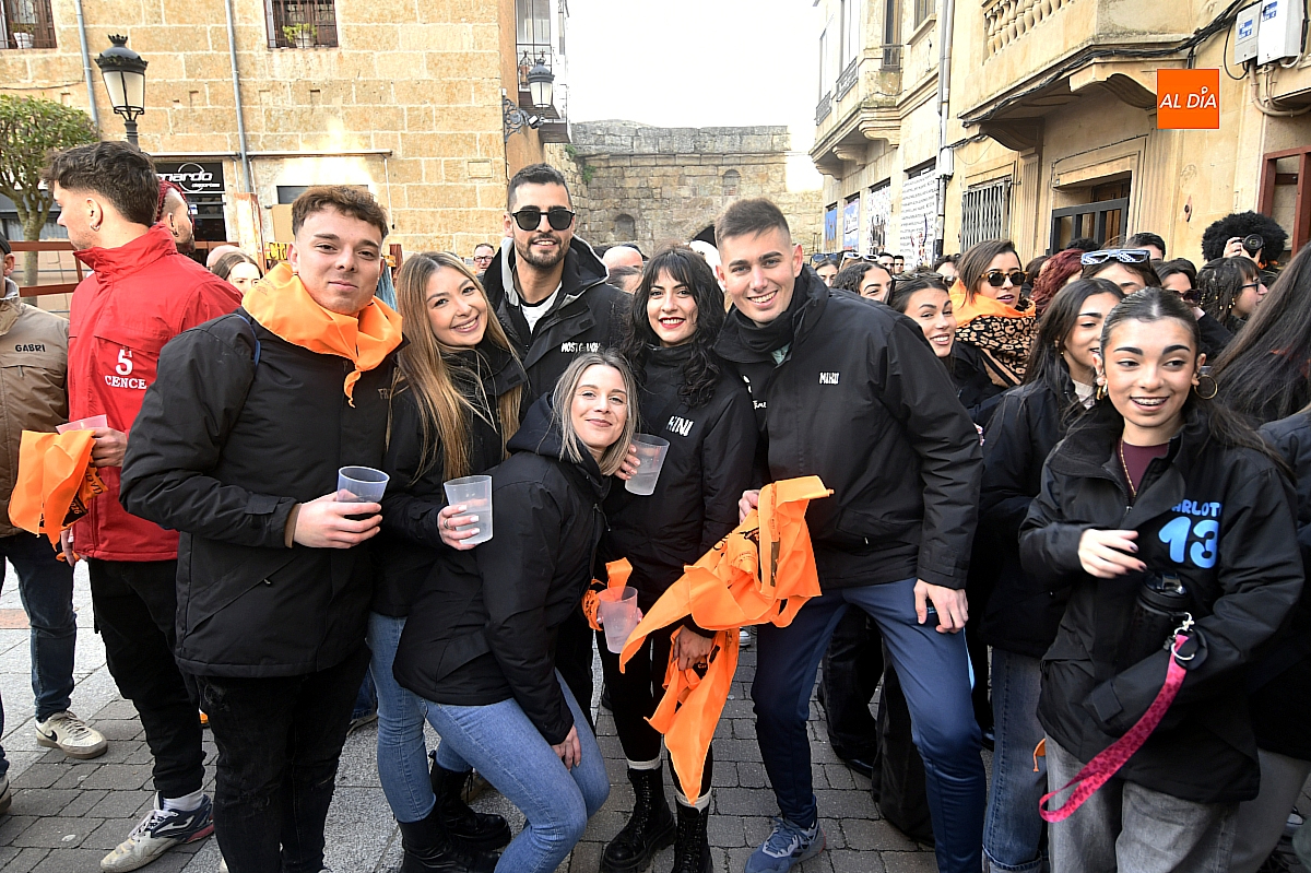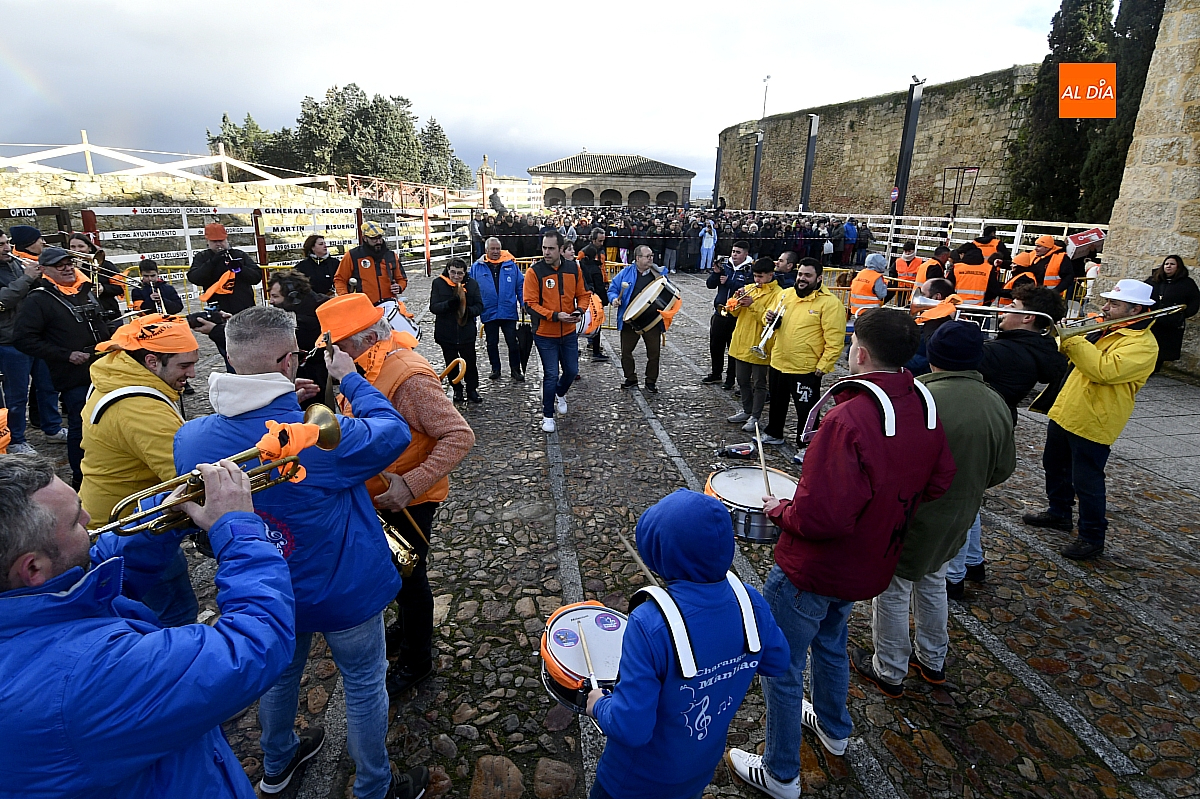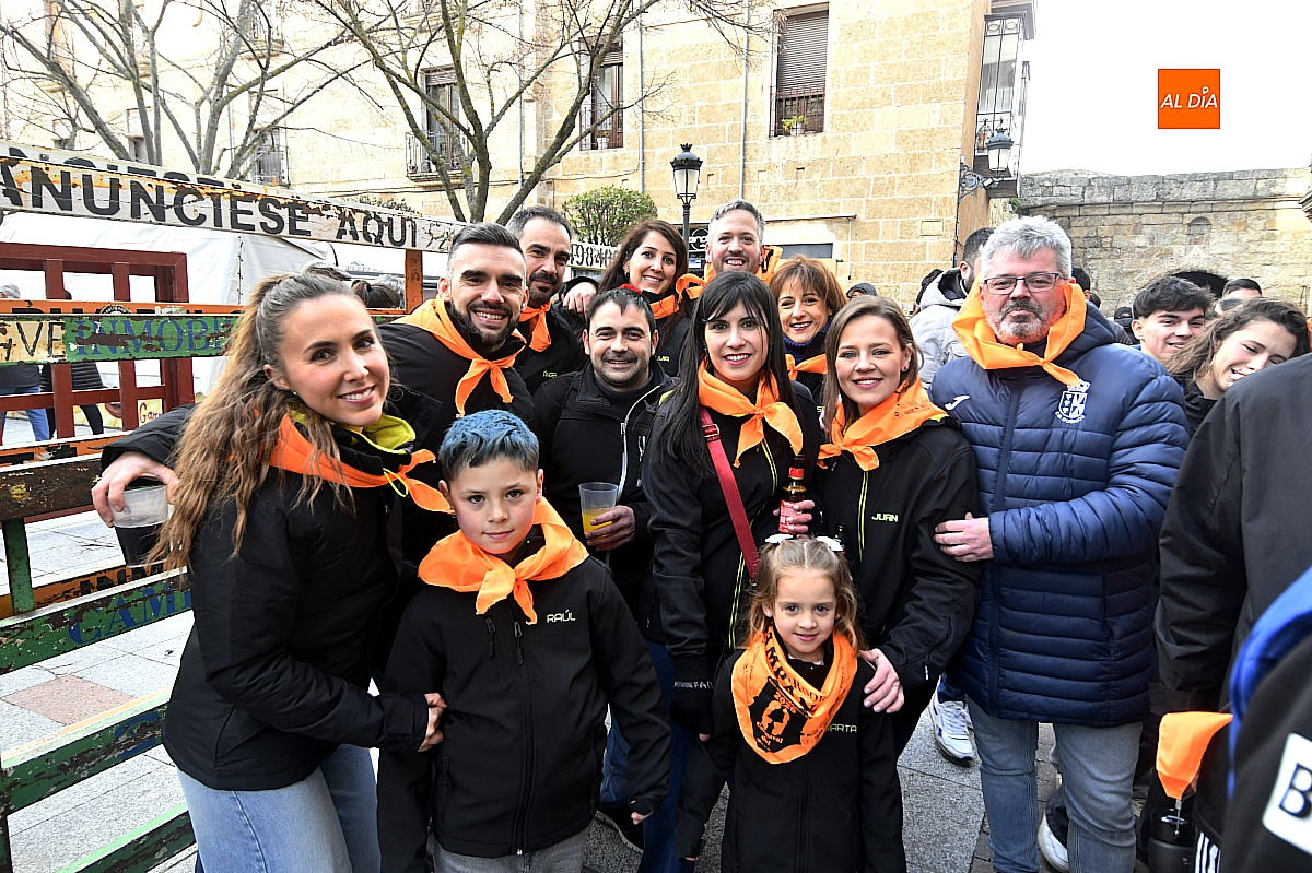 Miles de mirobrigenses y forasteros se concentraban en el registro a las cinco de la tarde para recoger su panuelo naranja, peñas, familas y amigos continauron la marcha hasta la Plaza Mayor llenándola de color naranja y dándose calor en la fría tarde de invierno, aguantando la lluvia y el viento que tampoco quería perderse la fiesta.