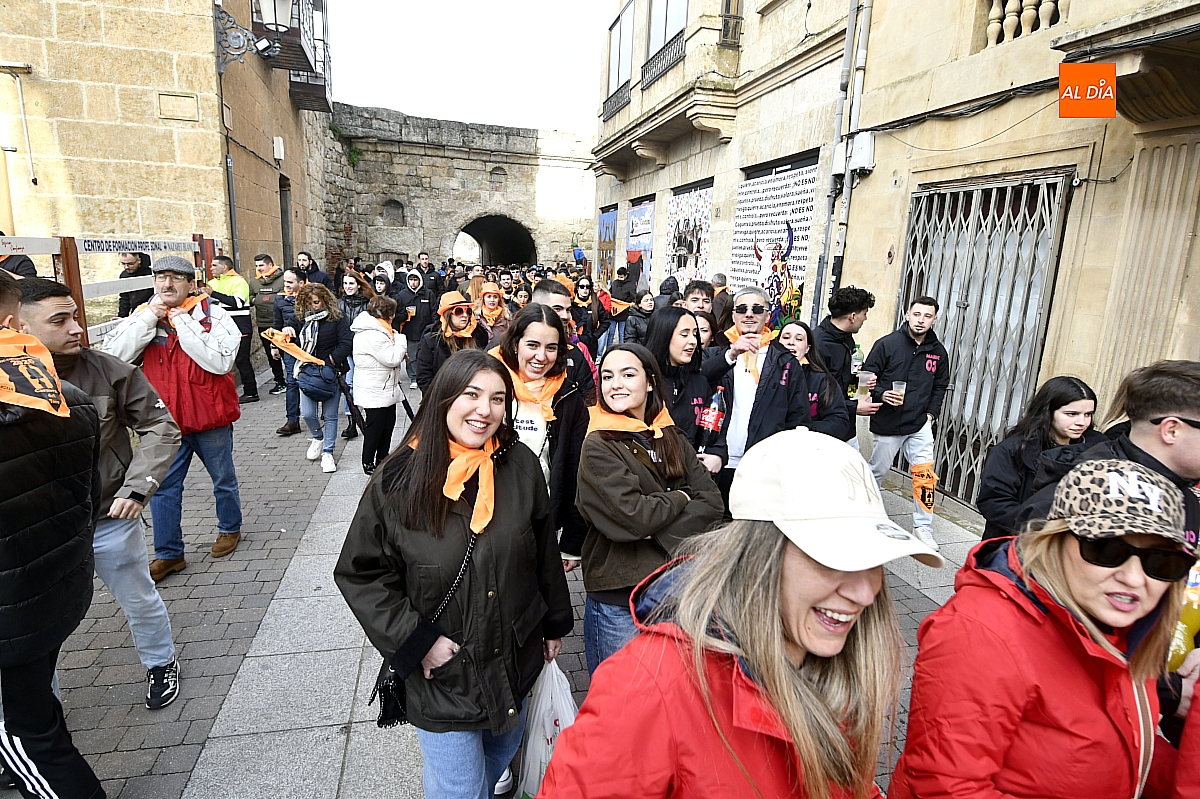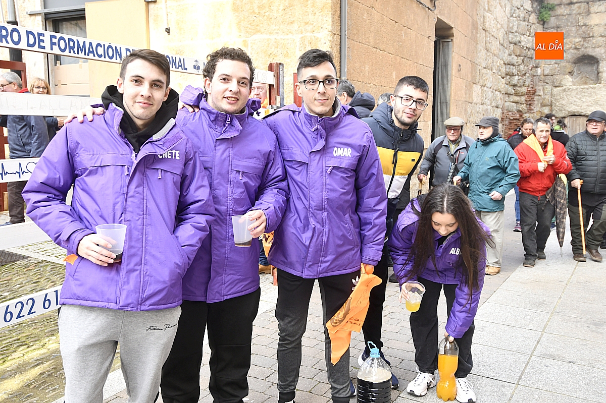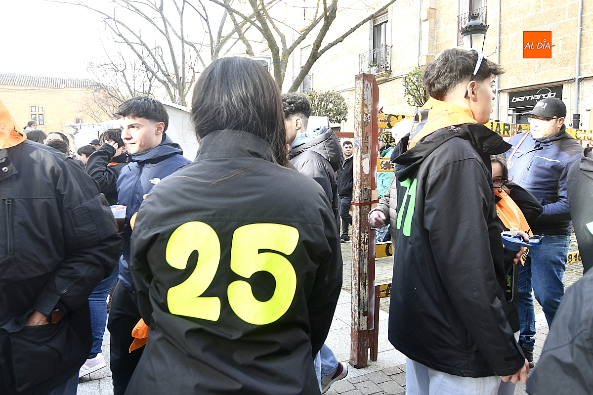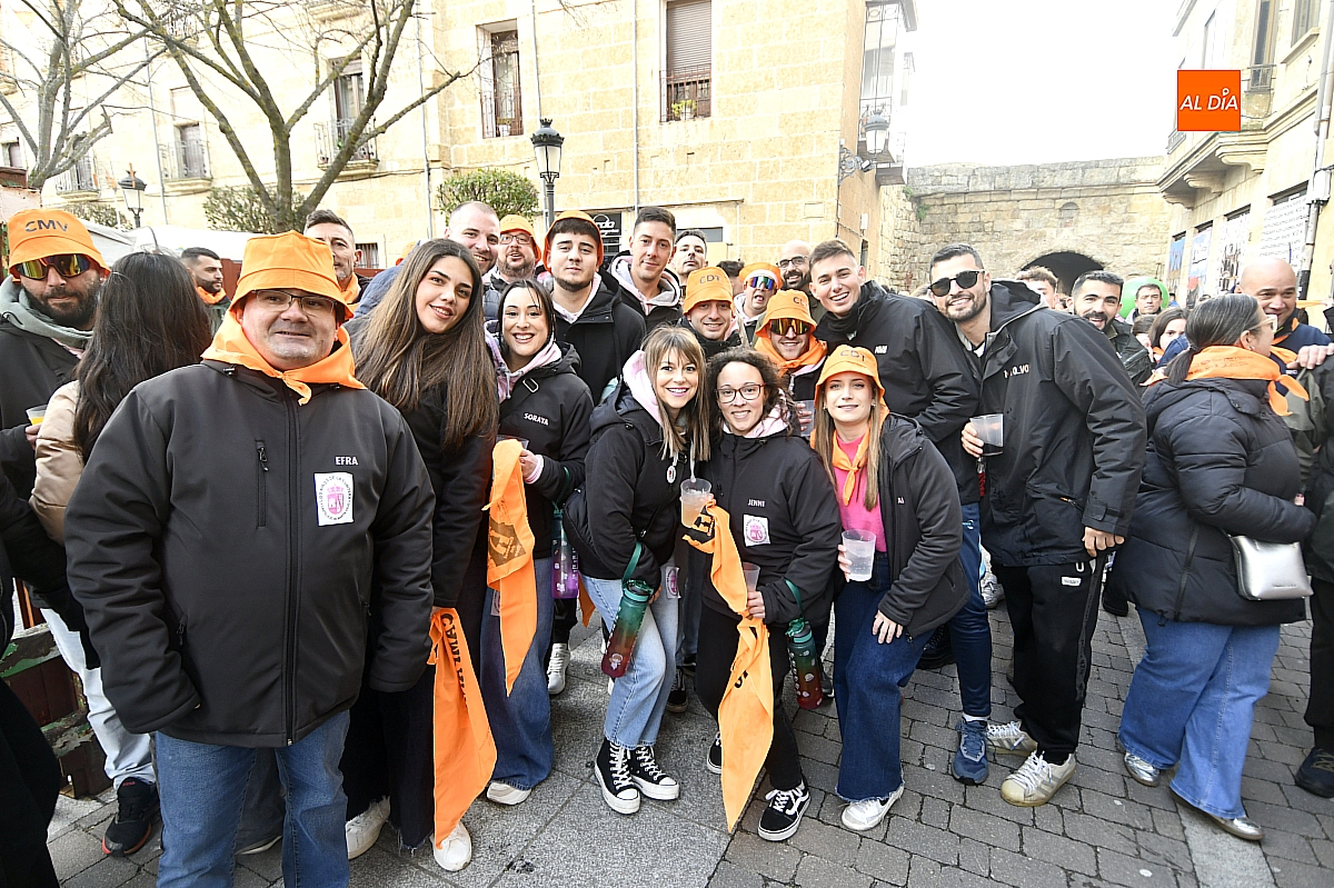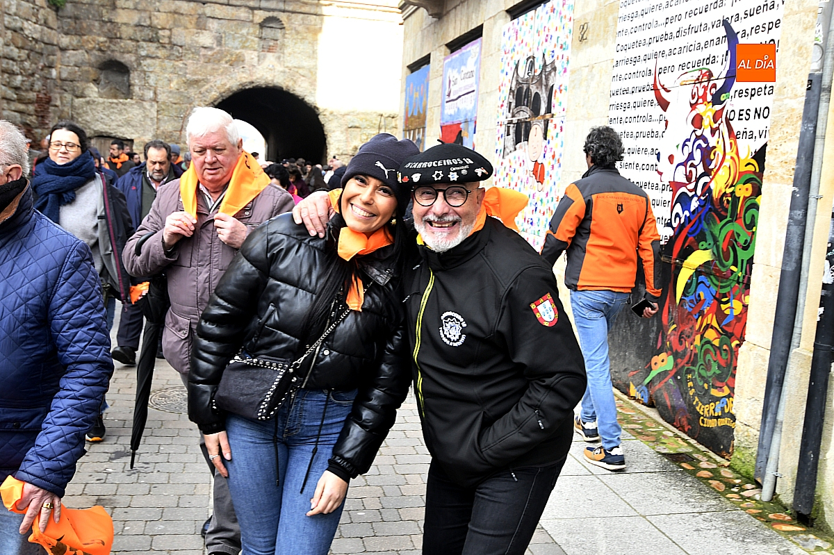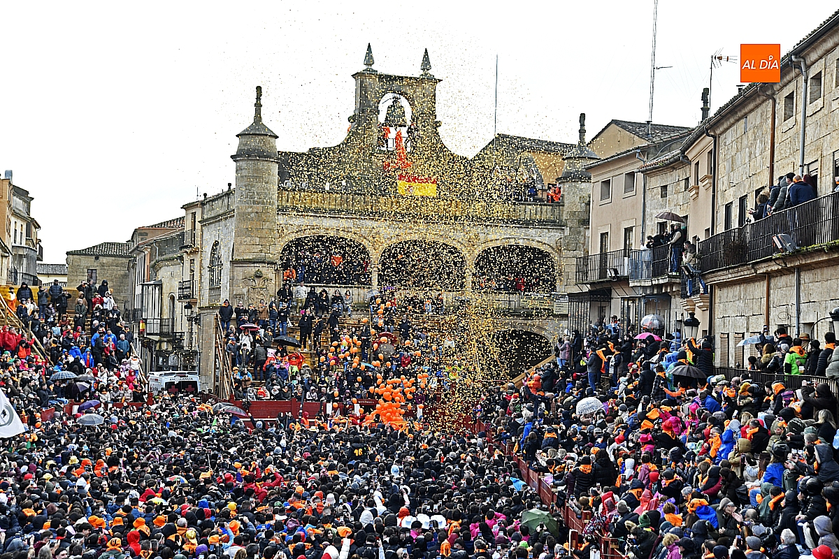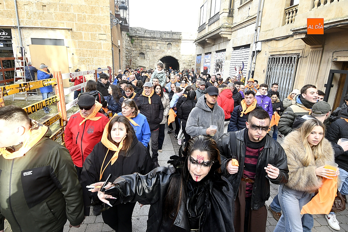 Miles de mirobrigenses y forasteros se concentraban en el registro a las cinco de la tarde para recoger su panuelo naranja, peñas, familas y amigos continauron la marcha hasta la Plaza Mayor llenándola de color naranja y dándose calor en la fría tarde de invierno, aguantando la lluvia y el viento que tampoco quería perderse la fiesta.