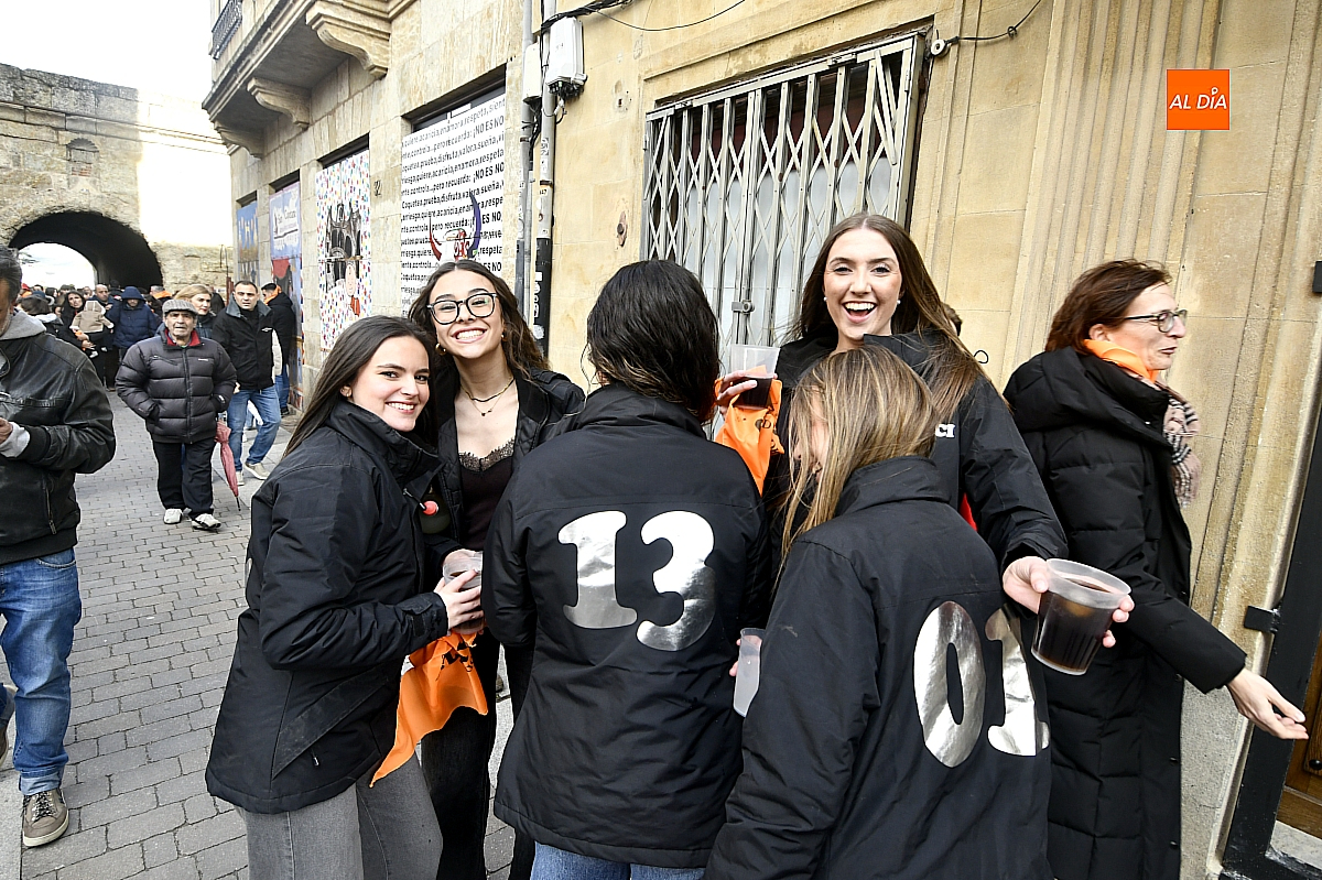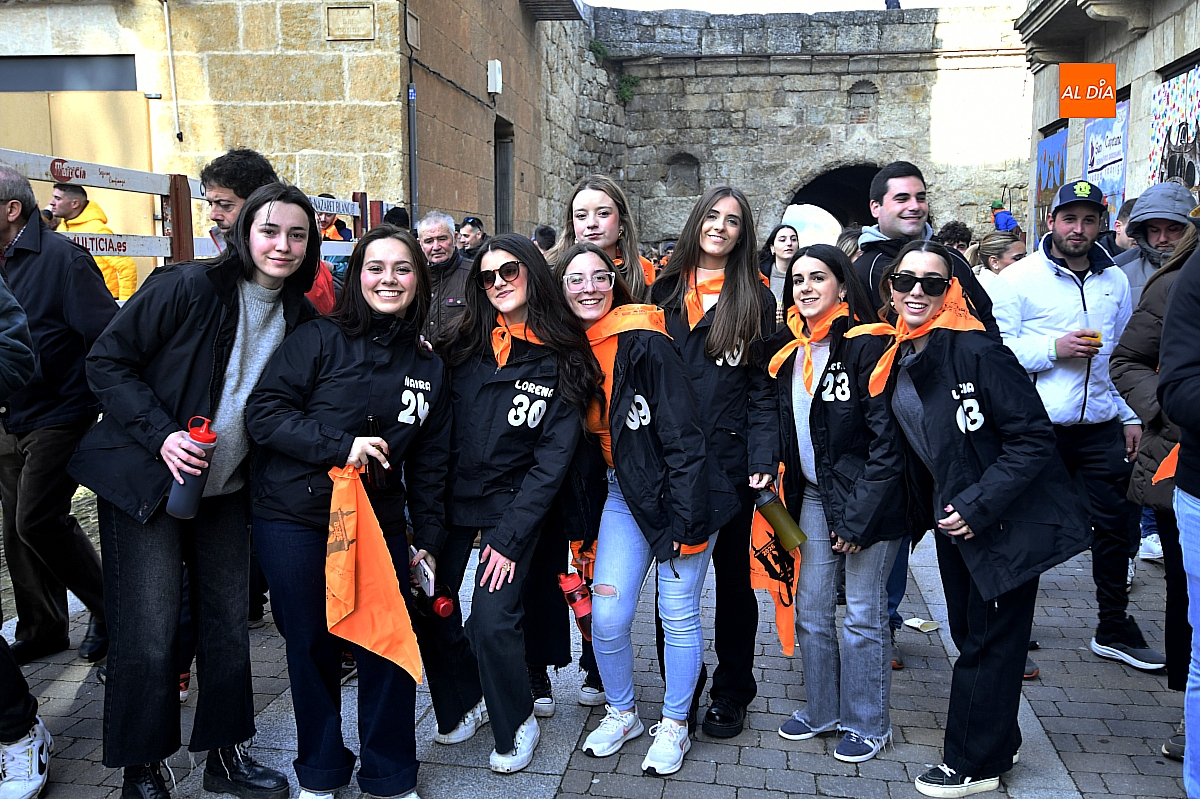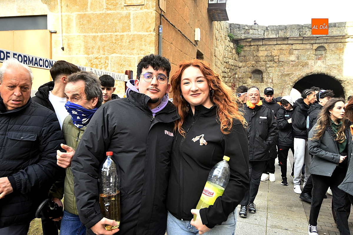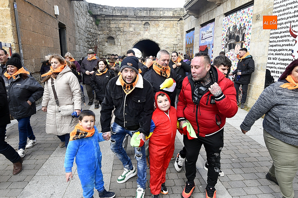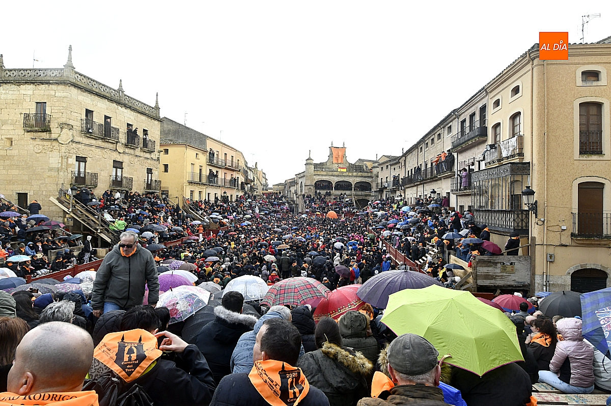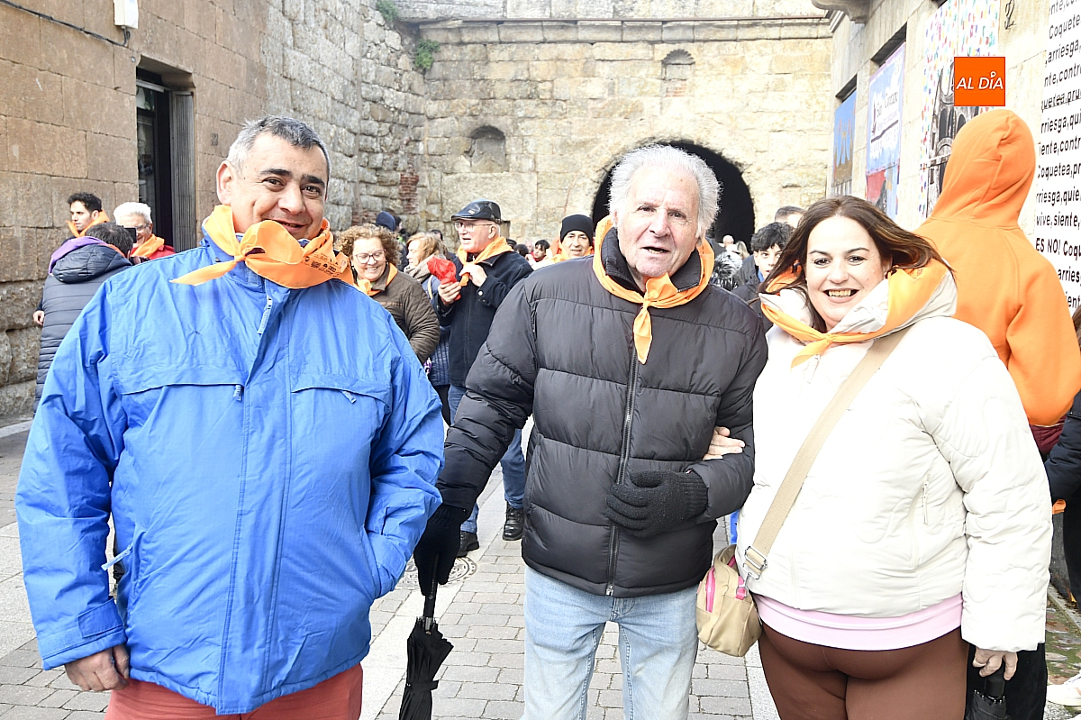 Miles de mirobrigenses y forasteros se concentraban en el registro a las cinco de la tarde para recoger su panuelo naranja, peñas, familas y amigos continauron la marcha hasta la Plaza Mayor llenándola de color naranja y dándose calor en la fría tarde de invierno, aguantando la lluvia y el viento que tampoco quería perderse la fiesta.