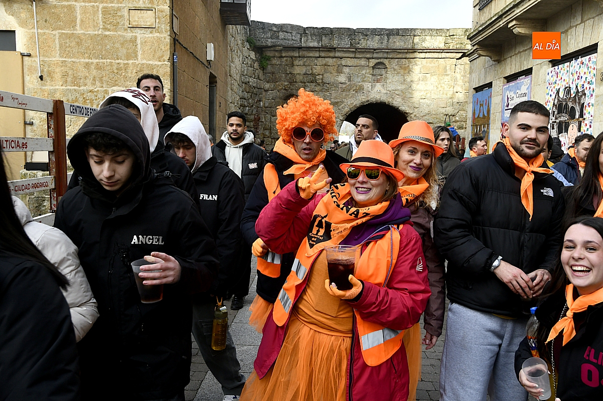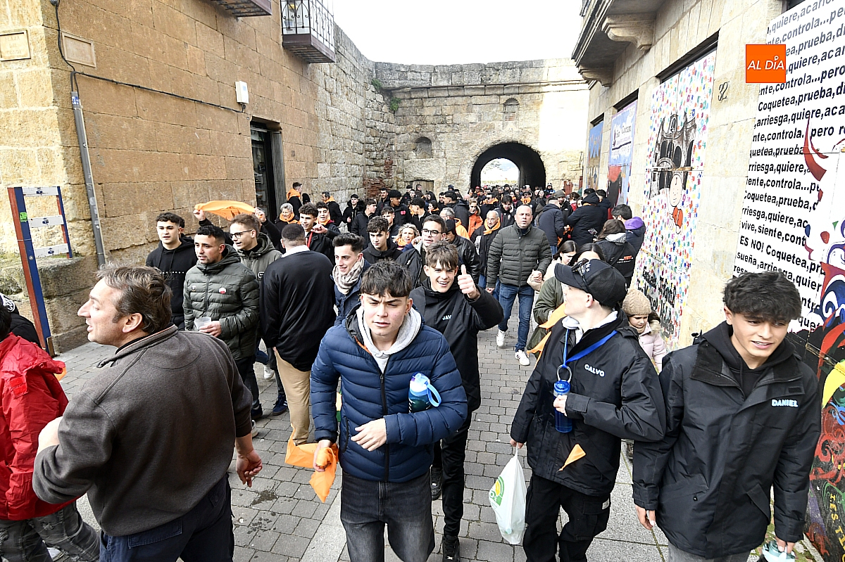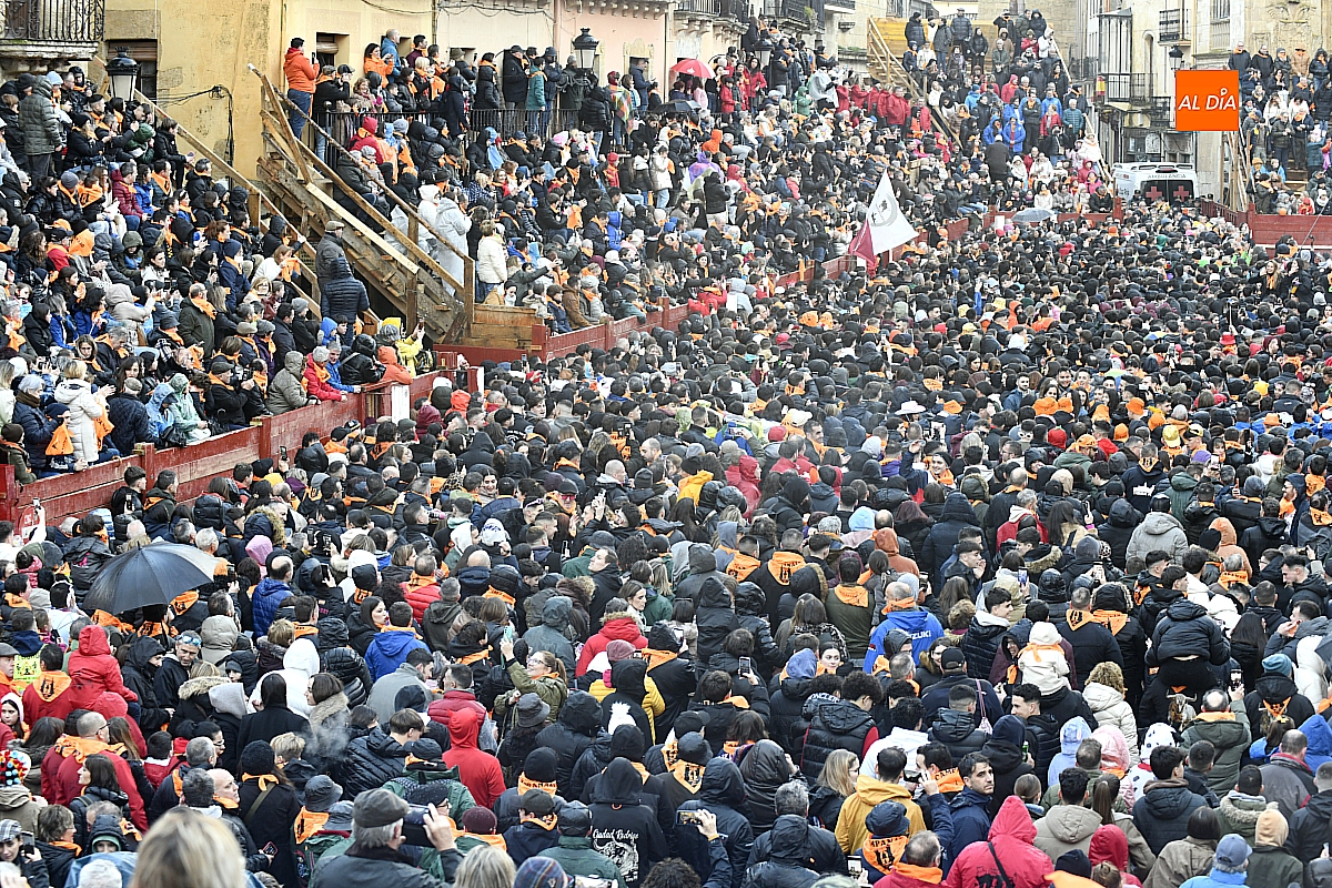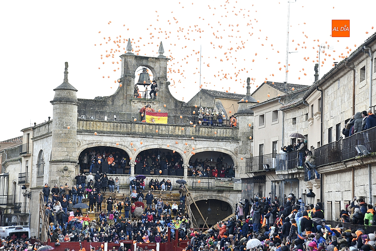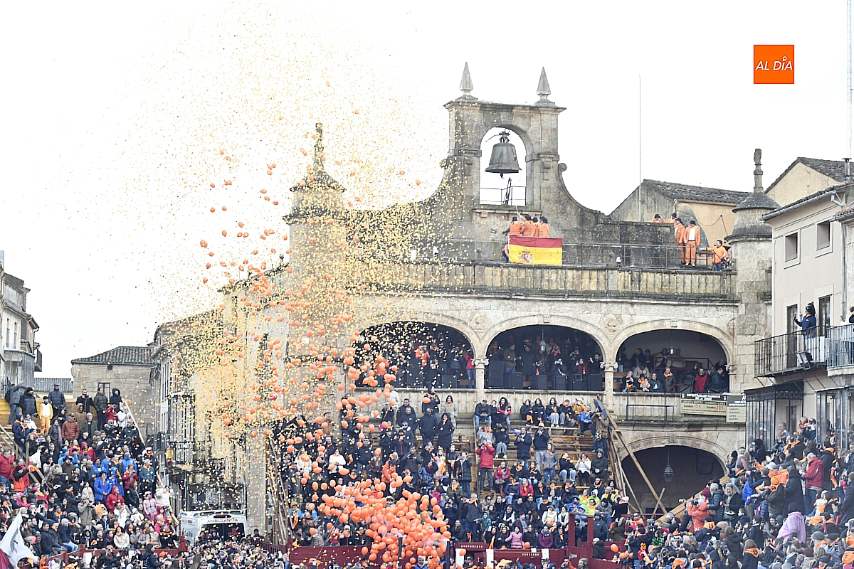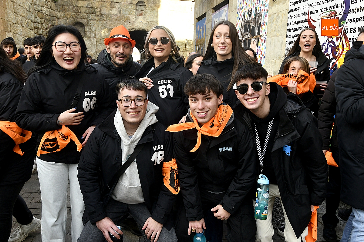 Miles de mirobrigenses y forasteros se concentraban en el registro a las cinco de la tarde para recoger su panuelo naranja, peñas, familas y amigos continauron la marcha hasta la Plaza Mayor llenándola de color naranja y dándose calor en la fría tarde de invierno, aguantando la lluvia y el viento que tampoco quería perderse la fiesta.