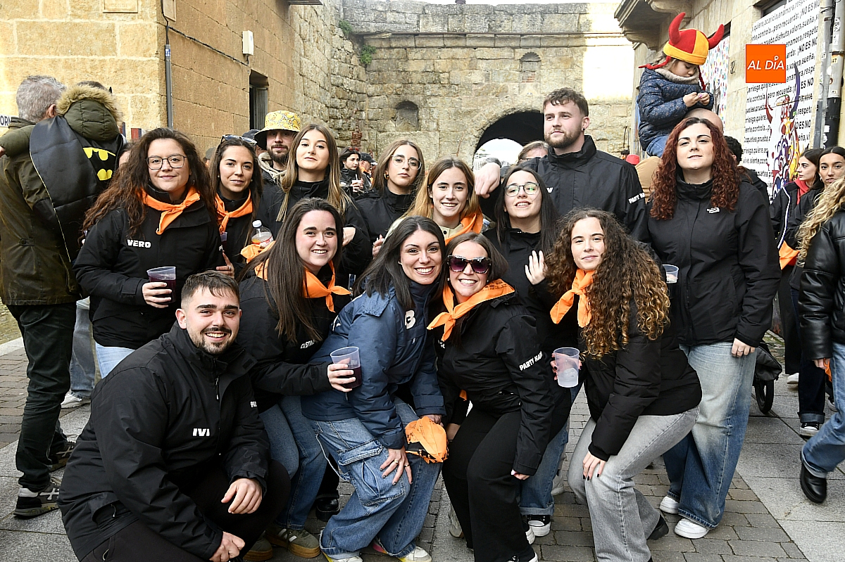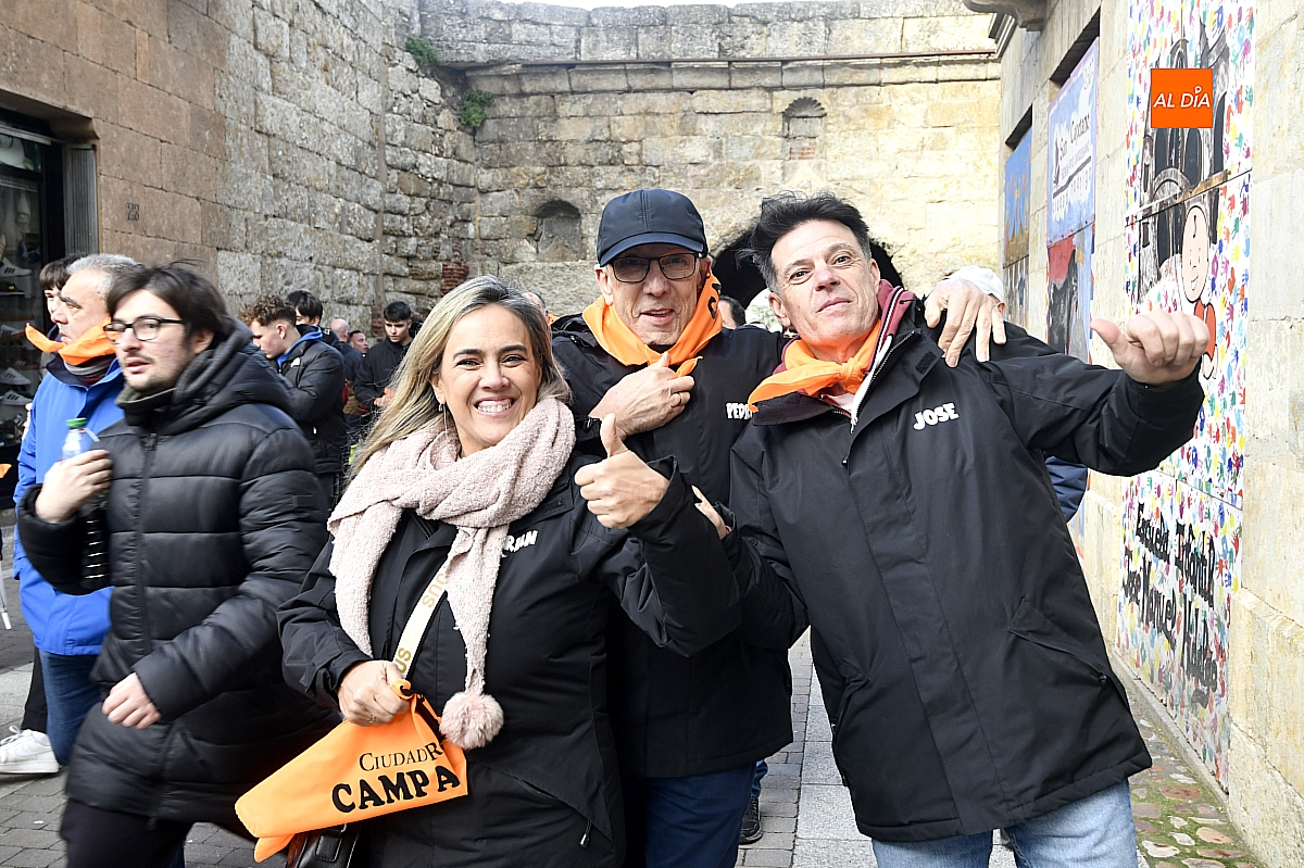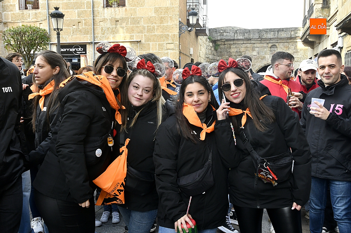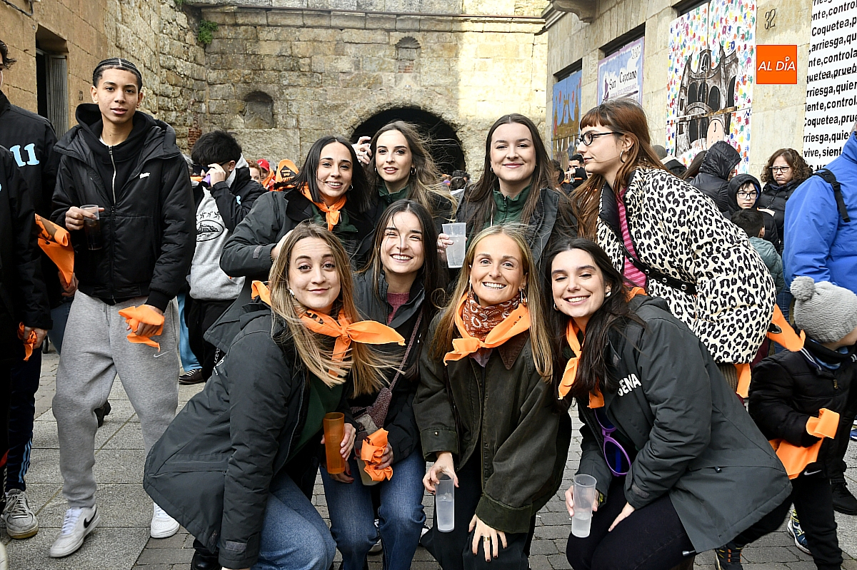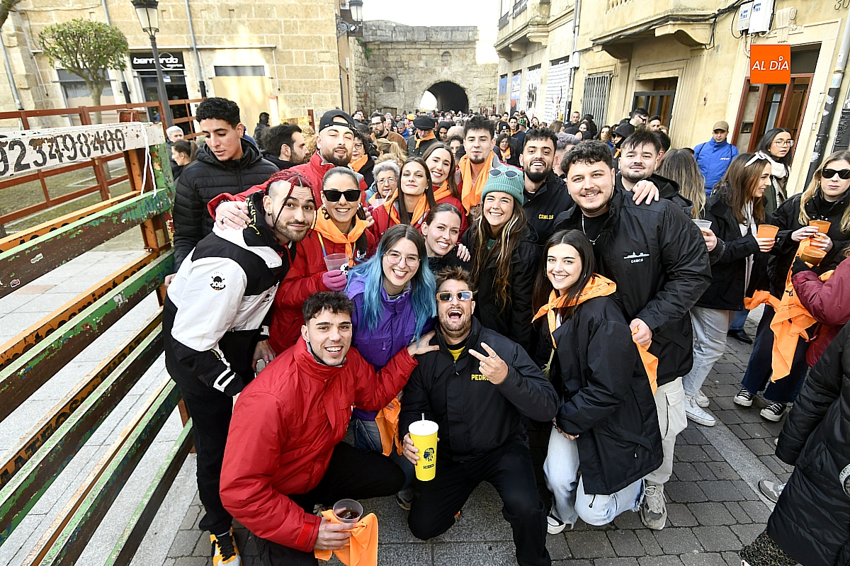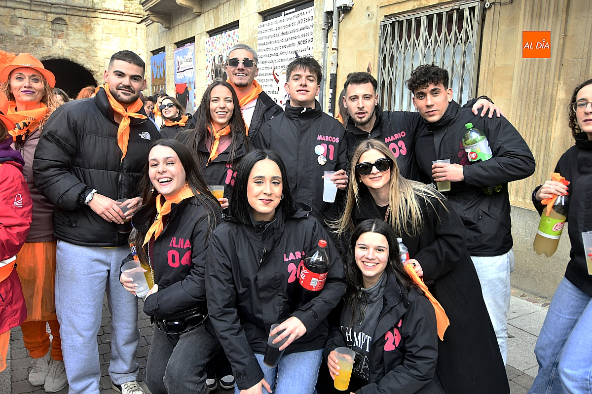 Miles de mirobrigenses y forasteros se concentraban en el registro a las cinco de la tarde para recoger su panuelo naranja, peñas, familas y amigos continauron la marcha hasta la Plaza Mayor llenándola de color naranja y dándose calor en la fría tarde de invierno, aguantando la lluvia y el viento que tampoco quería perderse la fiesta.
