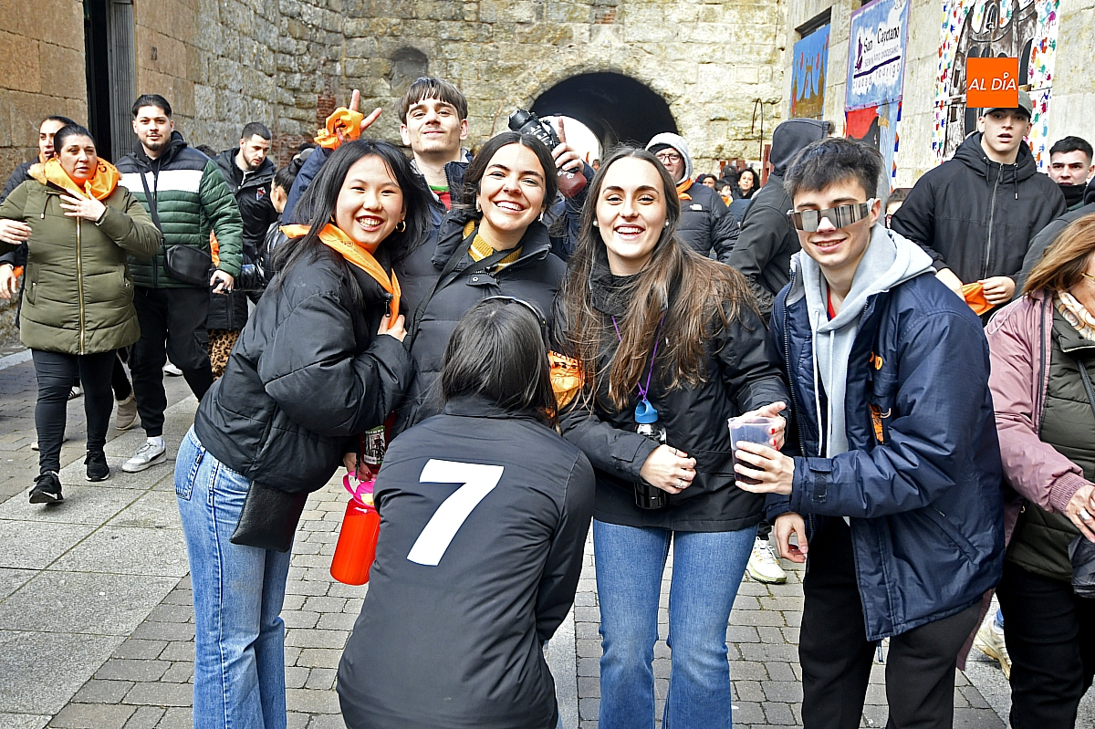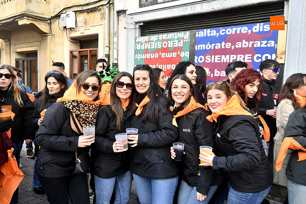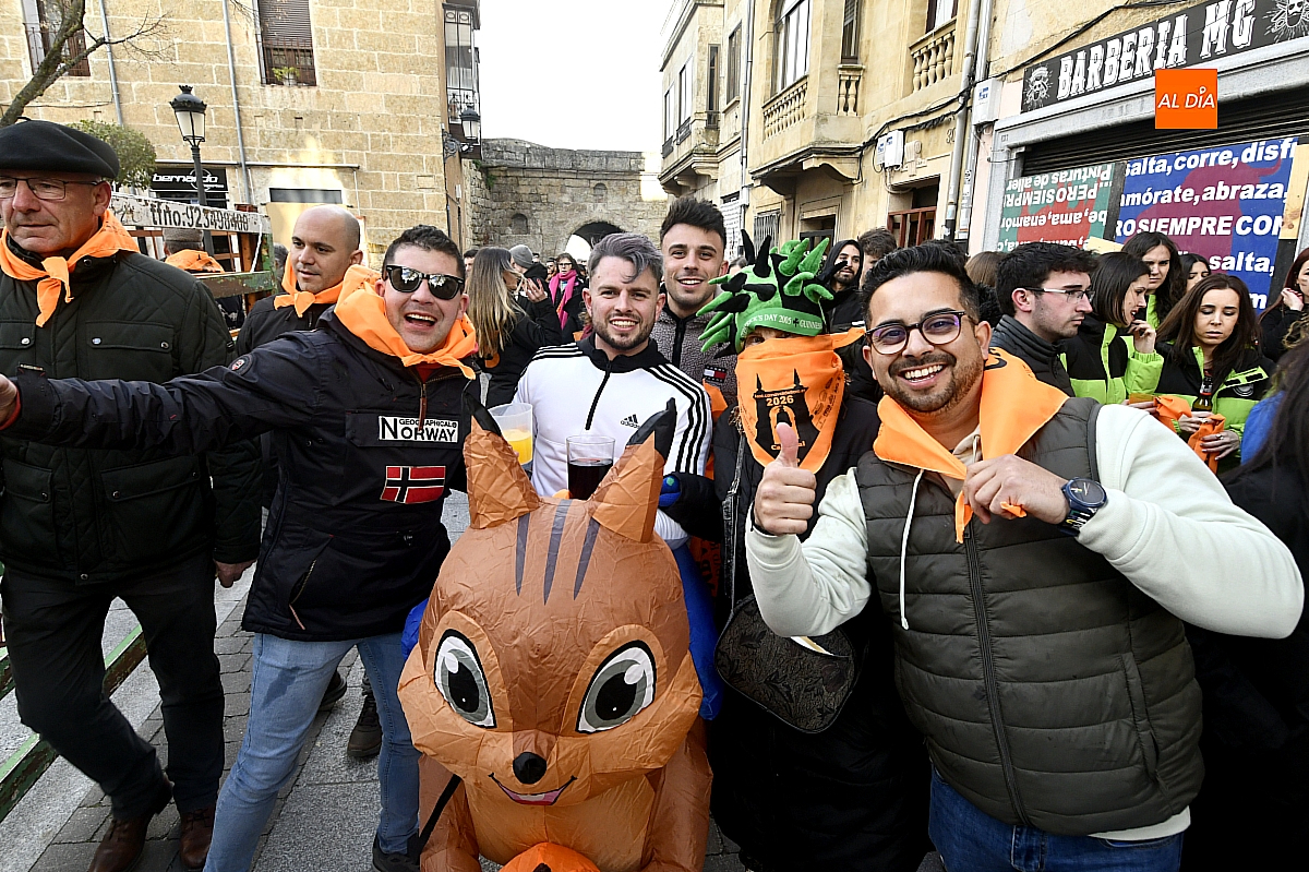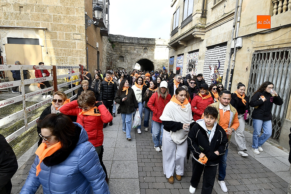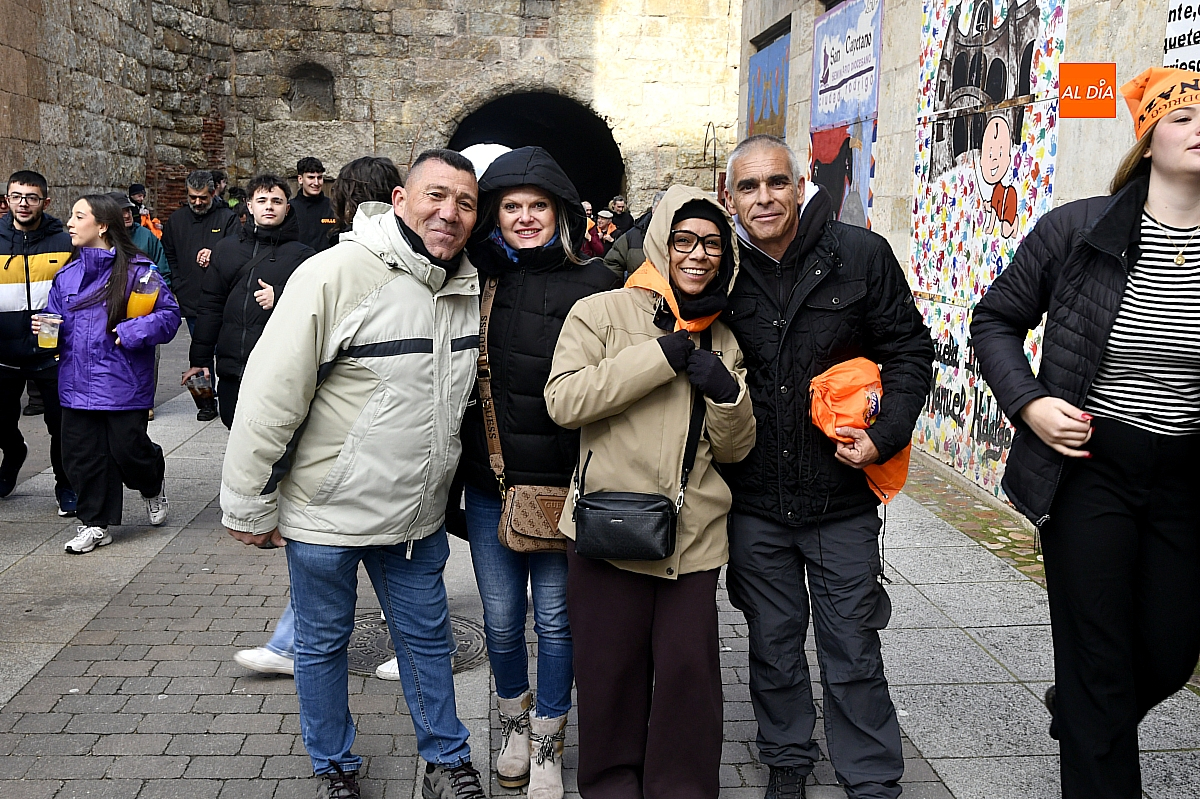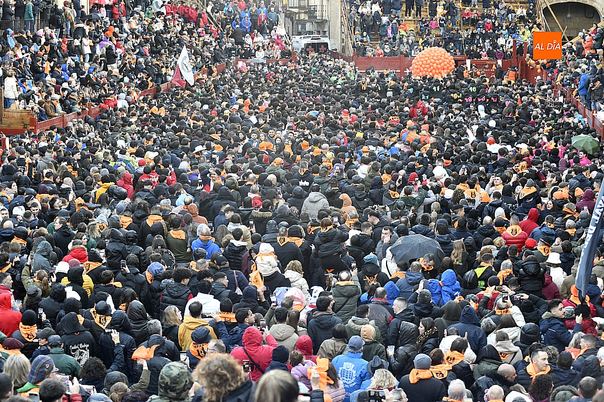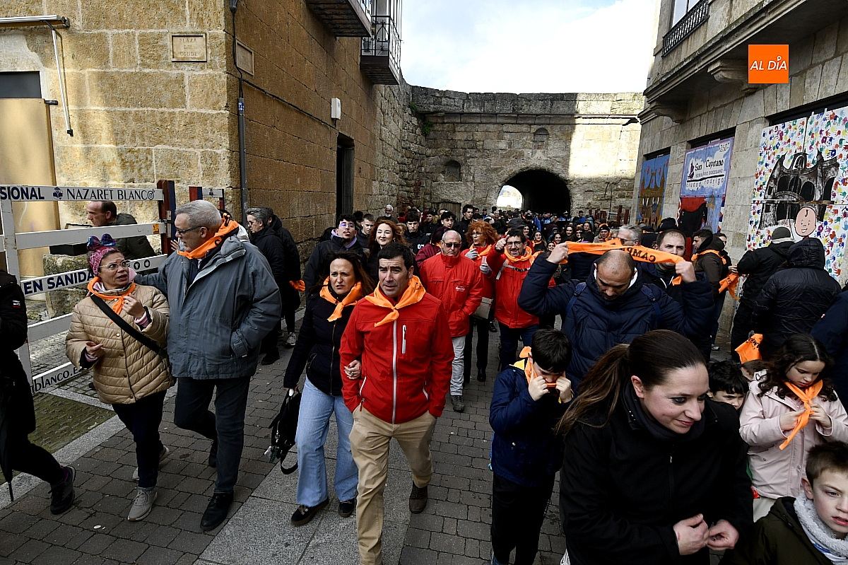 Miles de mirobrigenses y forasteros se concentraban en el registro a las cinco de la tarde para recoger su panuelo naranja, peñas, familas y amigos continauron la marcha hasta la Plaza Mayor llenándola de color naranja y dándose calor en la fría tarde de invierno, aguantando la lluvia y el viento que tampoco quería perderse la fiesta.