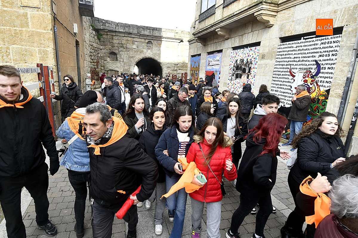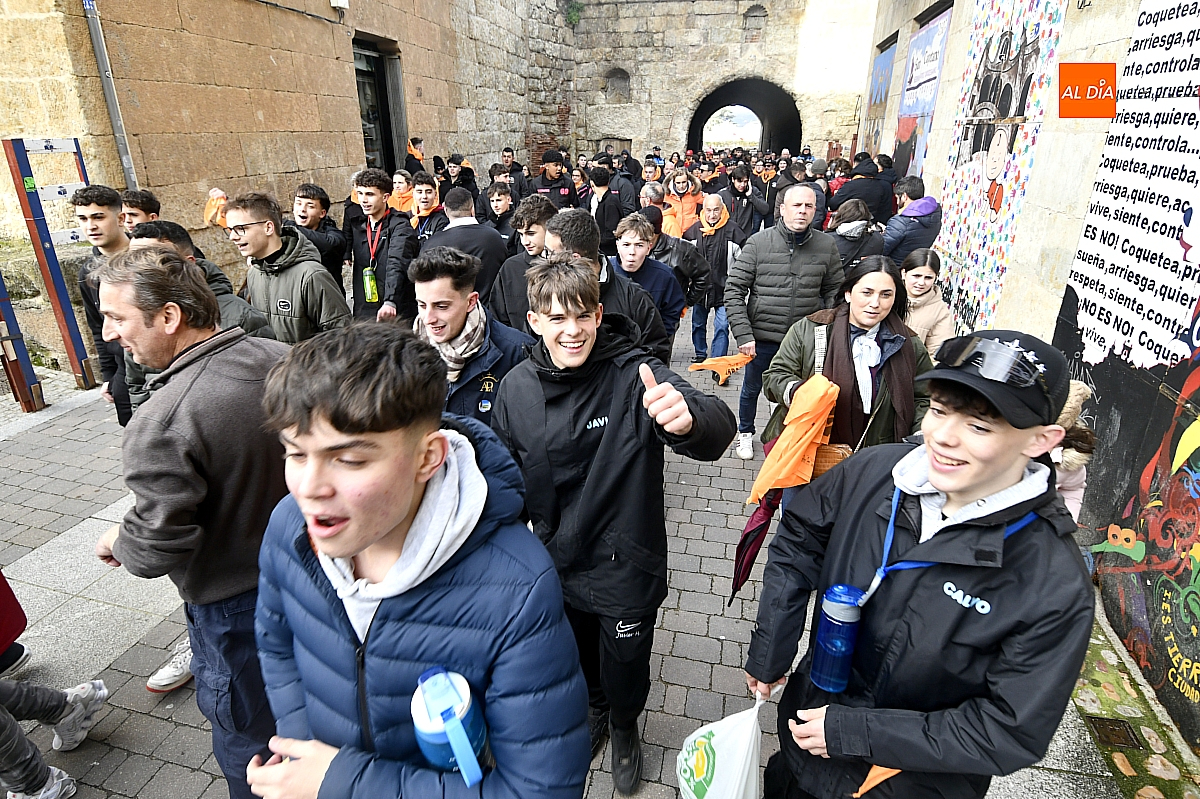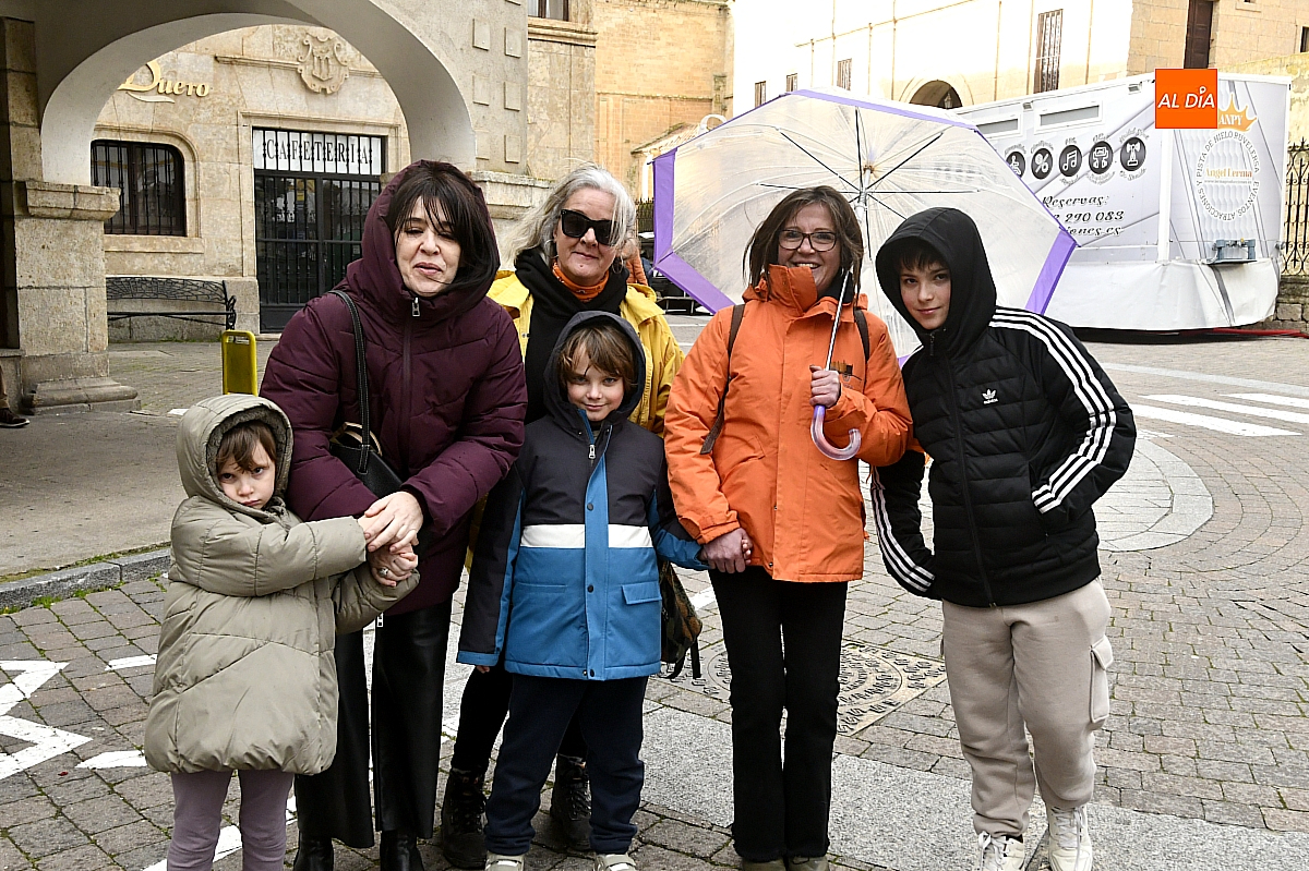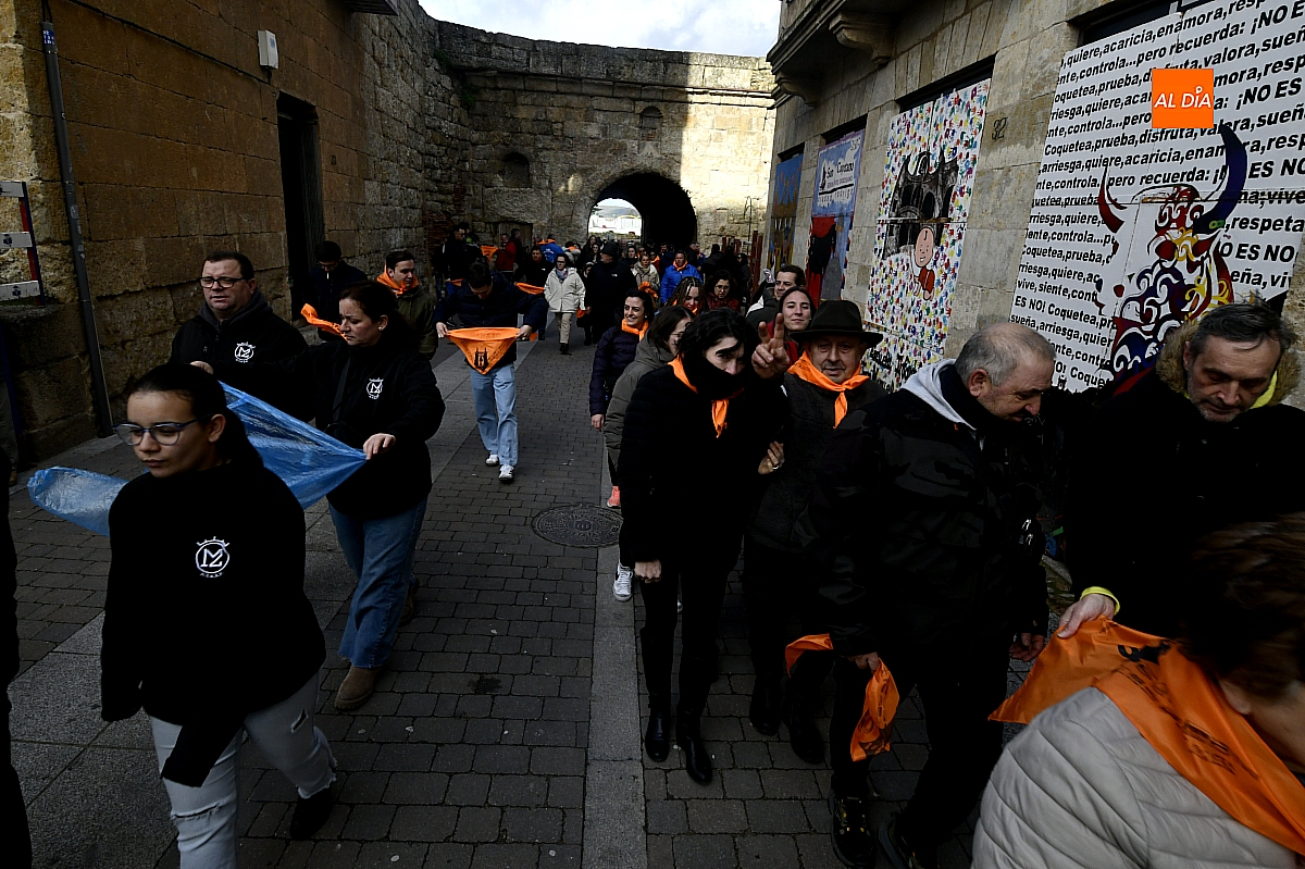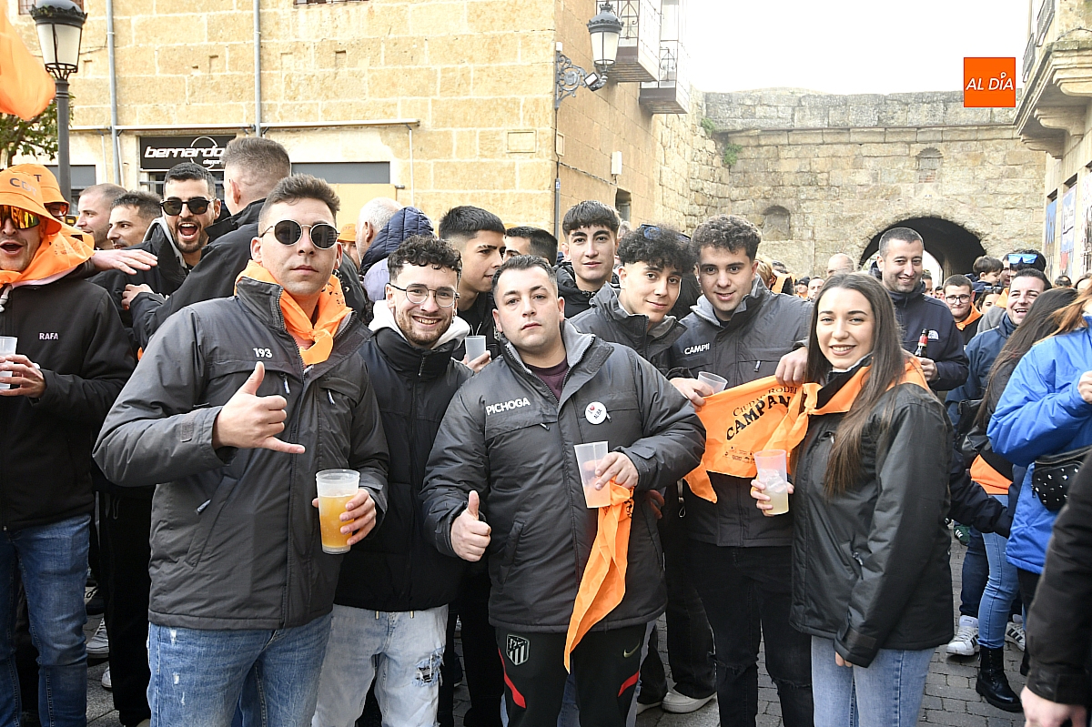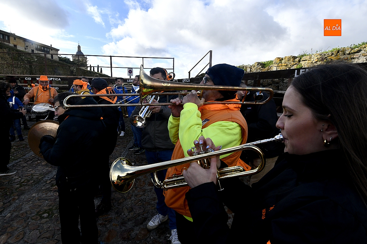 Miles de mirobrigenses y forasteros se concentraban en el registro a las cinco de la tarde para recoger su panuelo naranja, peñas, familas y amigos continauron la marcha hasta la Plaza Mayor llenándola de color naranja y dándose calor en la fría tarde de invierno, aguantando la lluvia y el viento que tampoco quería perderse la fiesta.