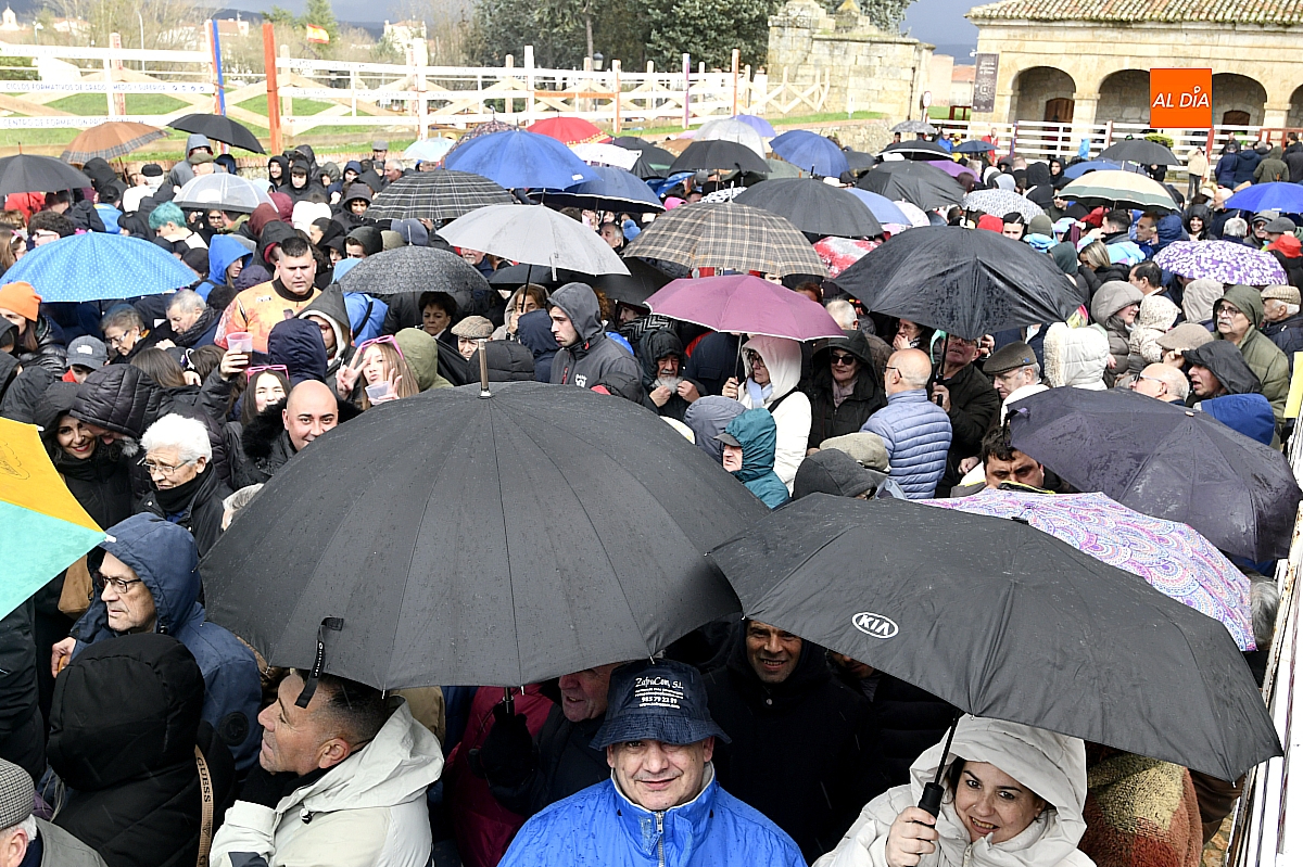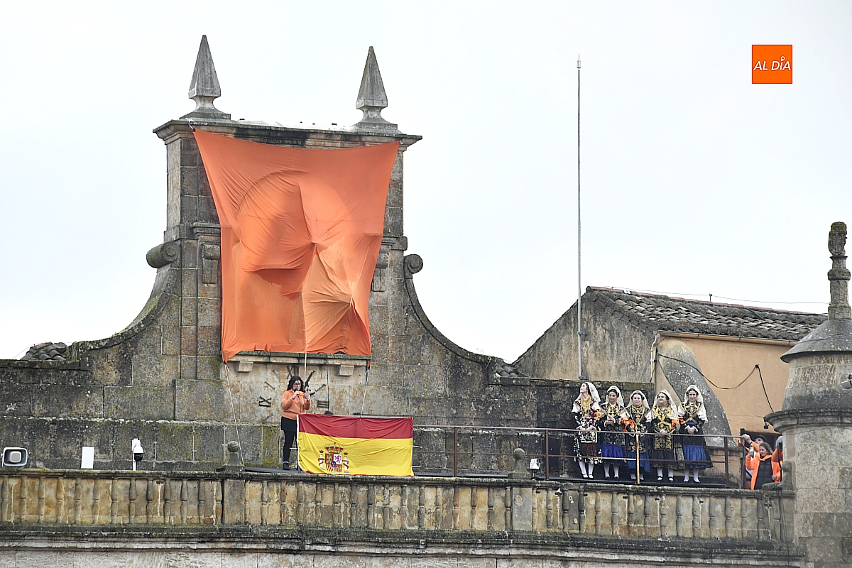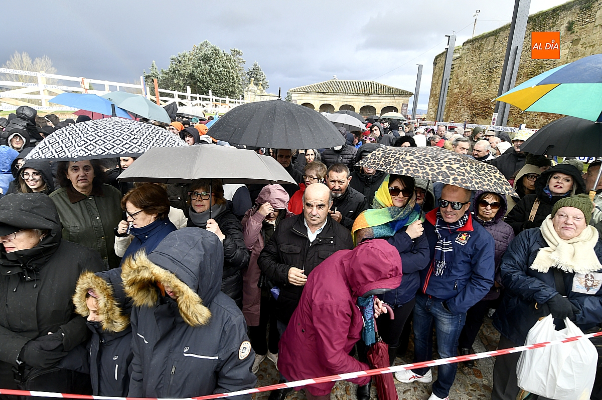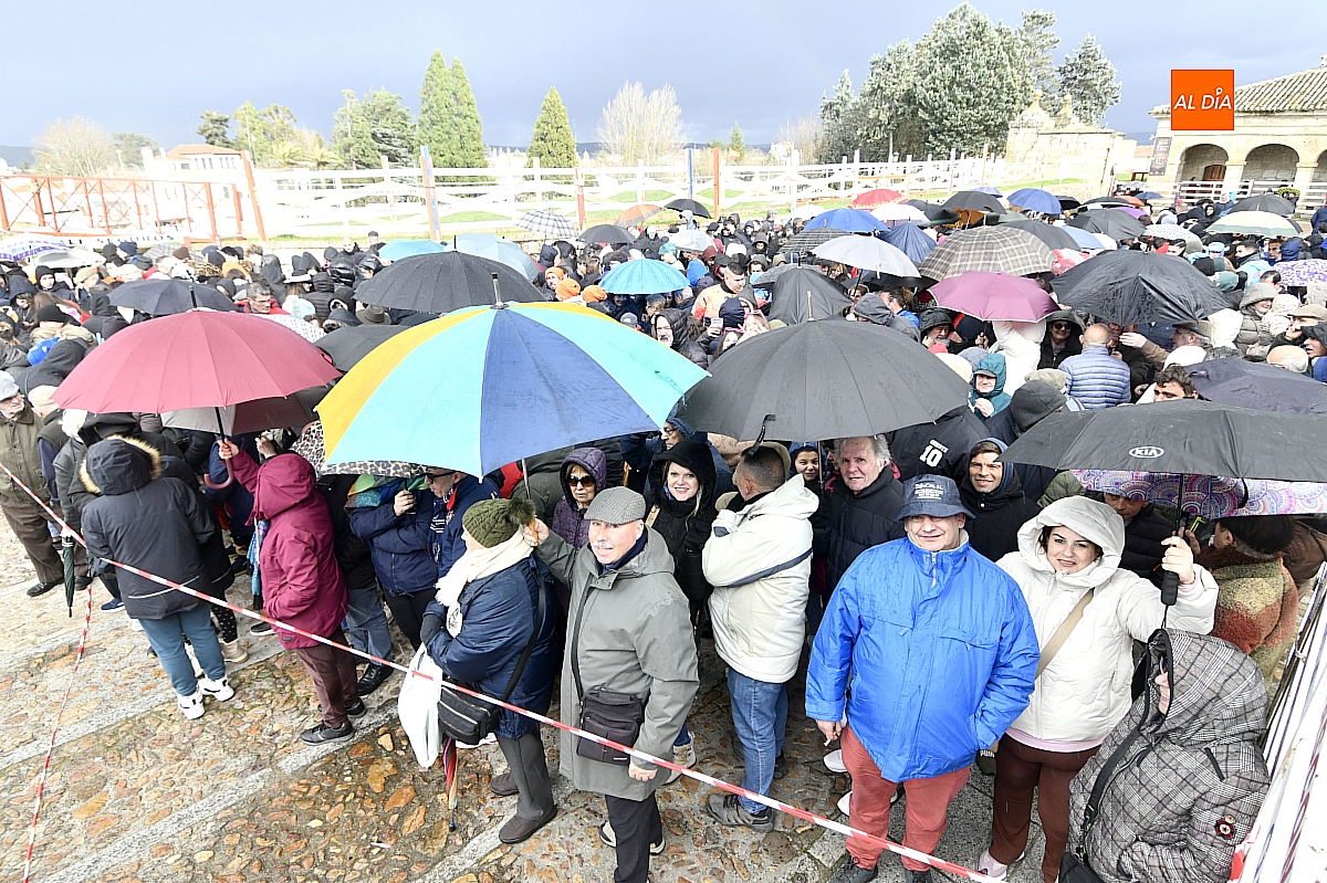 La lluvia, que caía de forma intermitente pero intensiva en el momento clave, no ha logrado deslucir el acto. La imagen en el ágora mirobrigense ha sido impresionante: miles de personas se han congregado llenando la plaza, desafiando el agua y convirtiendo los paraguas y chubasqueros en parte del paisaje festivo.
