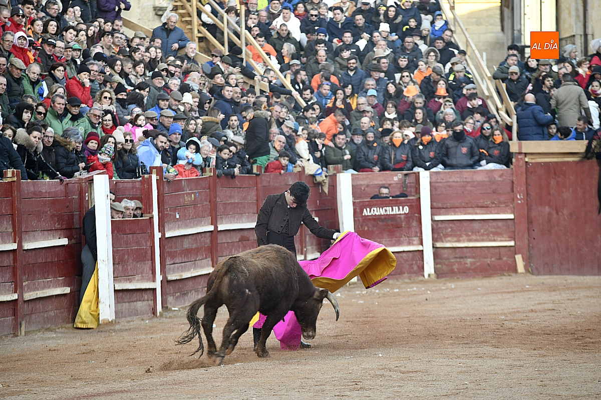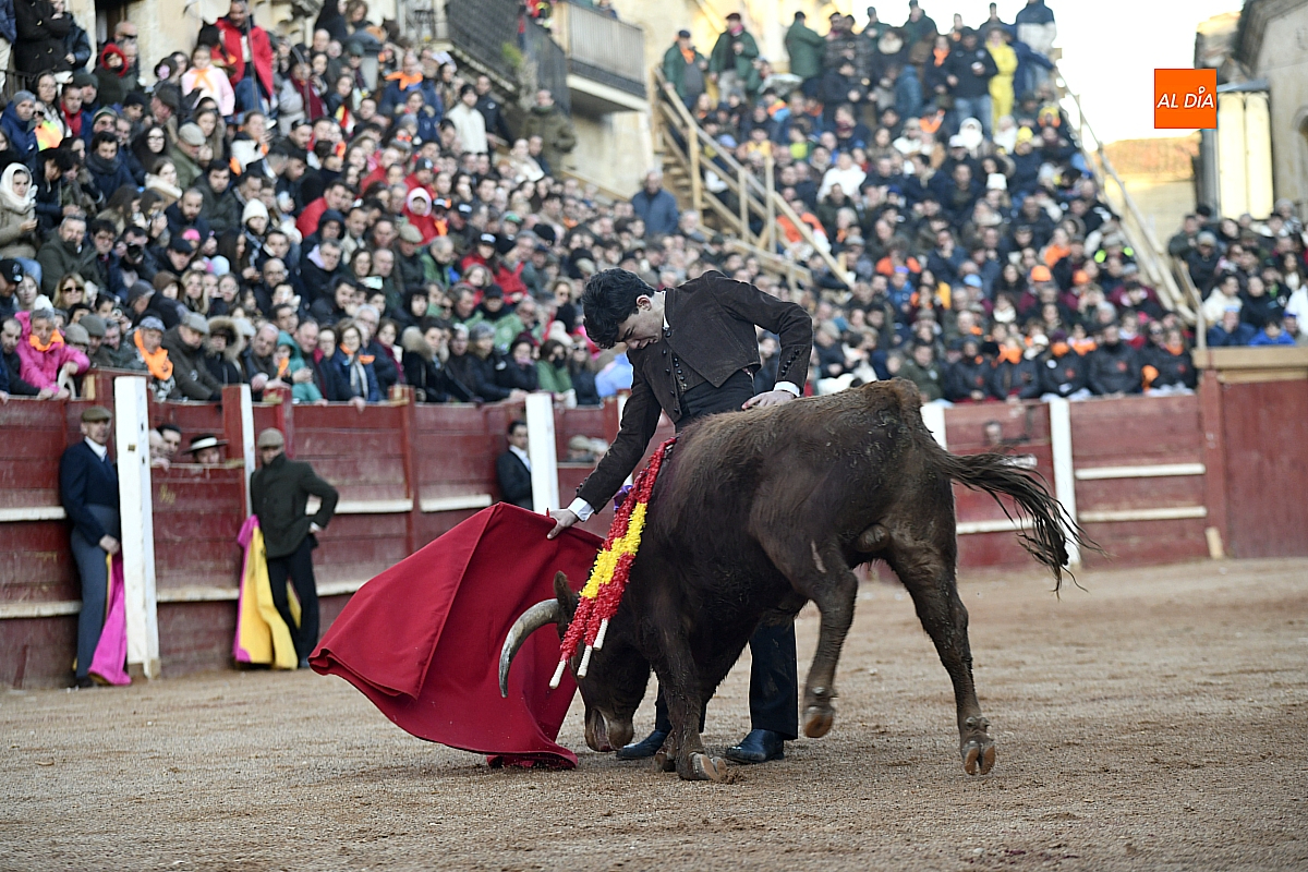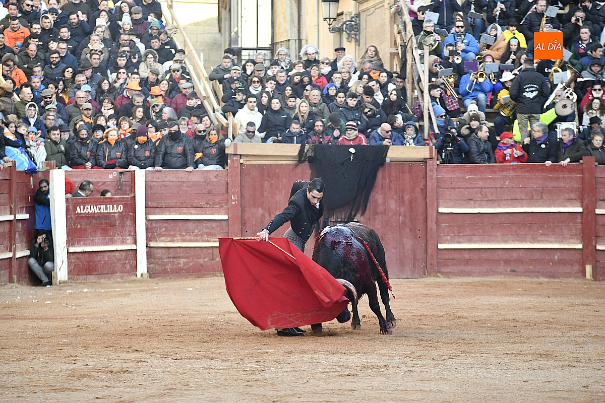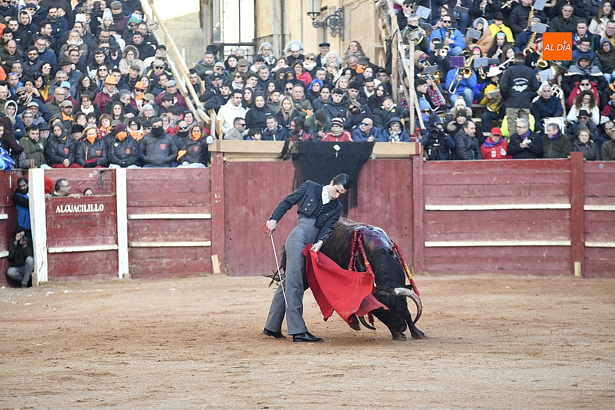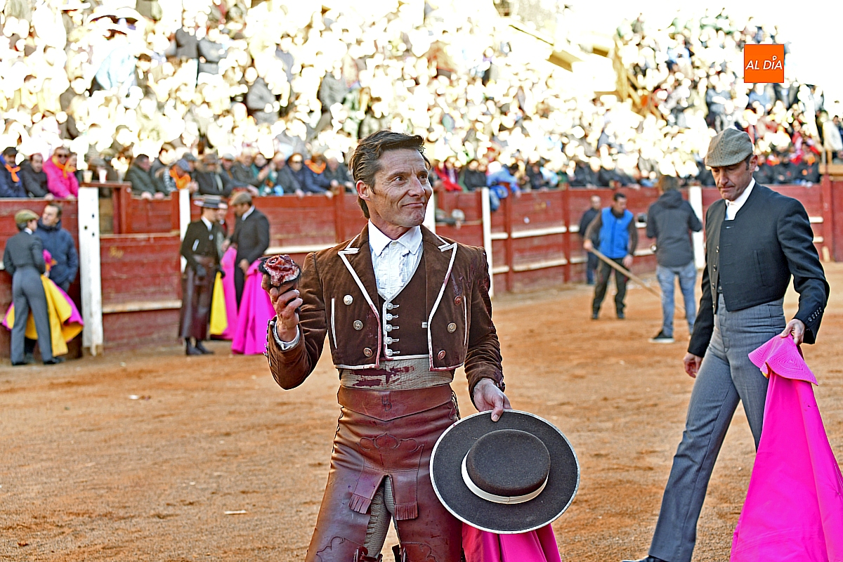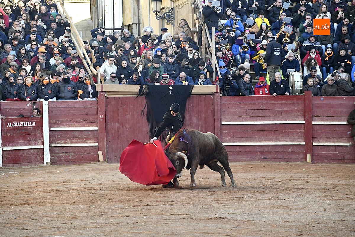 El tercero, también muy suelto de salida, no permite el lucimiento de Pablo Aguado —torerísimo en su traje corto con zajones—, quien brindó al doctor Enrique Crespo. Con la muleta acaricia varias embestidas con la suavidad de su temple, dejando momentos de su inmarcesible torería, mejor por la izquierda donde dejó las mejores series de muletazos dentro de un ambiente marcado por la gélida temperatura. Mató de pinchazo y estocada. Una oreja.