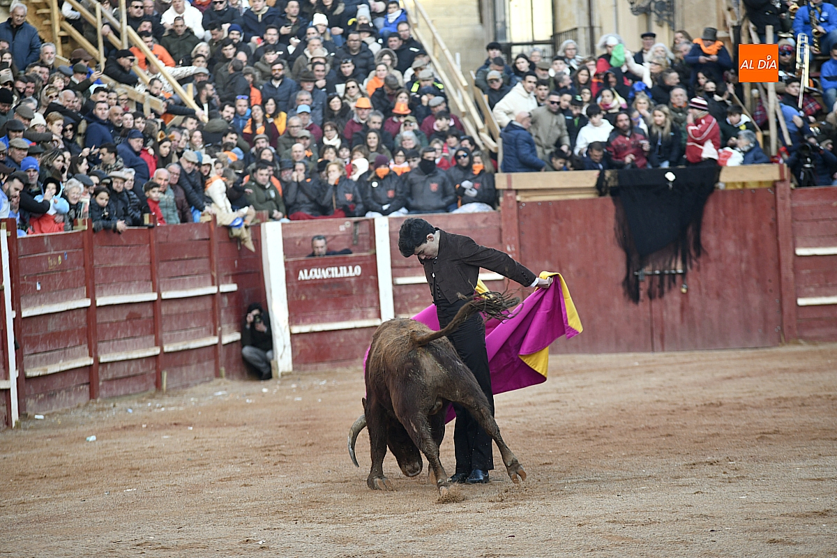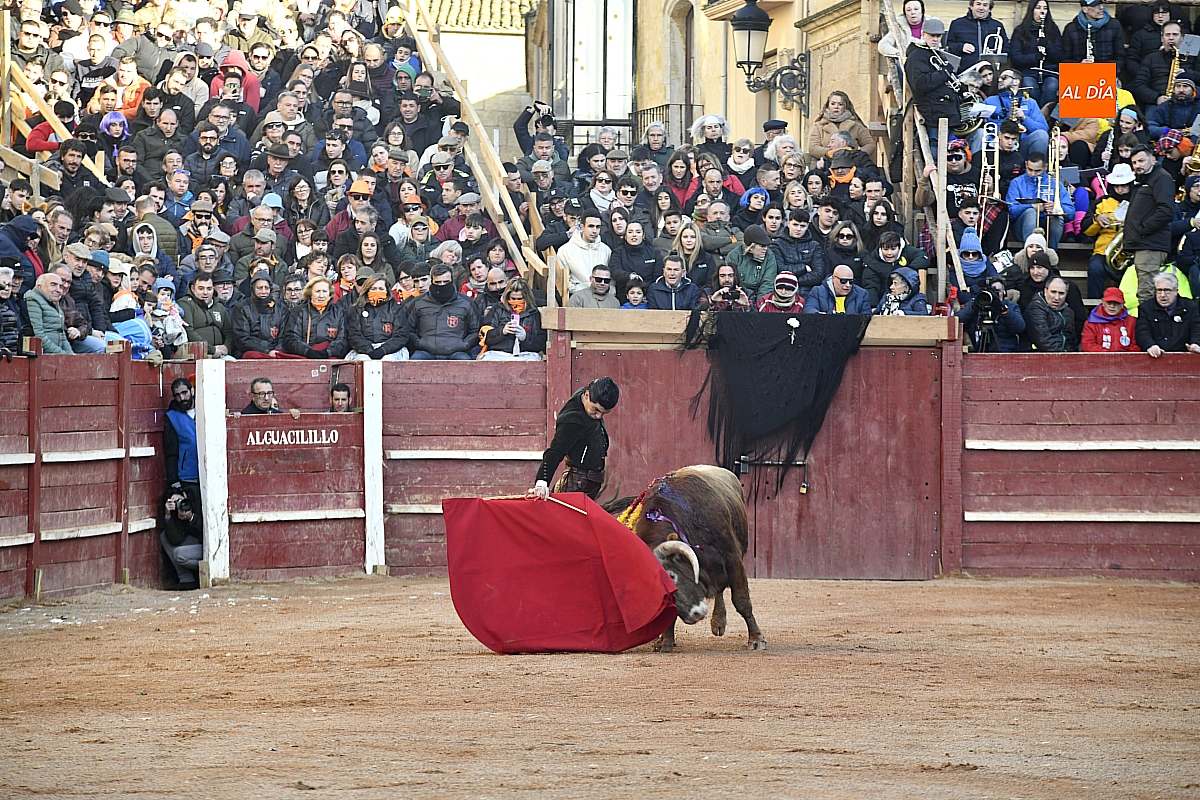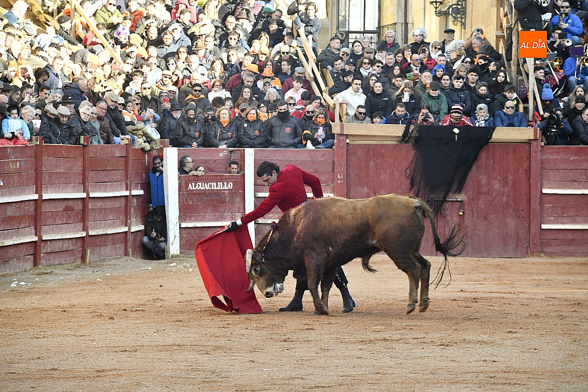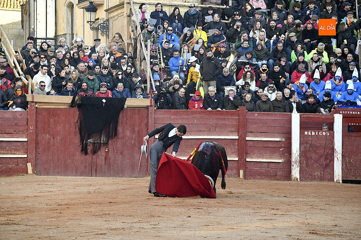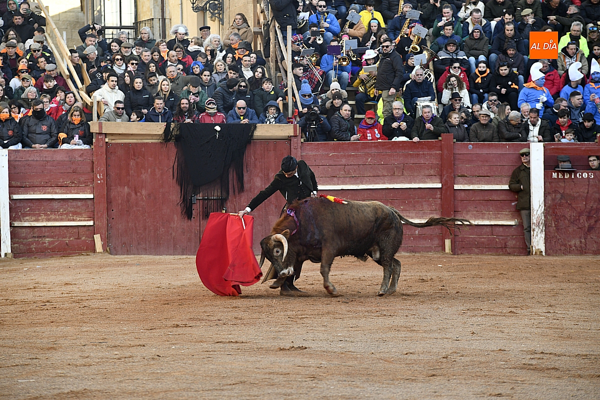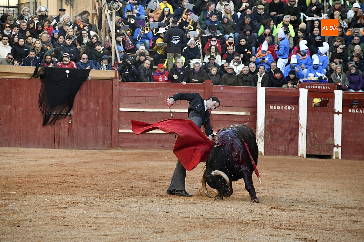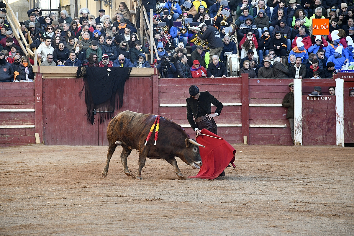 El tercero, también muy suelto de salida, no permite el lucimiento de Pablo Aguado —torerísimo en su traje corto con zajones—, quien brindó al doctor Enrique Crespo. Con la muleta acaricia varias embestidas con la suavidad de su temple, dejando momentos de su inmarcesible torería, mejor por la izquierda donde dejó las mejores series de muletazos dentro de un ambiente marcado por la gélida temperatura. Mató de pinchazo y estocada. Una oreja.