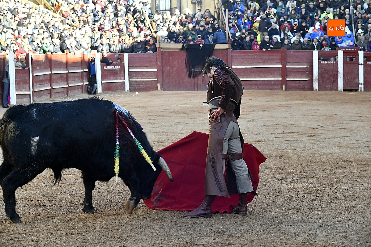 El tercero, también muy suelto de salida, no permite el lucimiento de Pablo Aguado —torerísimo en su traje corto con zajones—, quien brindó al doctor Enrique Crespo. Con la muleta acaricia varias embestidas con la suavidad de su temple, dejando momentos de su inmarcesible torería, mejor por la izquierda donde dejó las mejores series de muletazos dentro de un ambiente marcado por la gélida temperatura. Mató de pinchazo y estocada. Una oreja.