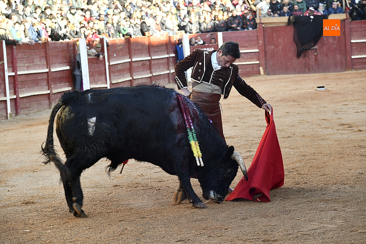 Cambiando el tercio, el riojano cogió el sombrero y desde el centro del ruedo brindó al cielo a la memoria de Taquio, de nuevo con un silencio conmovedor. Inmediatamente, con parsimonia se fue al distraído torete y, siempre con el inconveniente del viento, tuvo los mejores momentos sobre el pitón izquierdo, que era el bueno; por el otro no tuvo un pase, dejando detalles de la exquisitez de su sello. Mató de estocada y paseó una oreja.