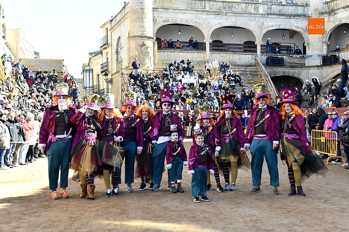 Con todo preparado, los concursantes fueron saliendo poco a poco al coso taurino, donde deslumbraron al público con diseños originales y creativos. Participaron grupos numerosos, pequeños e incluso disfraces individuales. Algunos interactuaron con los asistentes, mientras que otros se limitaron a sonreír, saludar y lucir sus magníficas creaciones. No faltaron tampoco quienes añadieron un toque teatral, integrándose plenamente en sus personajes.