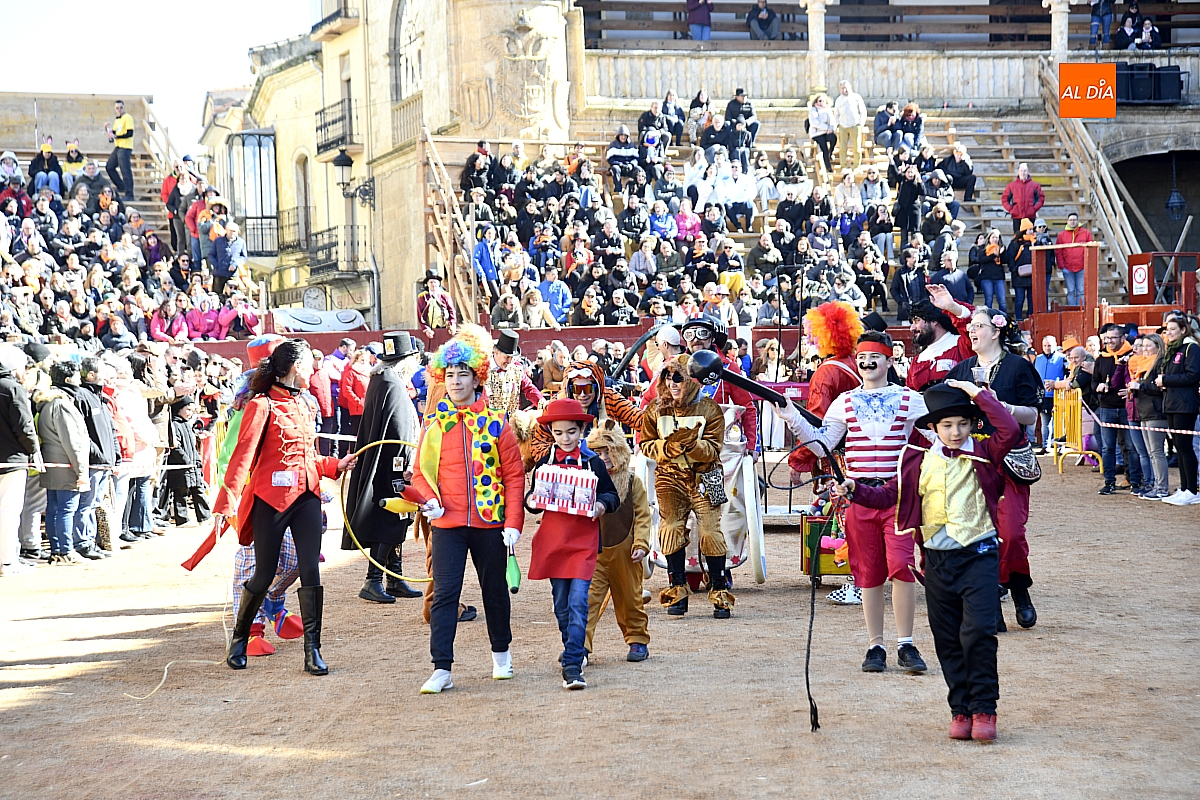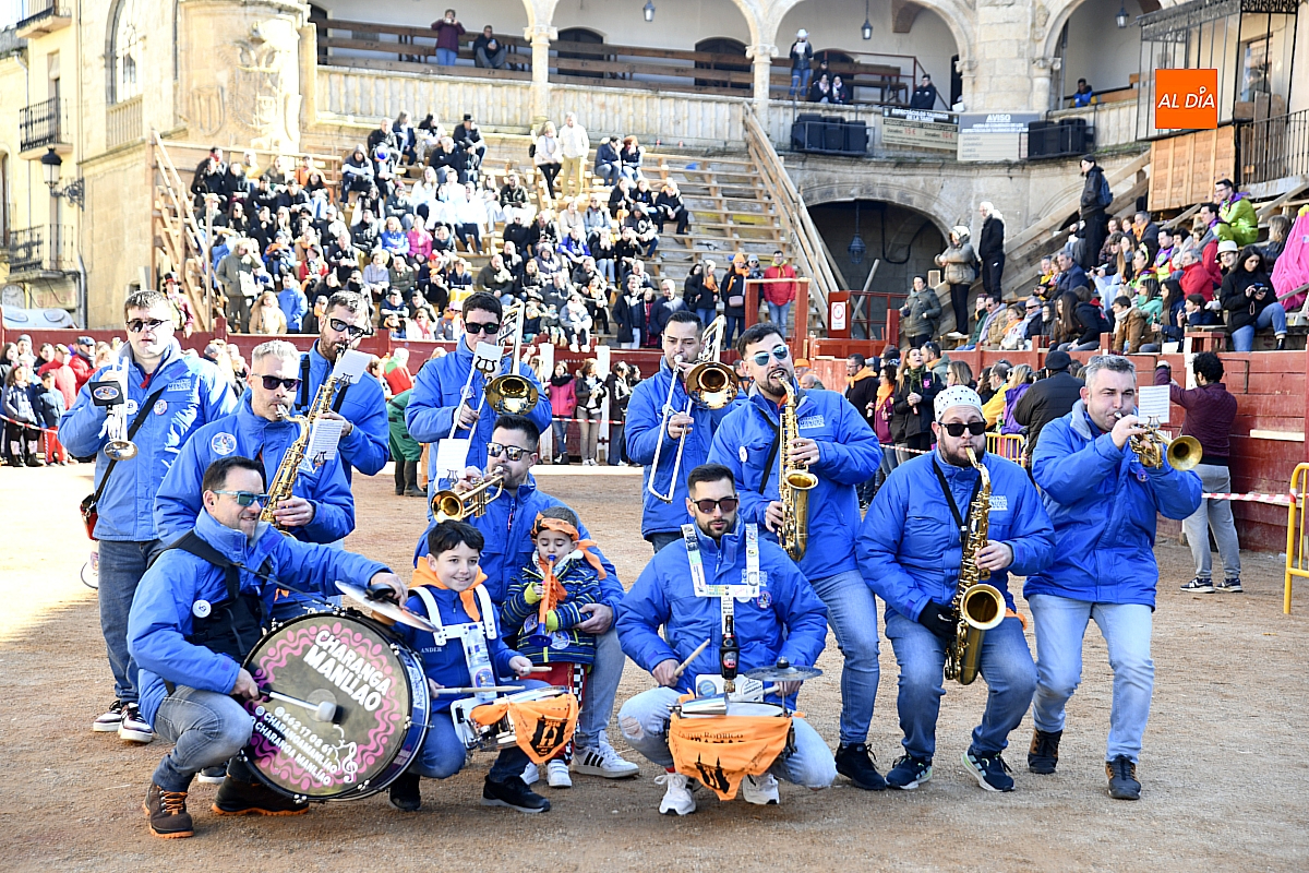 Además, el desfile de disfraces estuvo acompañado por las charangas Manliao, Santa Ana y Al Rojo, que pusieron ritmo y animación a otro desfile de disfraces que volvió a llenar de color y alegría el coso taurino.