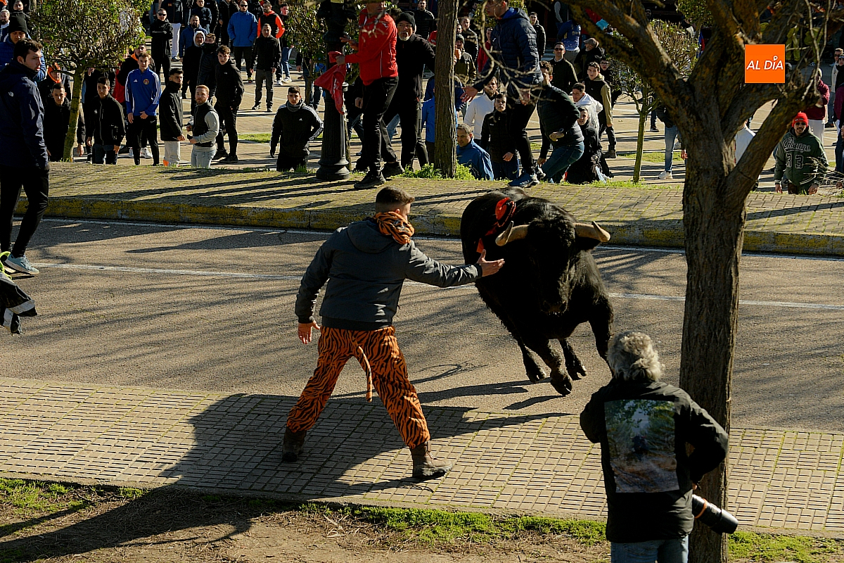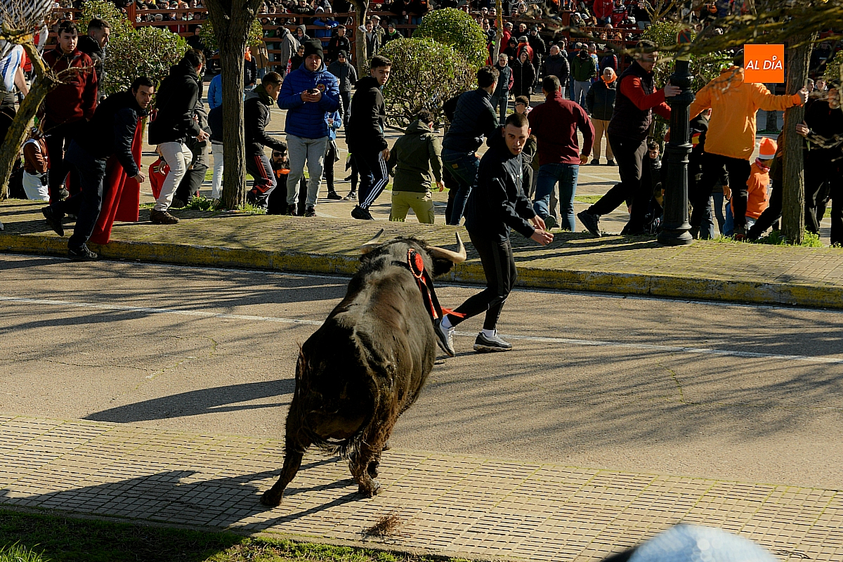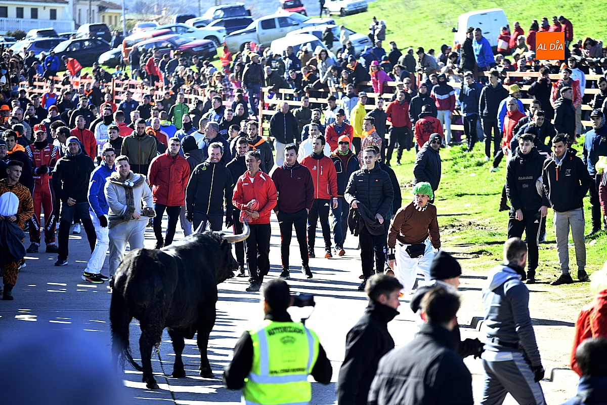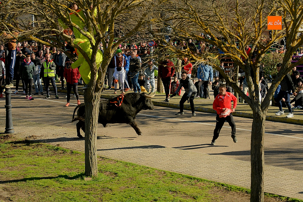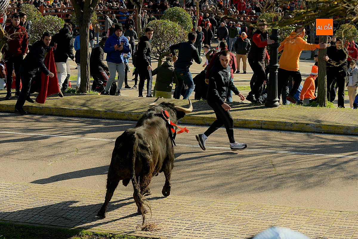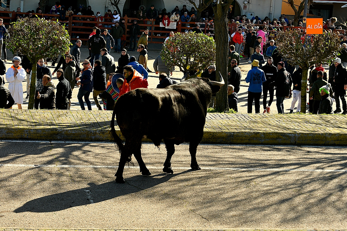La mañana de este sábado de Carnaval en Ciudad Rodrigo ha estado marcada por el contraste entre el brillo del sol y el frío ambiente, escenario donde ha tenido lugar el tradicional Toro del Antruejo, organizado por la Asociación Carnavaldeltoro.es. El protagonista sobre el recorrido ha sido 'Valenciano', un astado de bella presentación perteneciente a la ganadería de Sánchez Herrero, que ha ofrecido un buen juego durante los primeros compases de su salida, cumpliendo con las expectativas de los aficionados congregados en el recorrido.