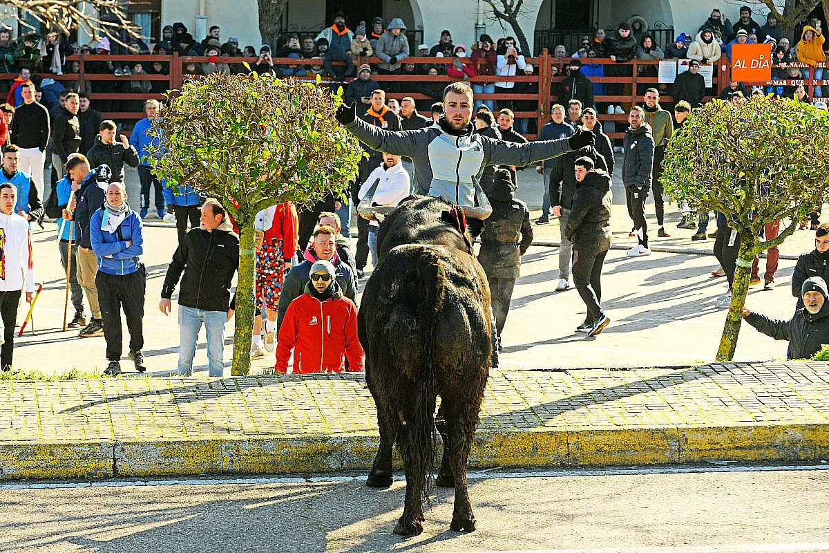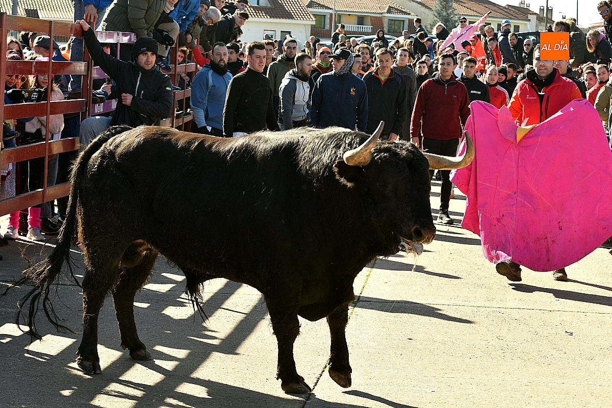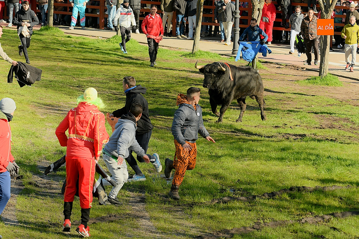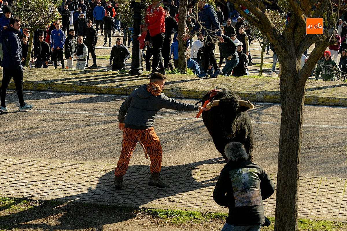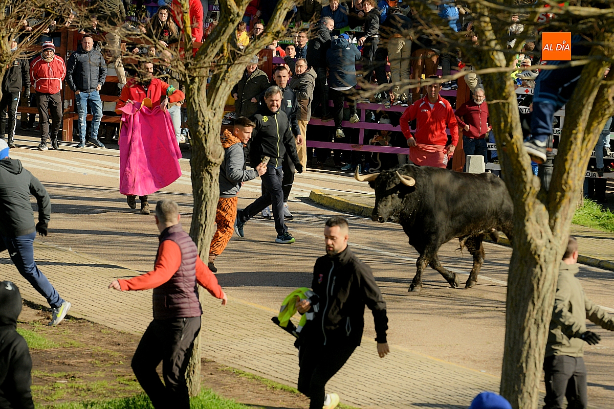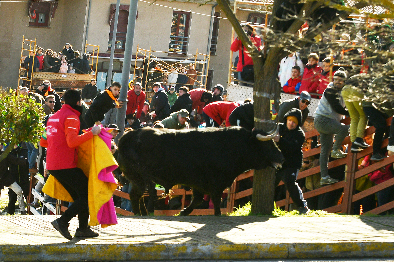La mañana de este sábado de Carnaval en Ciudad Rodrigo ha estado marcada por el contraste entre el brillo del sol y el frío ambiente, escenario donde ha tenido lugar el tradicional Toro del Antruejo, organizado por la Asociación Carnavaldeltoro.es. El protagonista sobre el recorrido ha sido 'Valenciano', un astado de bella presentación perteneciente a la ganadería de Sánchez Herrero, que ha ofrecido un buen juego durante los primeros compases de su salida, cumpliendo con las expectativas de los aficionados congregados en el recorrido.