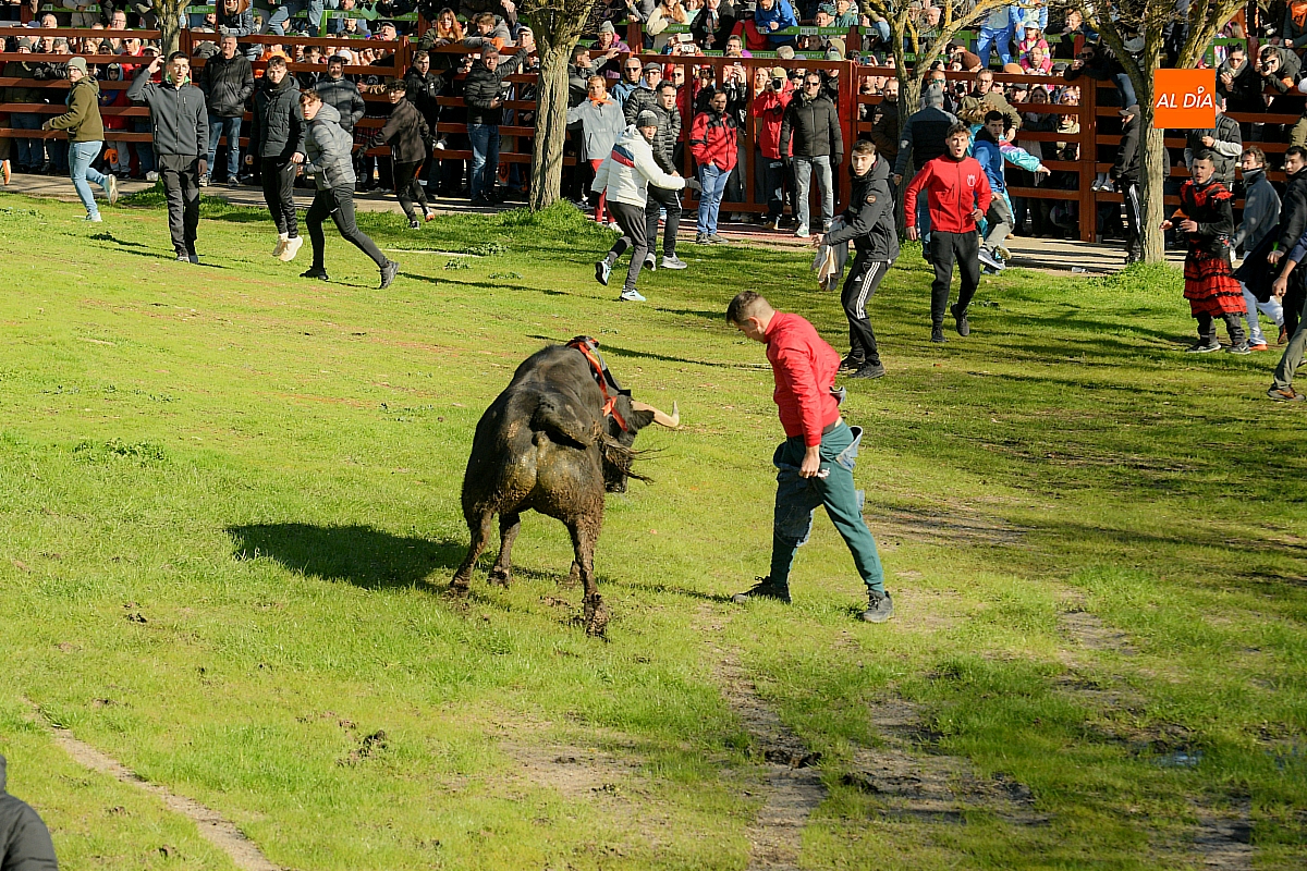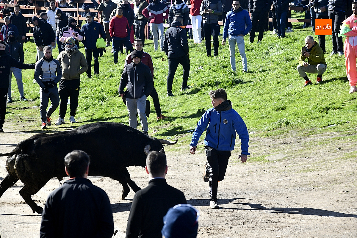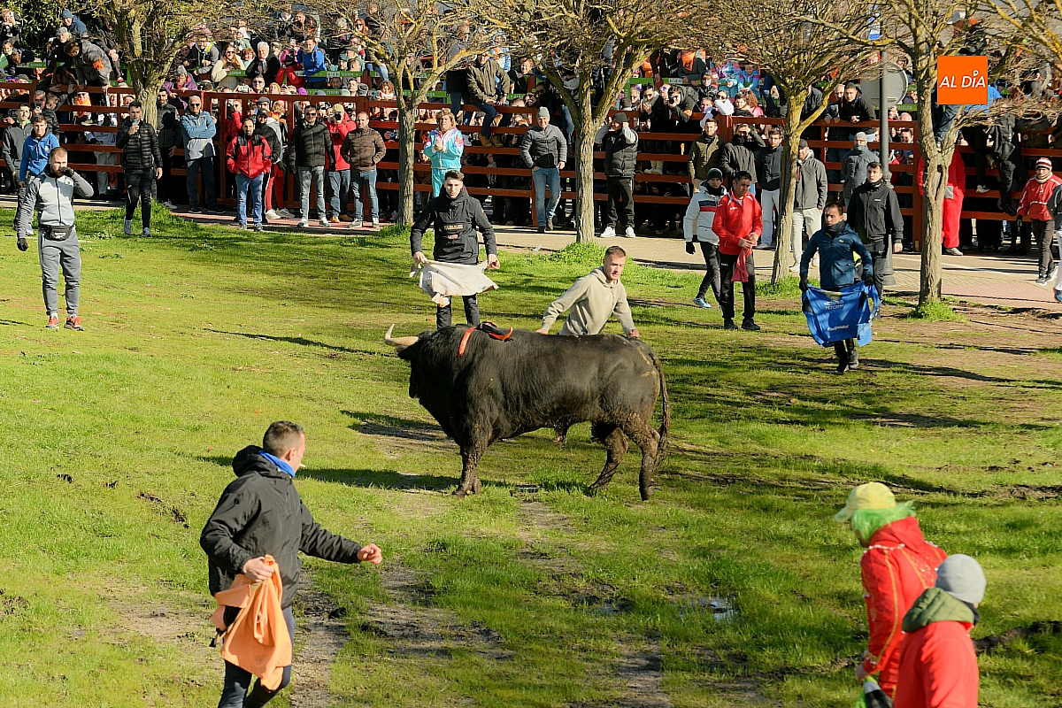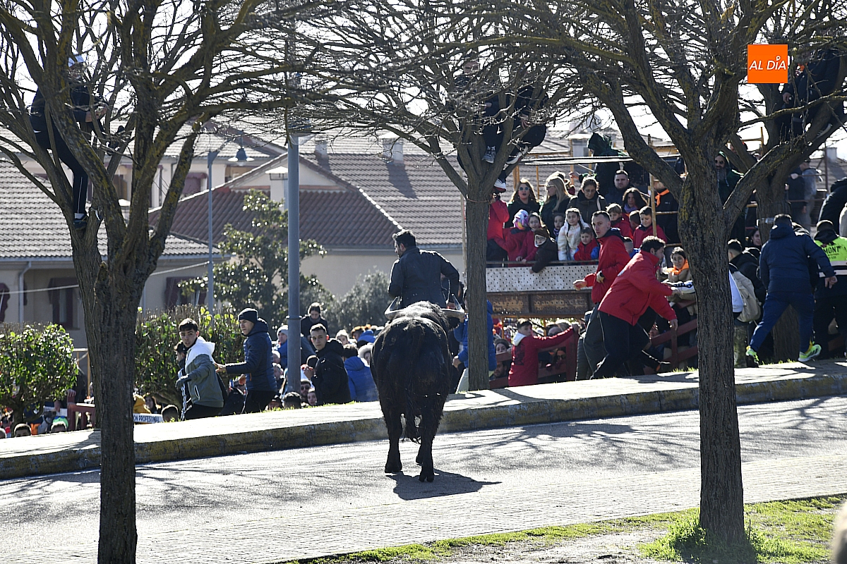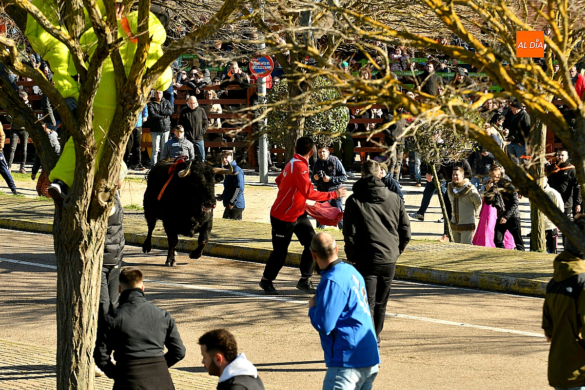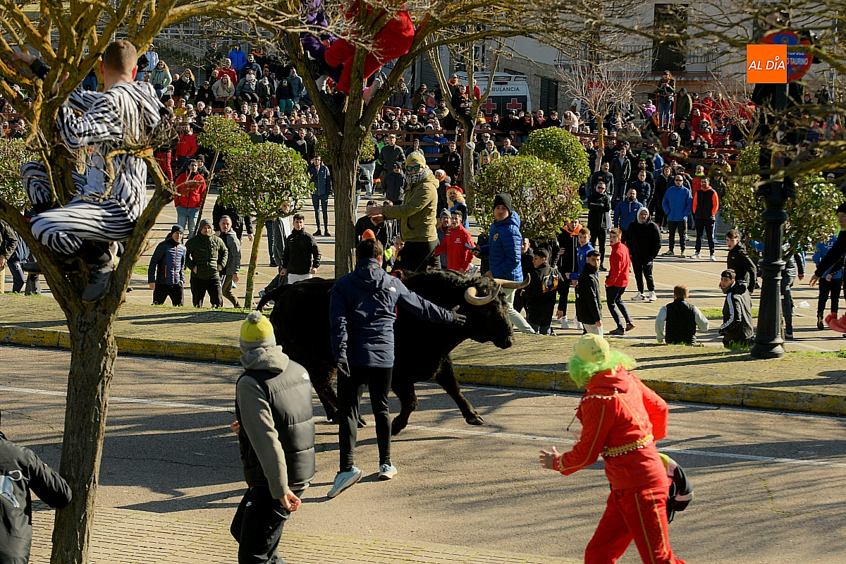 La mañana de este sábado de Carnaval en Ciudad Rodrigo ha estado marcada por el contraste entre el brillo del sol y el frío ambiente, escenario donde ha tenido lugar el tradicional Toro del Antruejo, organizado por la Asociación Carnavaldeltoro.es. El protagonista sobre el recorrido ha sido 'Valenciano', un astado de bella presentación perteneciente a la ganadería de Sánchez Herrero, que ha ofrecido un buen juego durante los primeros compases de su salida, cumpliendo con las expectativas de los aficionados congregados en el recorrido.
