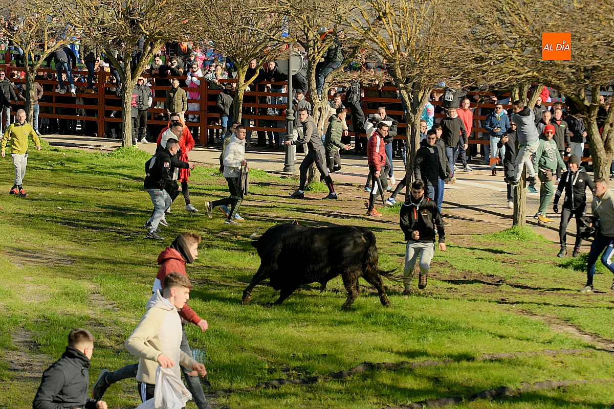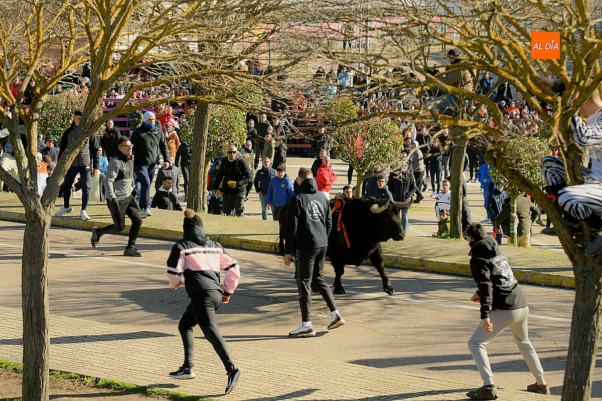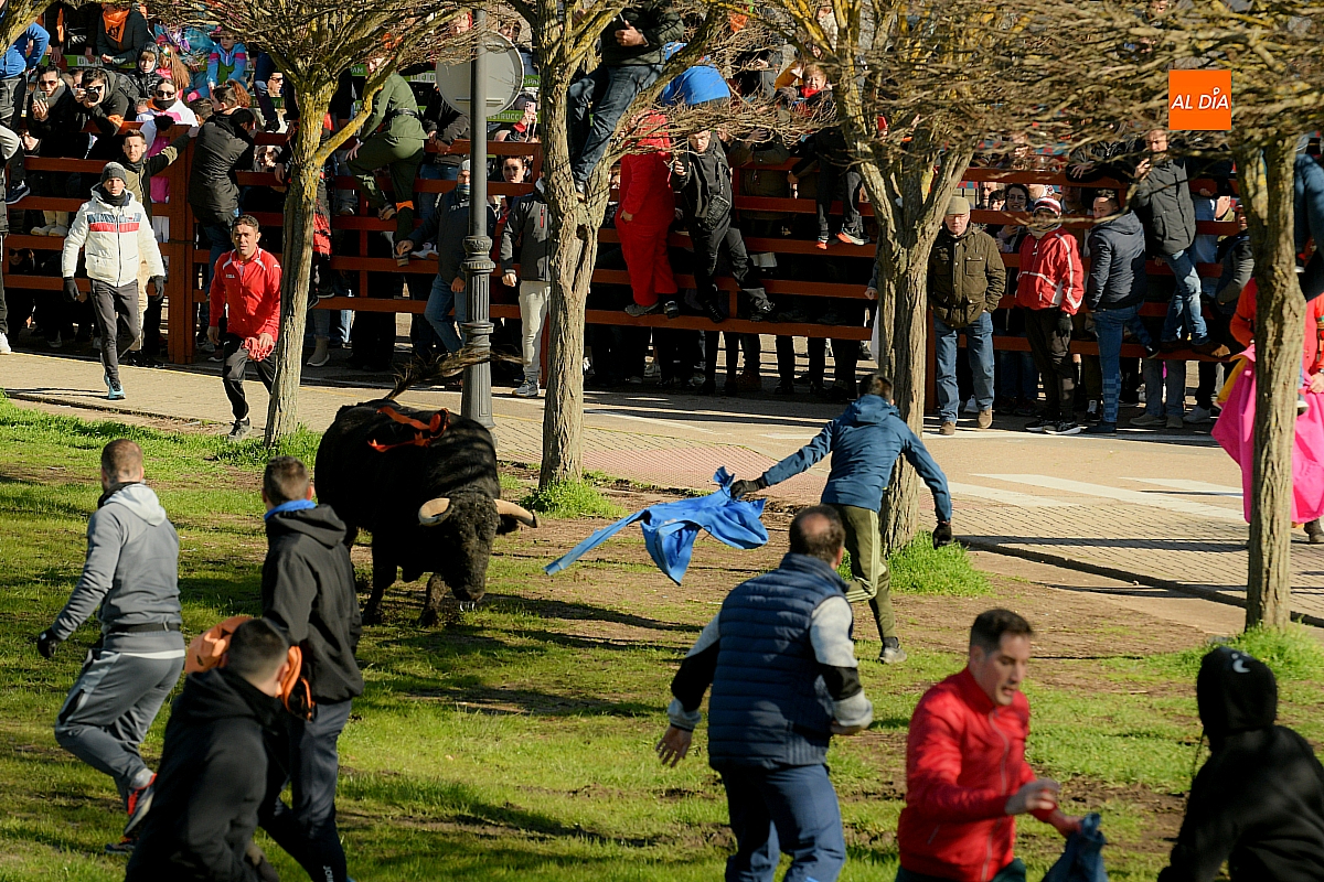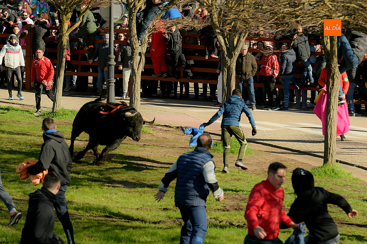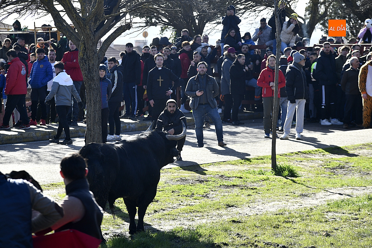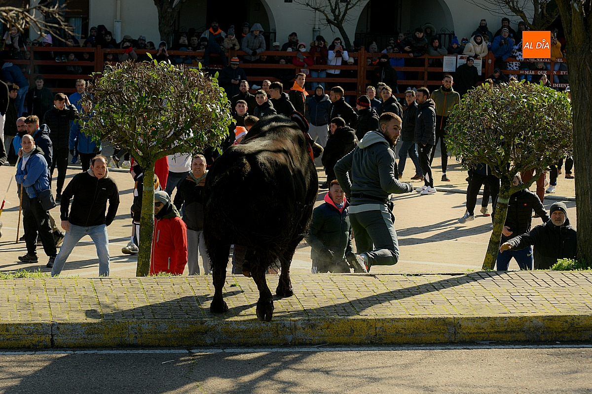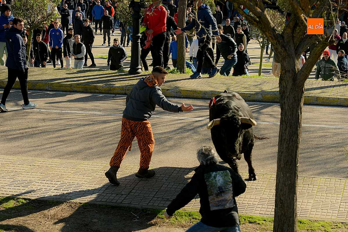La mañana de este sábado de Carnaval en Ciudad Rodrigo ha estado marcada por el contraste entre el brillo del sol y el frío ambiente, escenario donde ha tenido lugar el tradicional Toro del Antruejo, organizado por la Asociación Carnavaldeltoro.es. El protagonista sobre el recorrido ha sido 'Valenciano', un astado de bella presentación perteneciente a la ganadería de Sánchez Herrero, que ha ofrecido un buen juego durante los primeros compases de su salida, cumpliendo con las expectativas de los aficionados congregados en el recorrido.