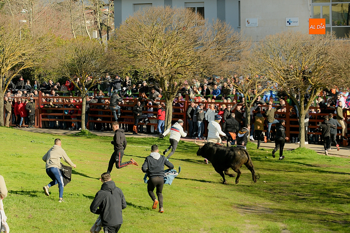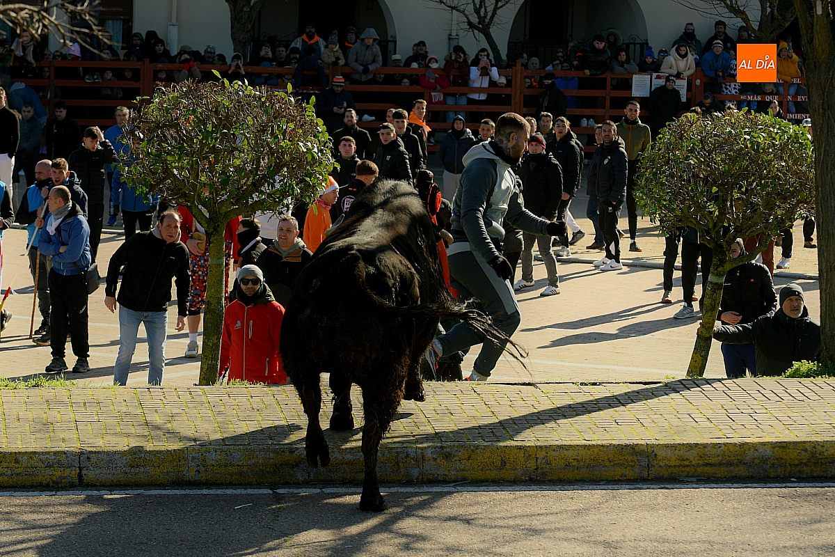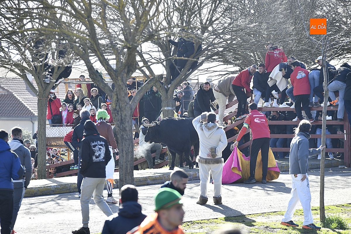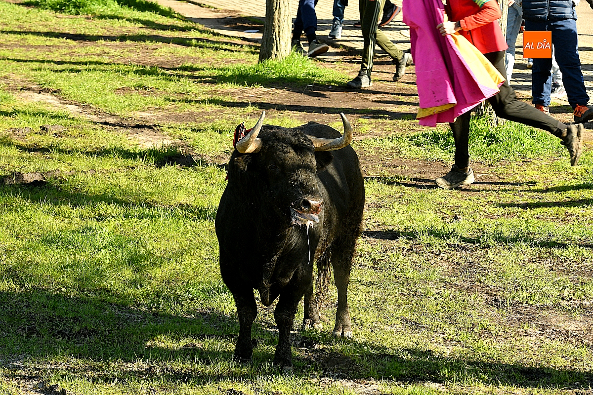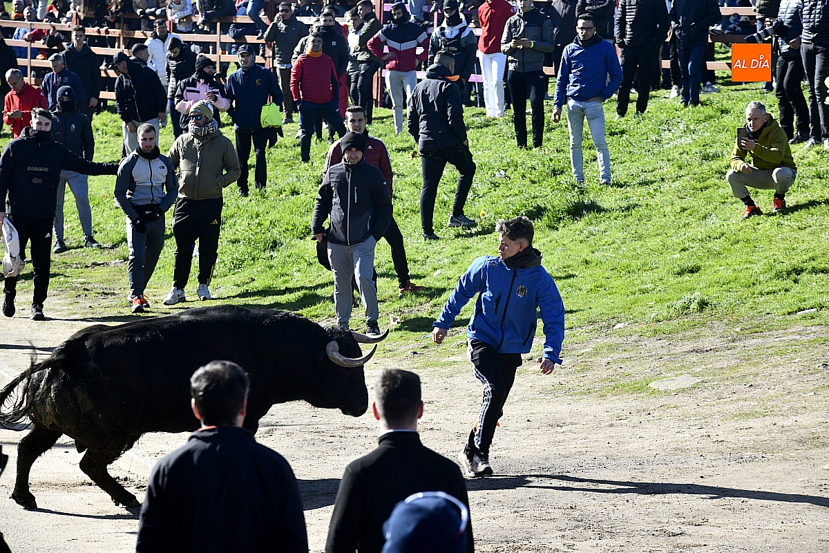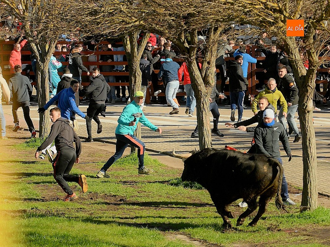 La mañana de este sábado de Carnaval en Ciudad Rodrigo ha estado marcada por el contraste entre el brillo del sol y el frío ambiente, escenario donde ha tenido lugar el tradicional Toro del Antruejo, organizado por la Asociación Carnavaldeltoro.es. El protagonista sobre el recorrido ha sido 'Valenciano', un astado de bella presentación perteneciente a la ganadería de Sánchez Herrero, que ha ofrecido un buen juego durante los primeros compases de su salida, cumpliendo con las expectativas de los aficionados congregados en el recorrido.