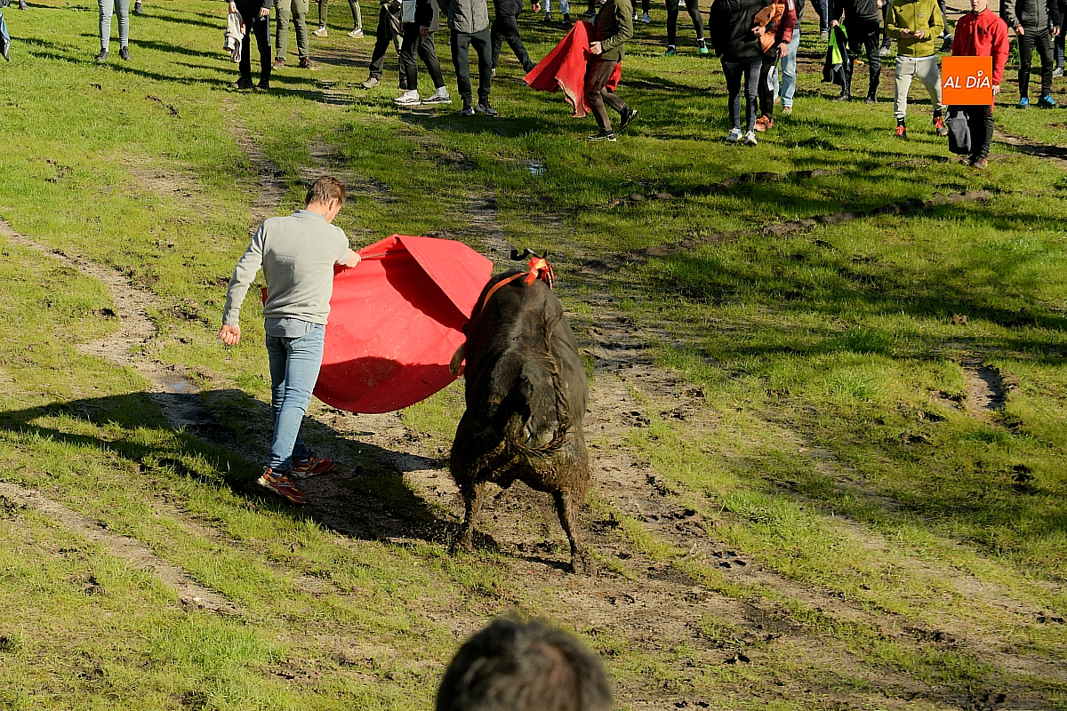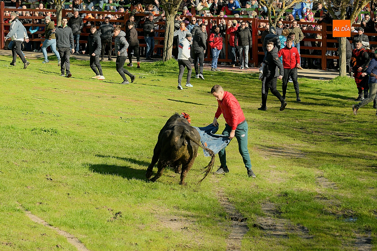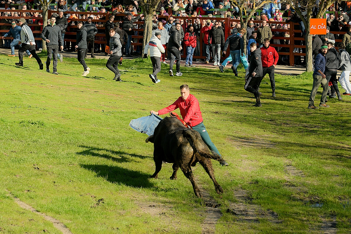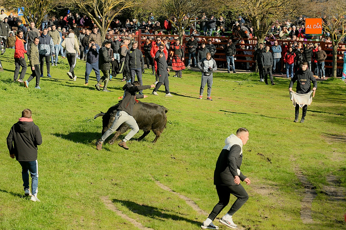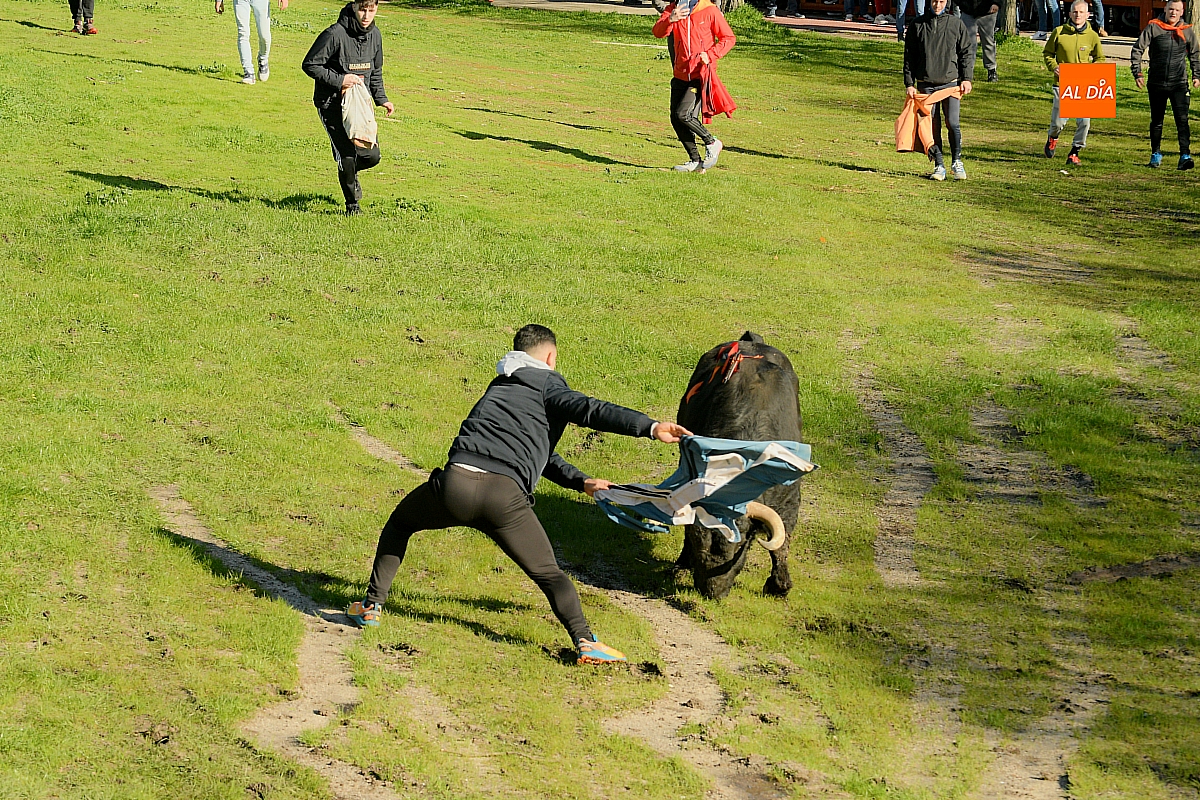 El festejo ha comenzado con una profunda carga emotiva al guardarse un respetuoso minuto de silencio antes del inicio en memoria de 'Taquio', el vecino mirobrigense fallecido la noche anterior a consecuencia de una cornada sufrida durante la capea nocturna. Tras el sentido homenaje, el espectáculo se ha desarrollado durante aproximadamente 40 minutos, completando así uno de los eventos más singulares del Carnaval del Toro bajo la atenta mirada del público.