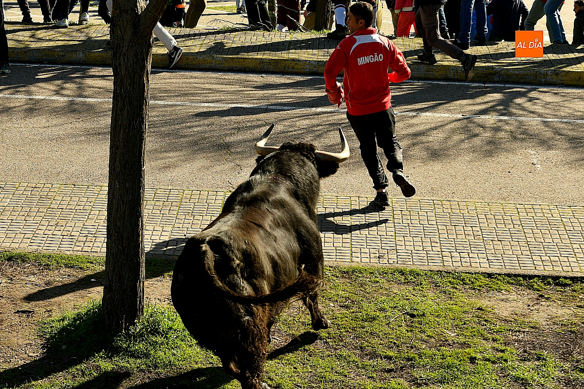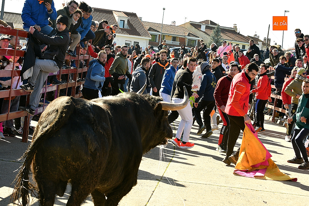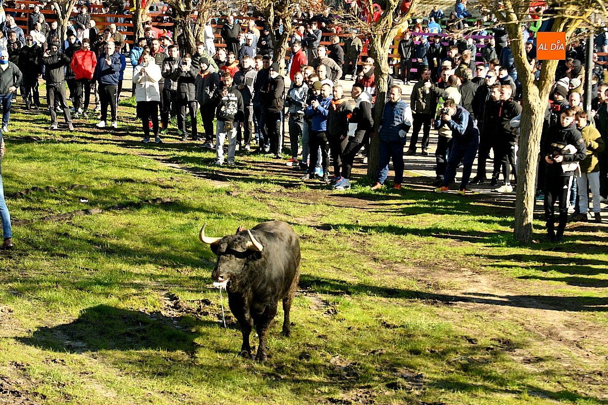 La mañana de este sábado de Carnaval en Ciudad Rodrigo ha estado marcada por el contraste entre el brillo del sol y el frío ambiente, escenario donde ha tenido lugar el tradicional Toro del Antruejo, organizado por la Asociación Carnavaldeltoro.es. El protagonista sobre el recorrido ha sido 'Valenciano', un astado de bella presentación perteneciente a la ganadería de Sánchez Herrero, que ha ofrecido un buen juego durante los primeros compases de su salida, cumpliendo con las expectativas de los aficionados congregados en el recorrido.