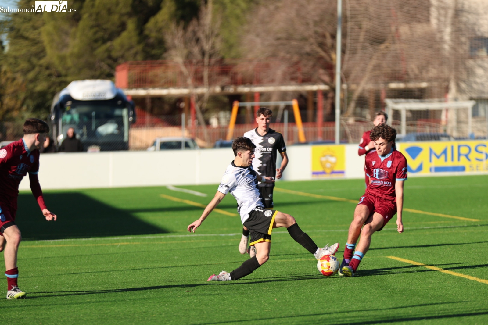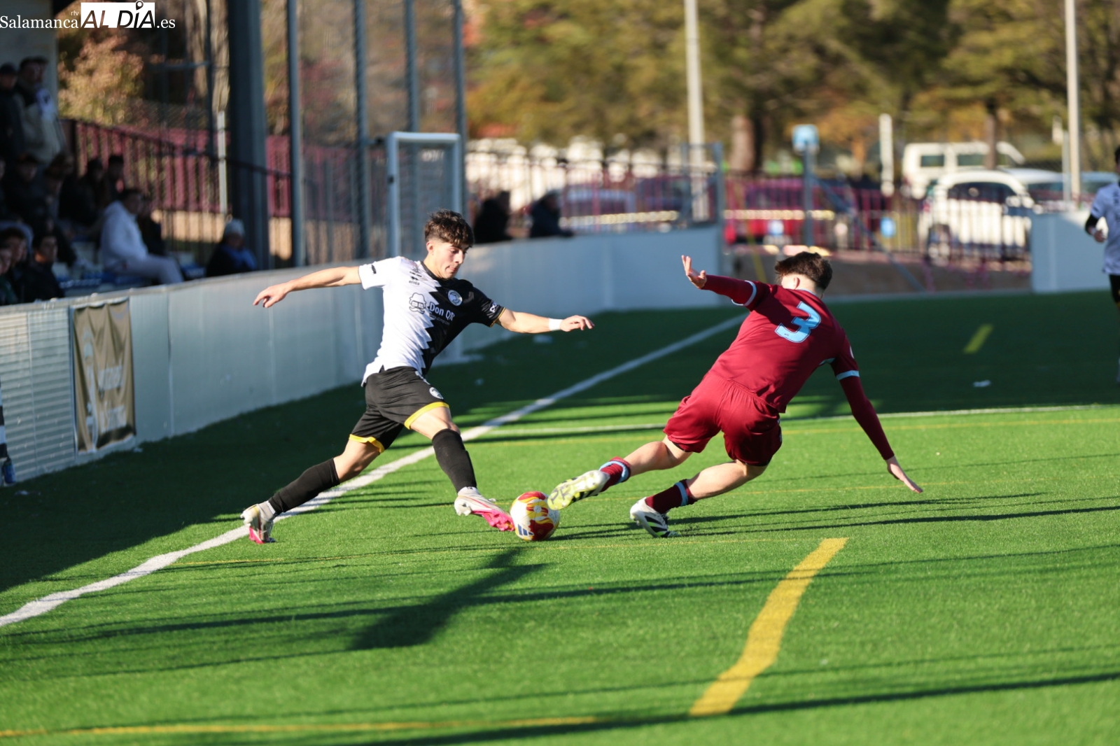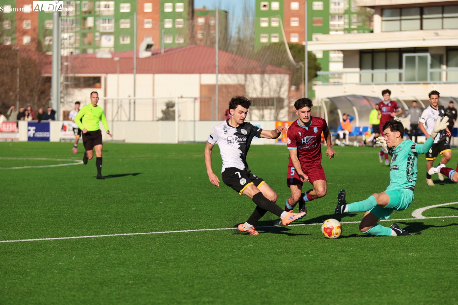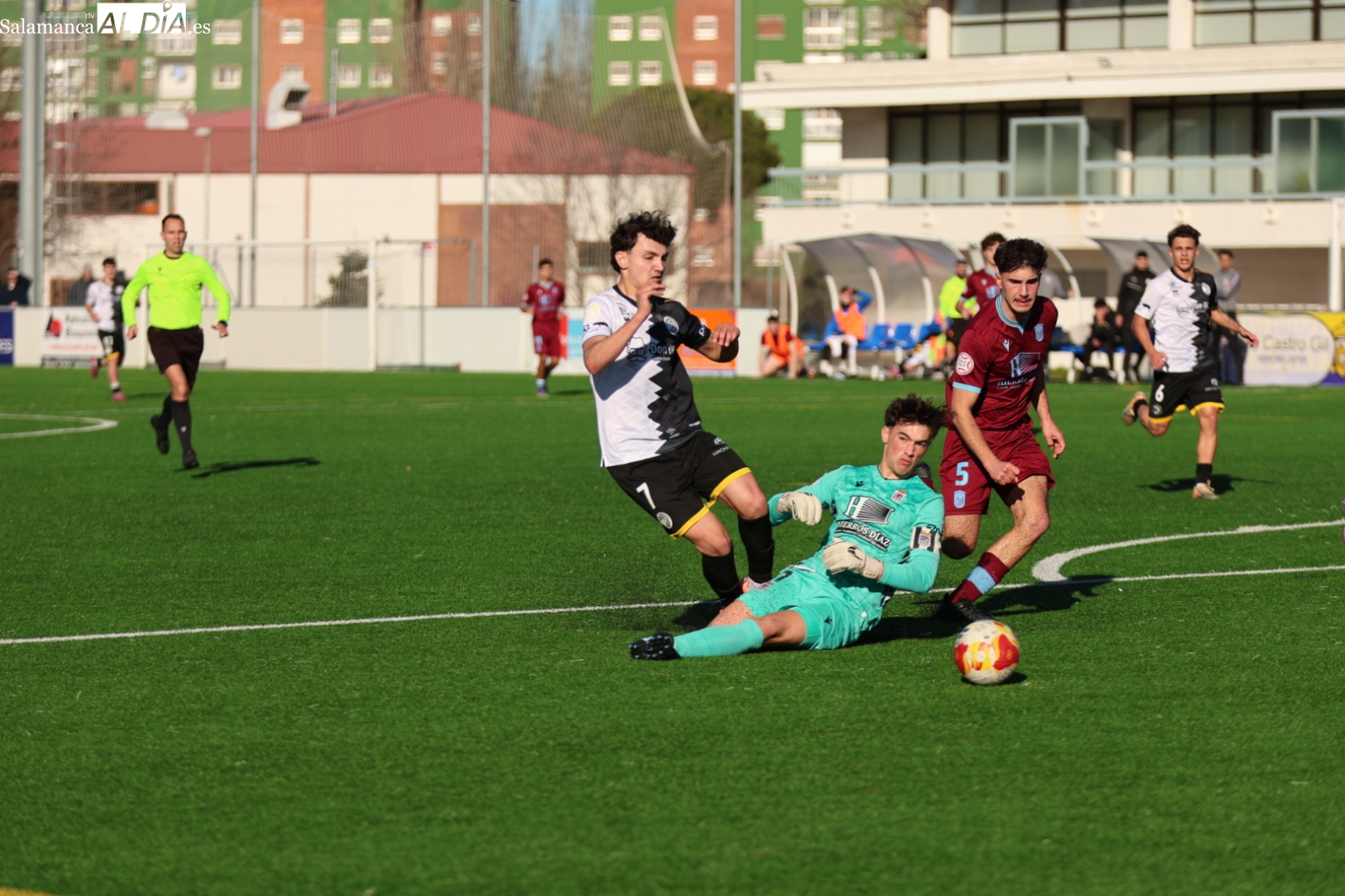 A la media hora de encuentro, el conjunto visitante se ha puesto por delante en el marcador con un 0-2, pero los charros han conseguido recortar diferencias al filo del descanso por medio de Rodrigo Pérez.