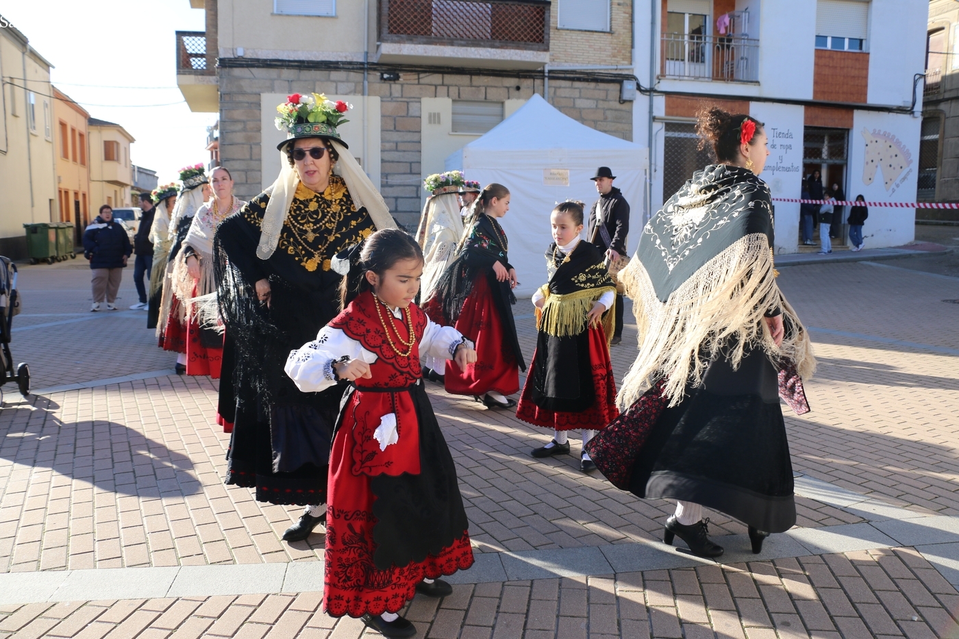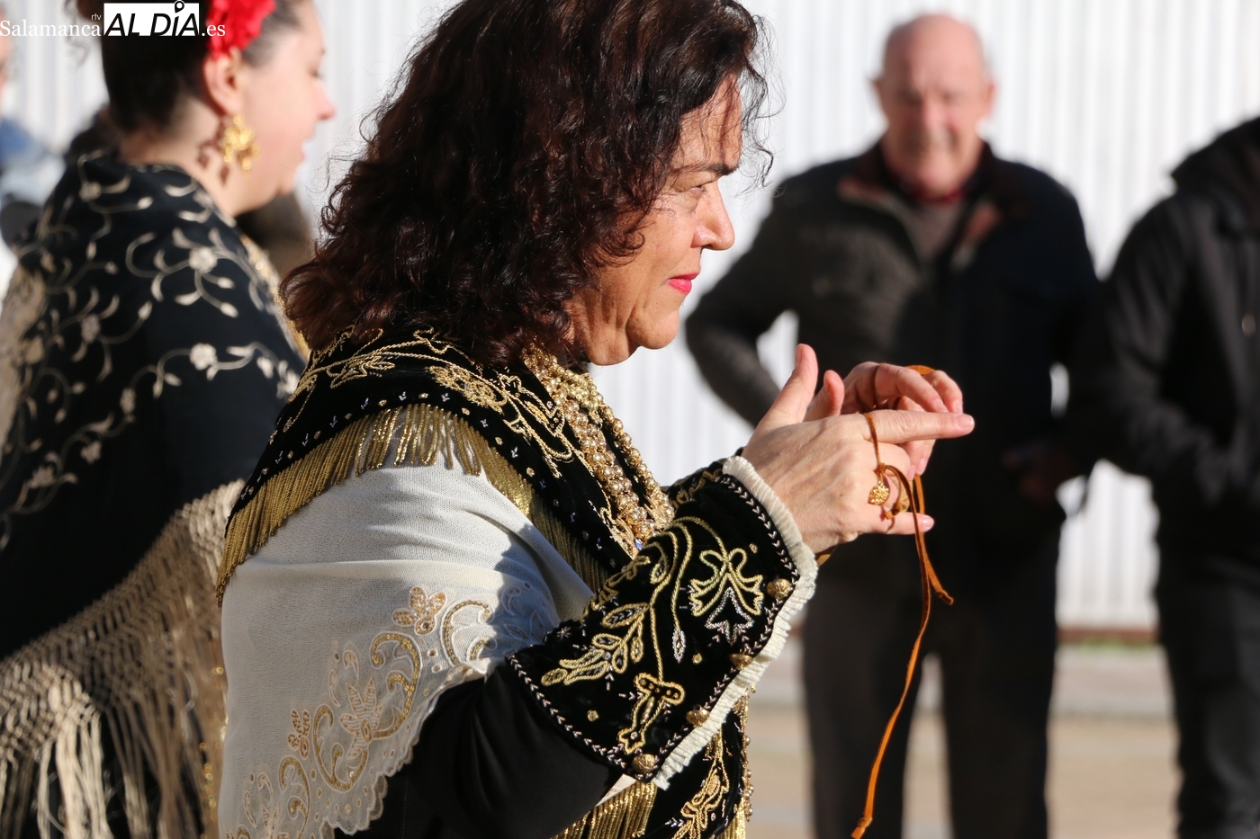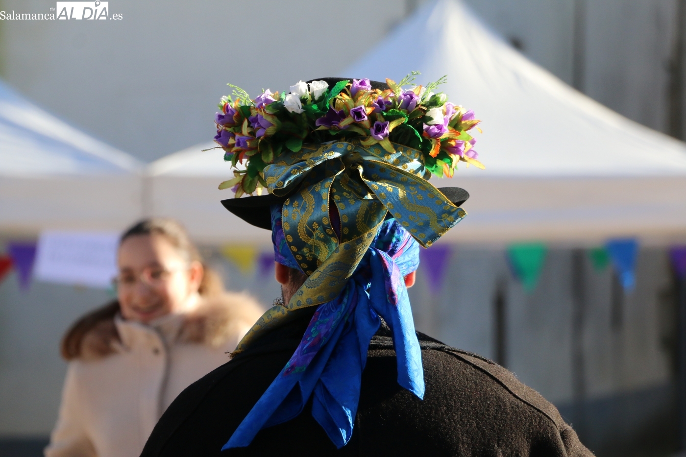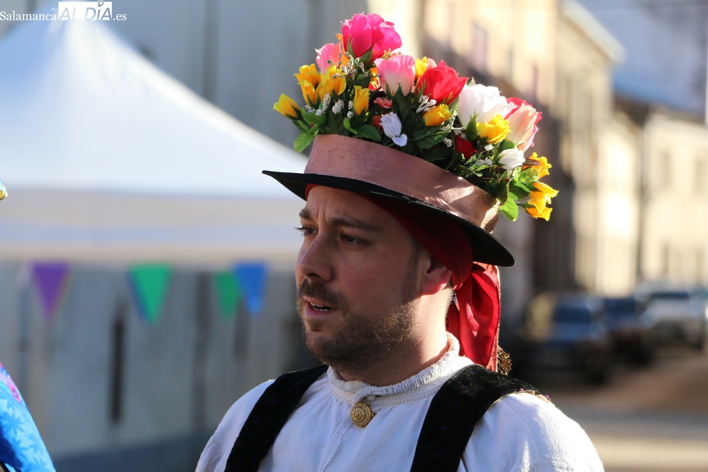 El protagonismo artístico de la jornada ha recaído en el grupo de folclore Santa María de Liminares. Sus integrantes han llenado de color la plaza luciendo sus trajes charros, joyas y complementos, entre los que han destacado los vistosos tocados de sombreros floreados, típicos de esta zona del Abadengo.