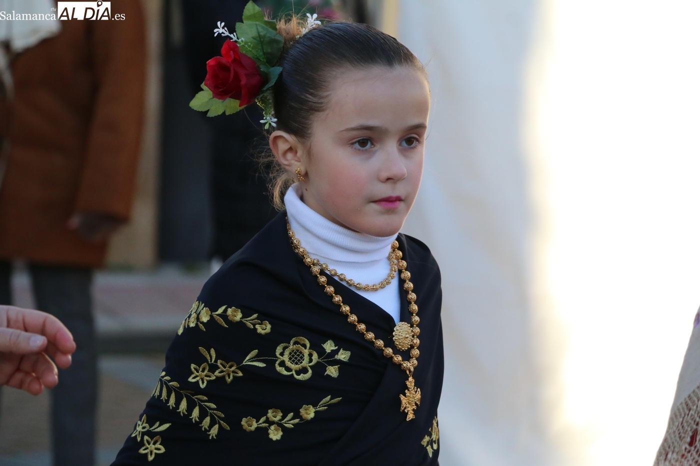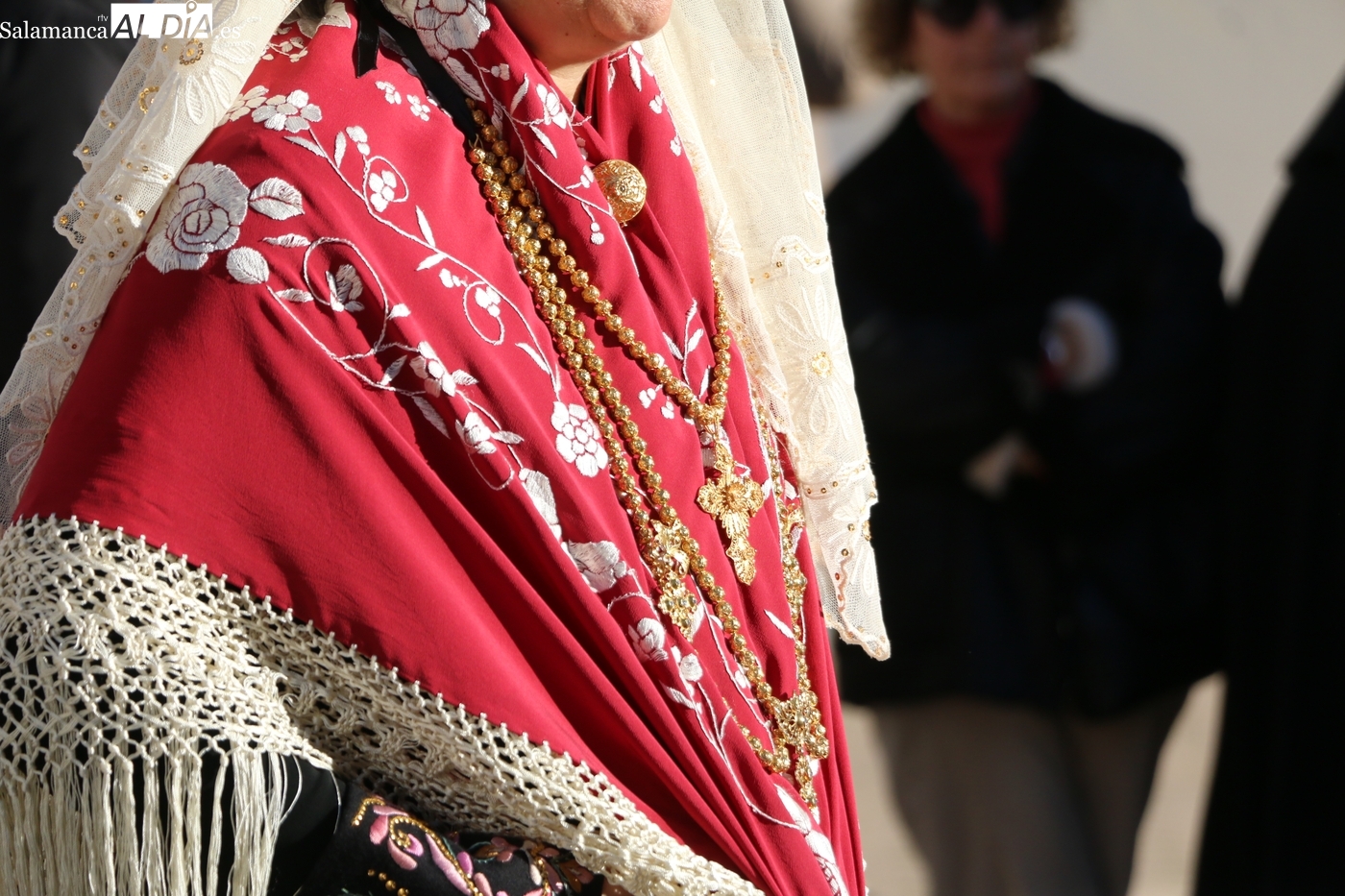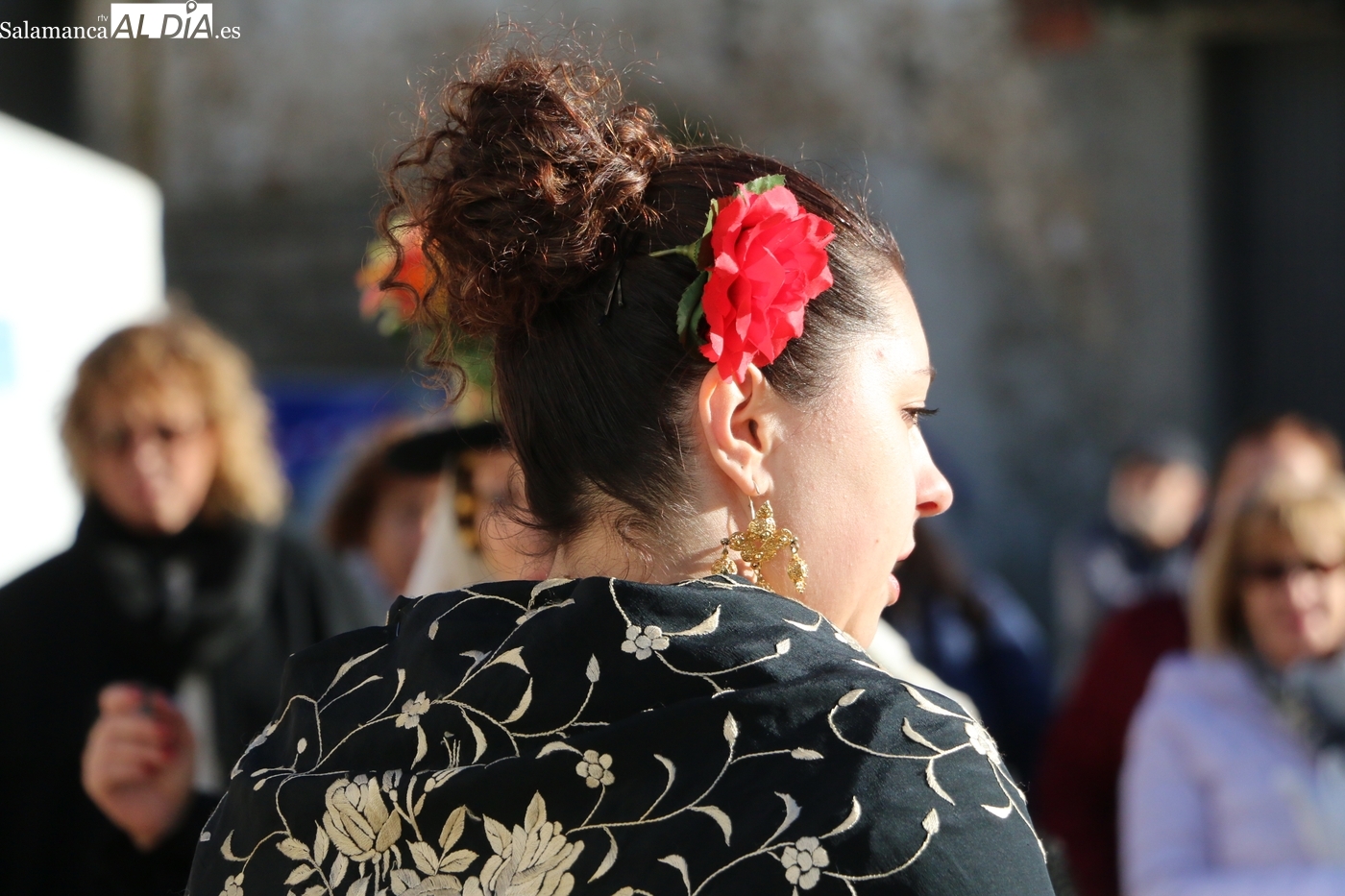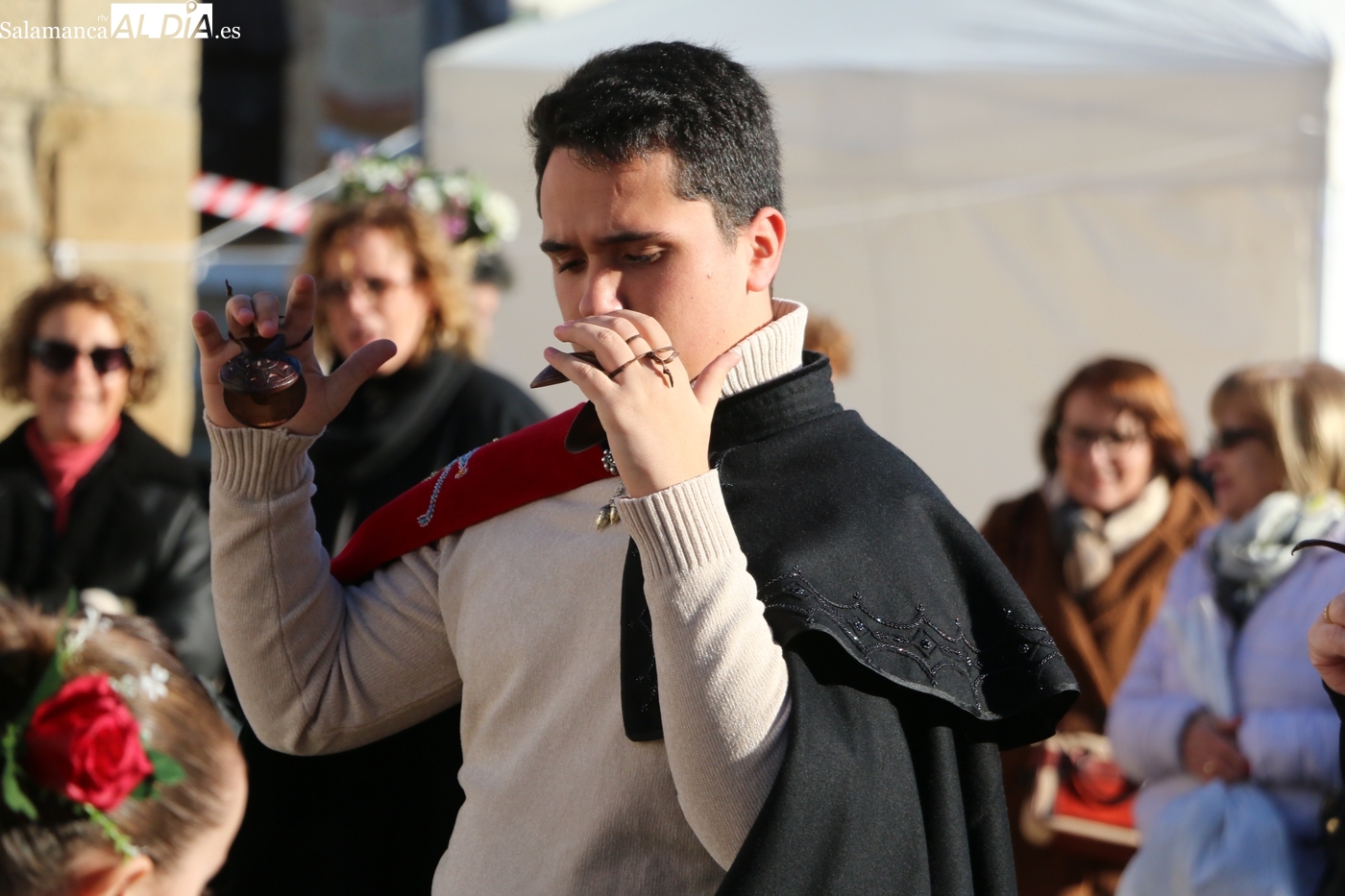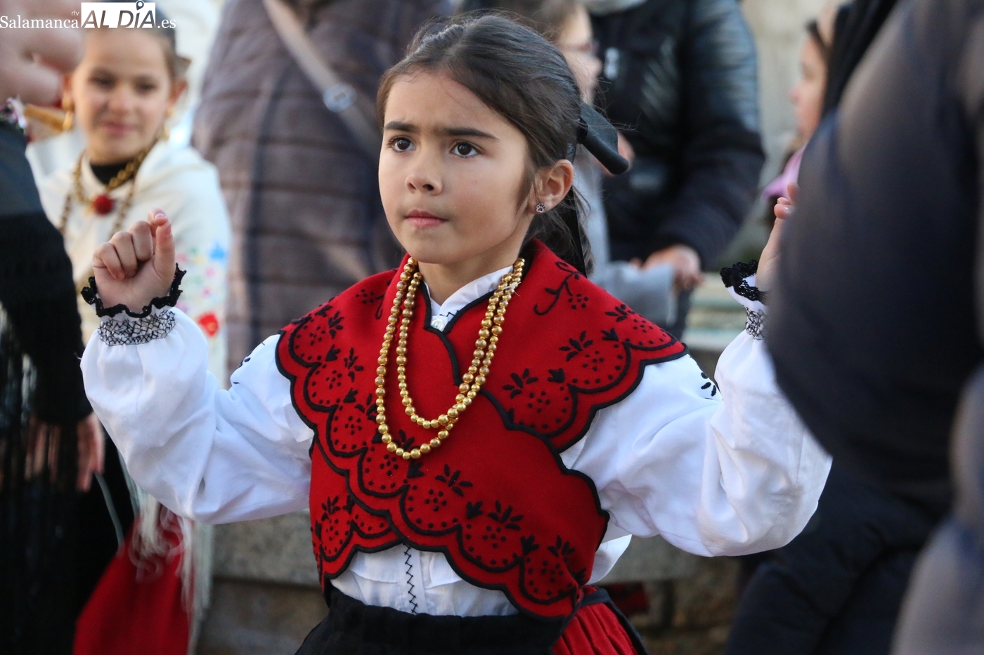 El protagonismo artístico de la jornada ha recaído en el grupo de folclore Santa María de Liminares. Sus integrantes han llenado de color la plaza luciendo sus trajes charros, joyas y complementos, entre los que han destacado los vistosos tocados de sombreros floreados, típicos de esta zona del Abadengo.