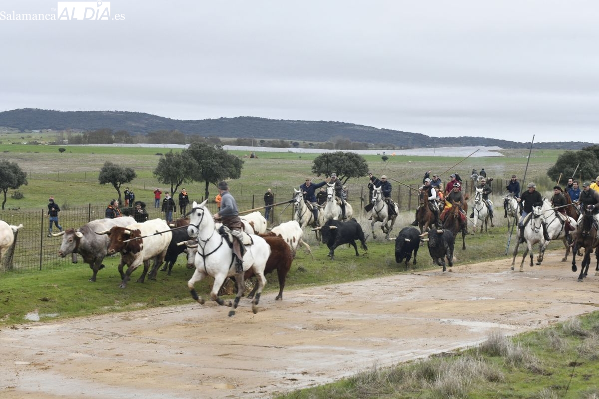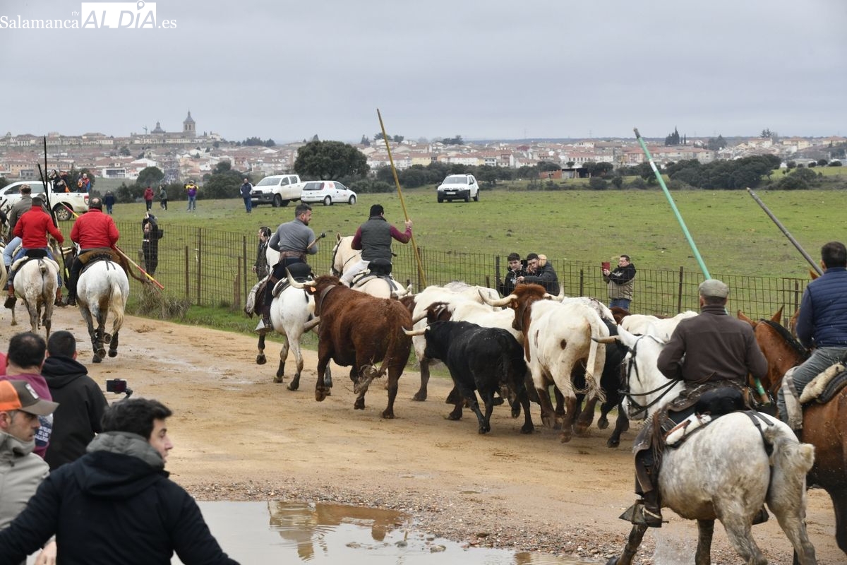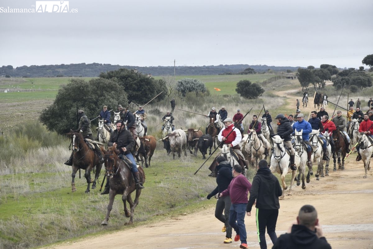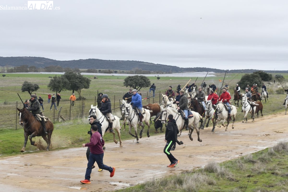 La jornada dominical del Carnaval del Toro de Ciudad Rodrigo ha arrancado con un encierro a caballo que ha congregado a numeroso público a lo largo de todo el recorrido. Los astados de la ganadería de Antonio López Gibaja han protagonizado una carrera que, pese a la buena coordinación general, se ha saldado con dos equinos heridos por asta de toro en el tramo final.